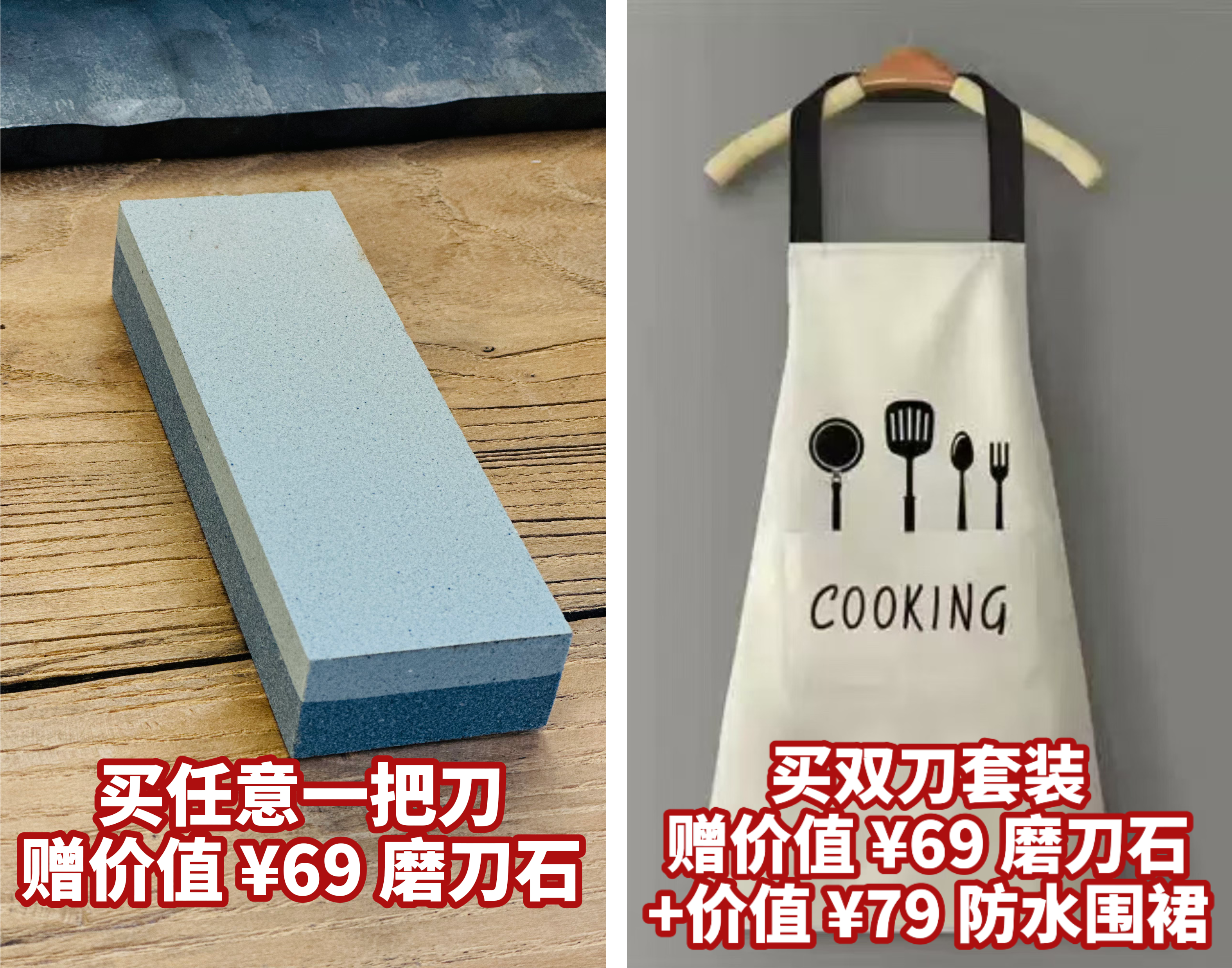 2.下单双刀套装,赠送磨刀石(价值¥69)+防水围裙(价值¥69)