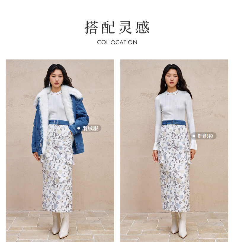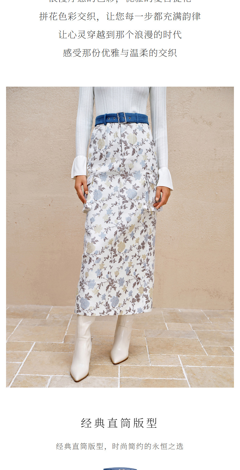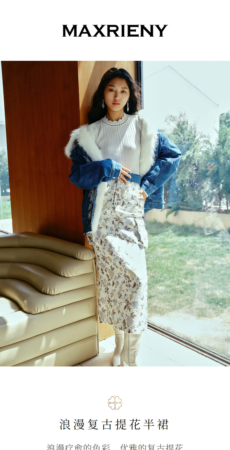 MAXRIENY*浪漫复古感丝绒提花直筒半裙秋冬裙子(货号:MC88SK791)