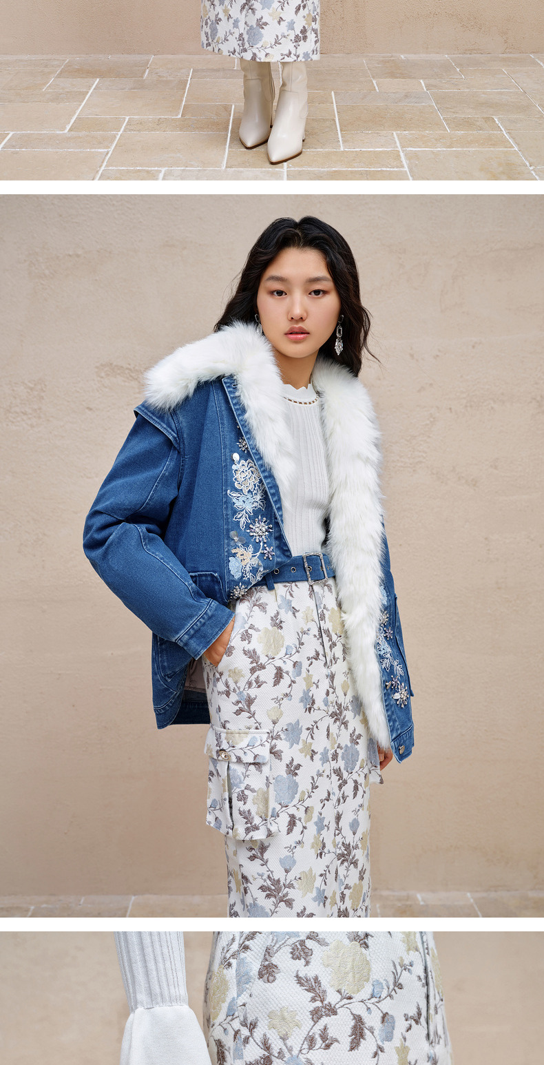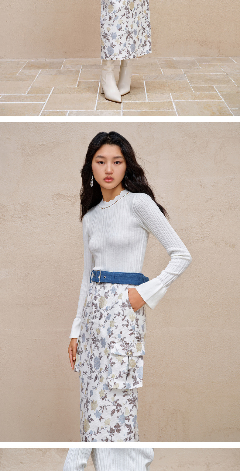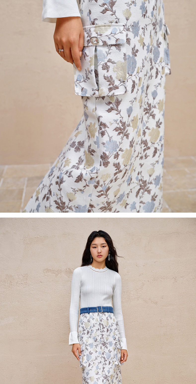 MAXRIENY*浪漫复古感丝绒提花直筒半裙秋冬裙子(货号:MC88SK791)