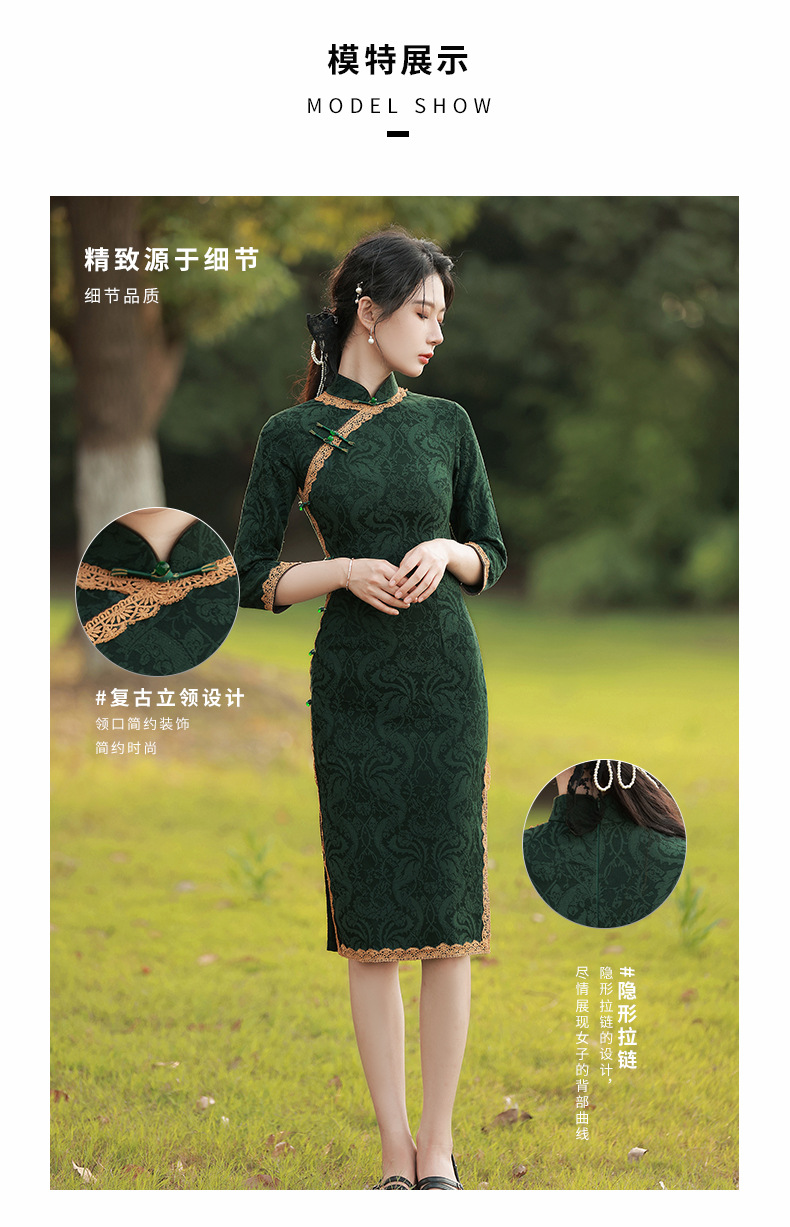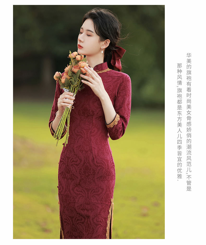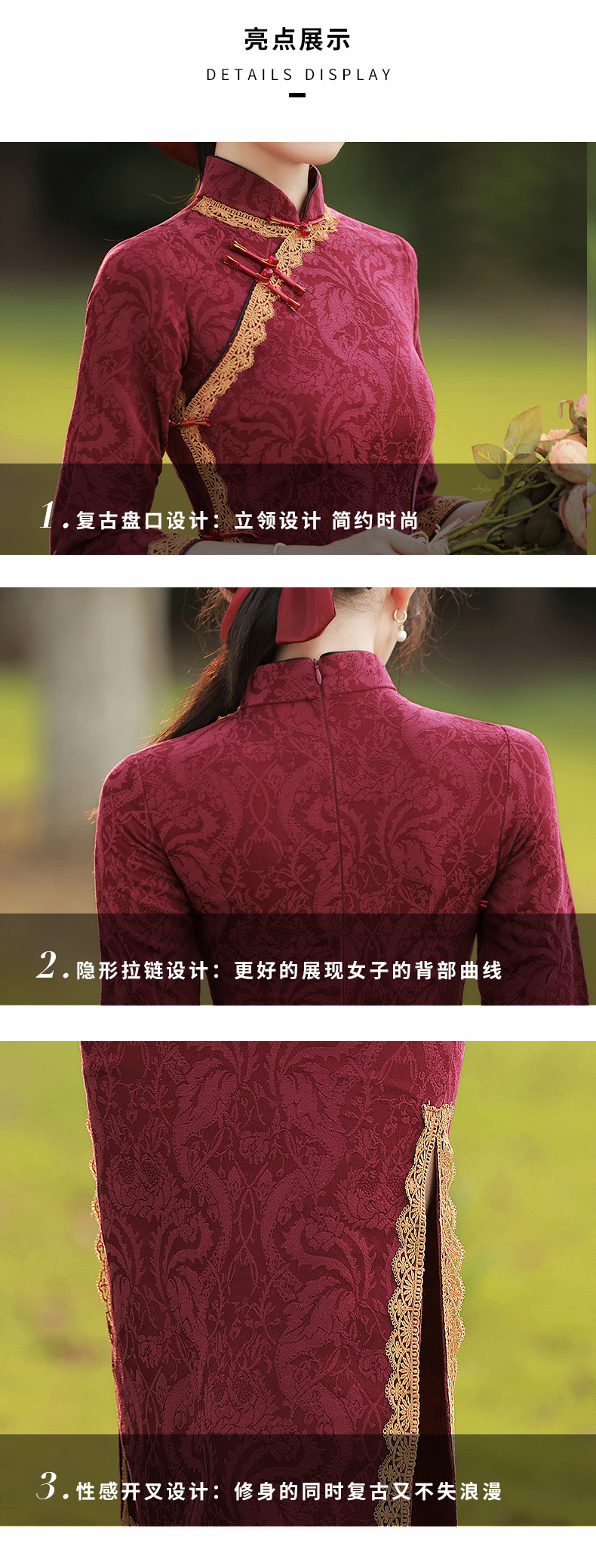 上海旗袍厂NBL-NBL19017 婚宴蕾丝改良旗袍喜婆婆高贵女儿结婚礼服丈母娘中长款秋季
