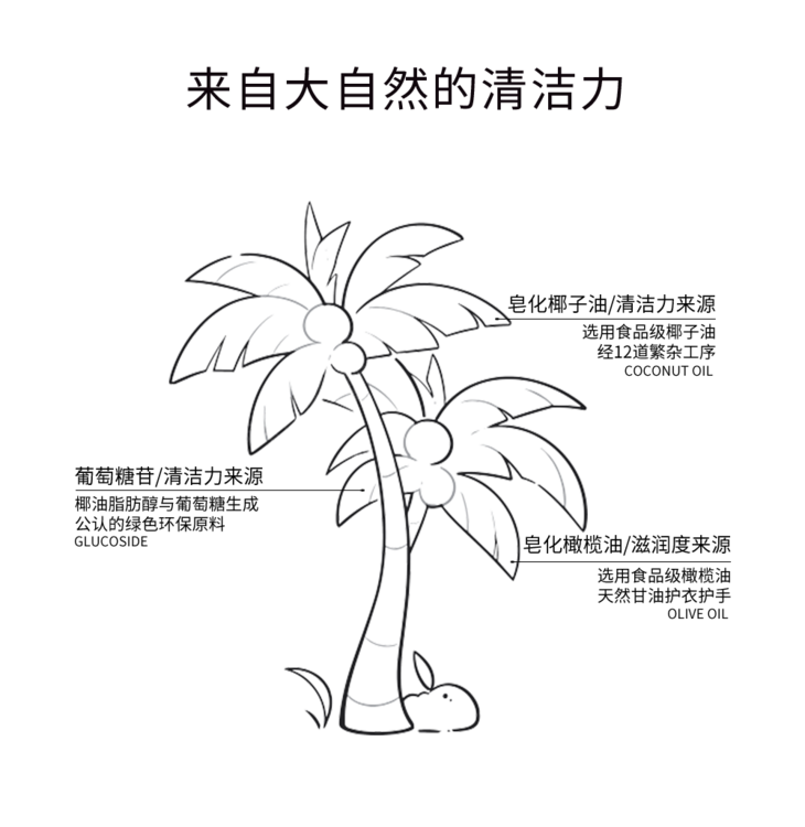 直接用吃的椰子油和橄榄油,像古法做皂一样,变成天然的清洁主力。没有乱七八糟的化工底子,从第一步就开始安心。