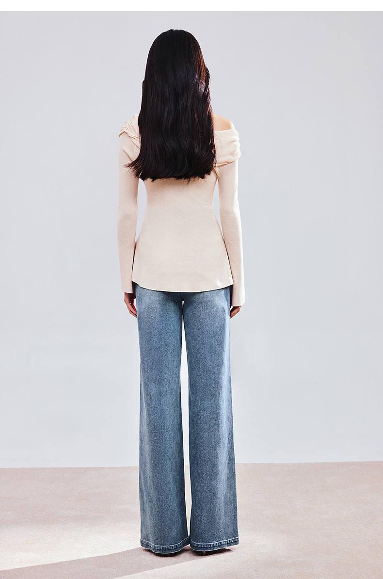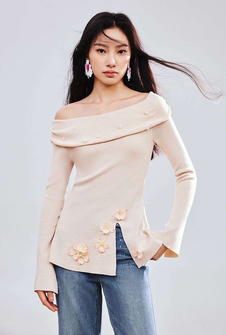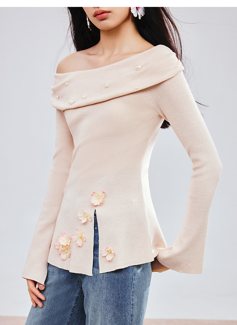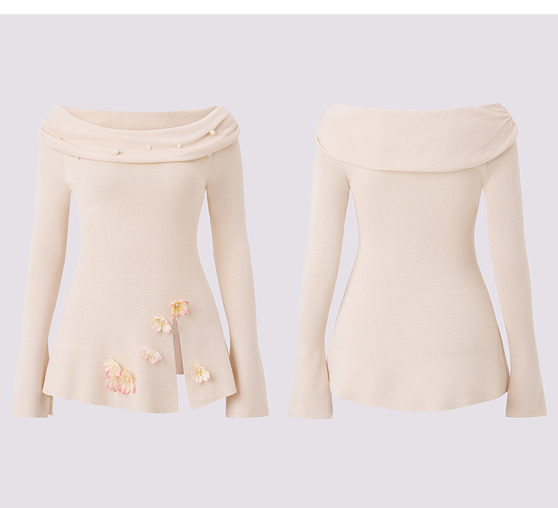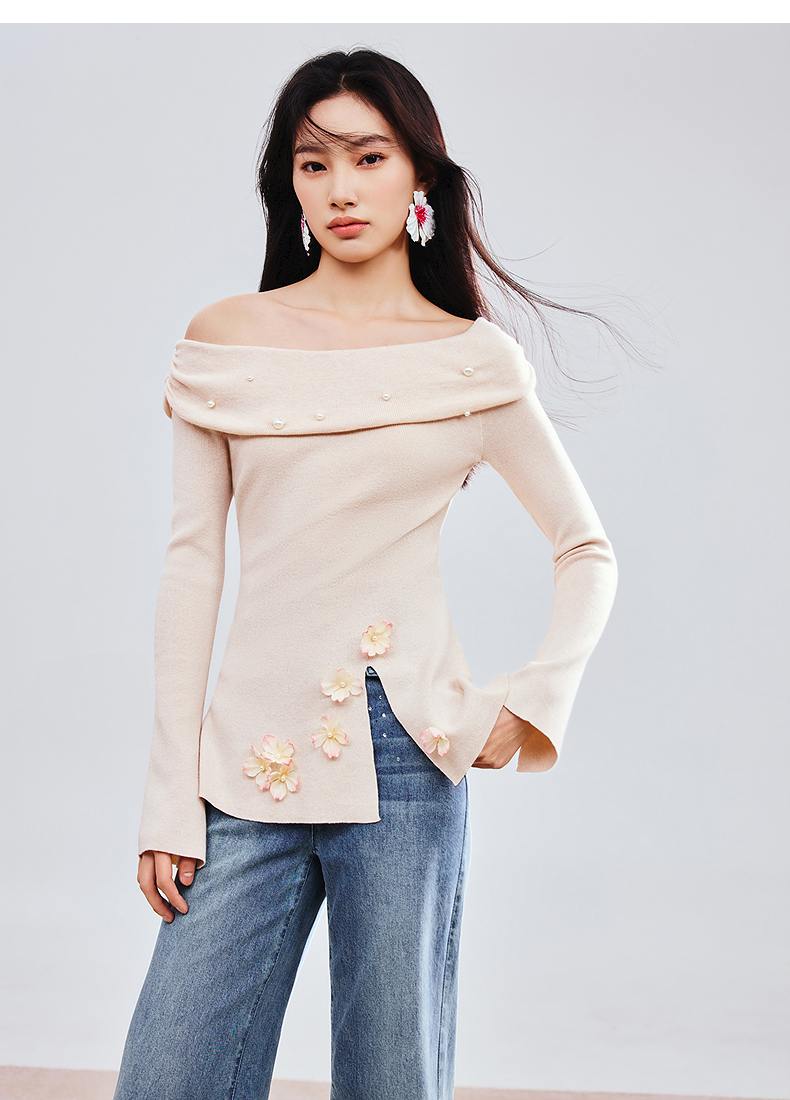 MAXRIENY精致优雅感套头针织衫25春新款一字领修身显瘦长袖上衣女(货号:MS85SW784)