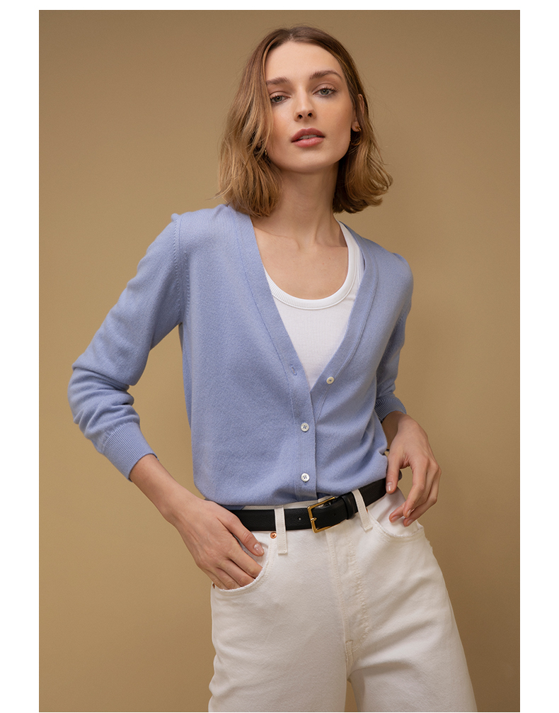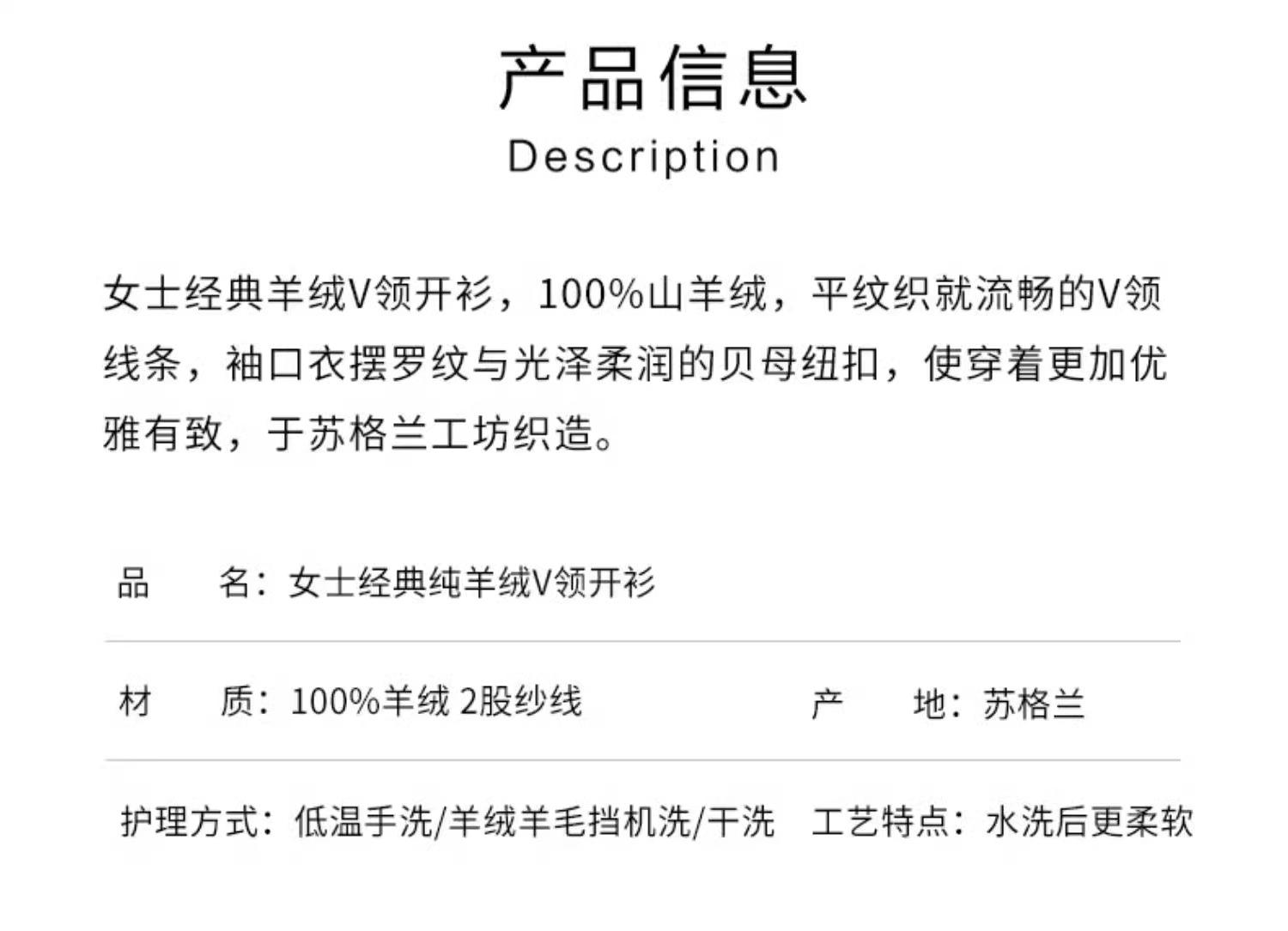 Johnstons of Elgin女士纯羊绒经典V领开衫