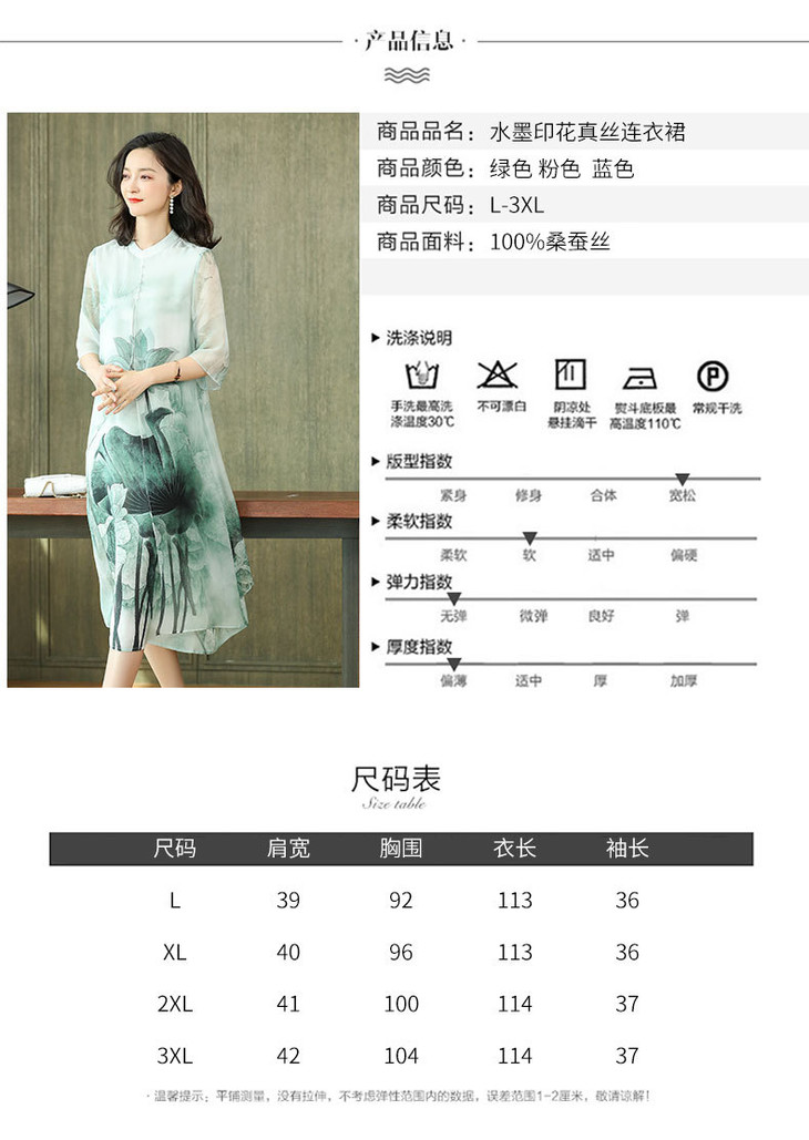 上海旗袍厂ASE-6635水墨气质真丝连衣裙