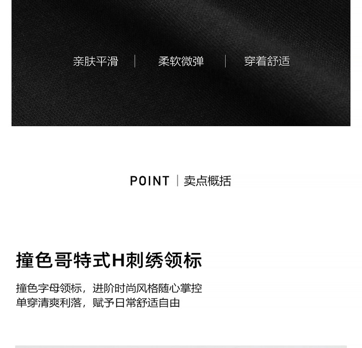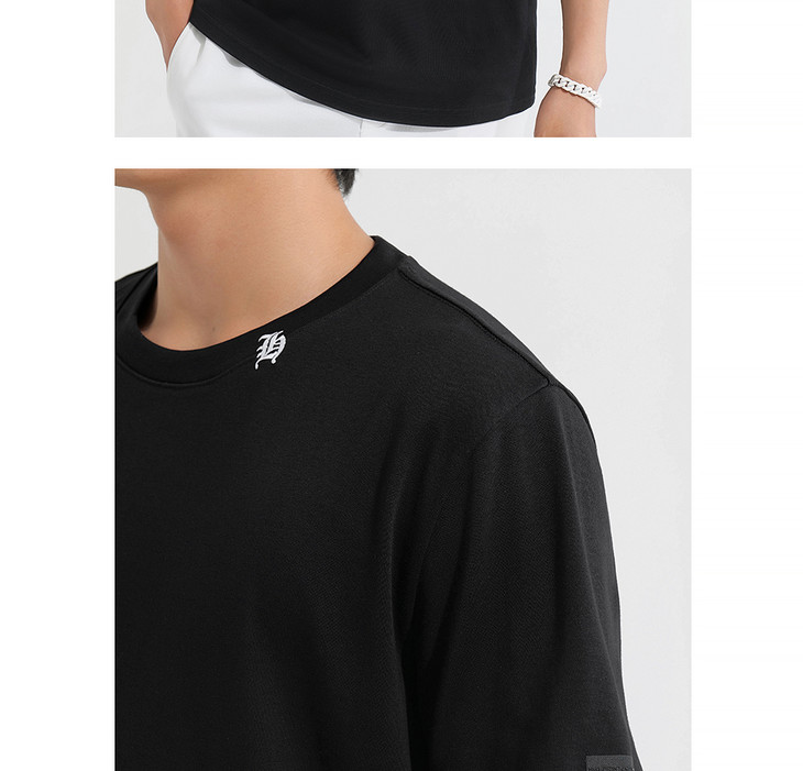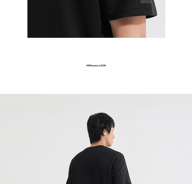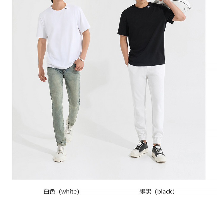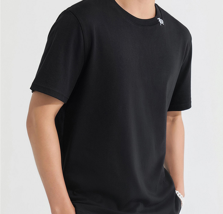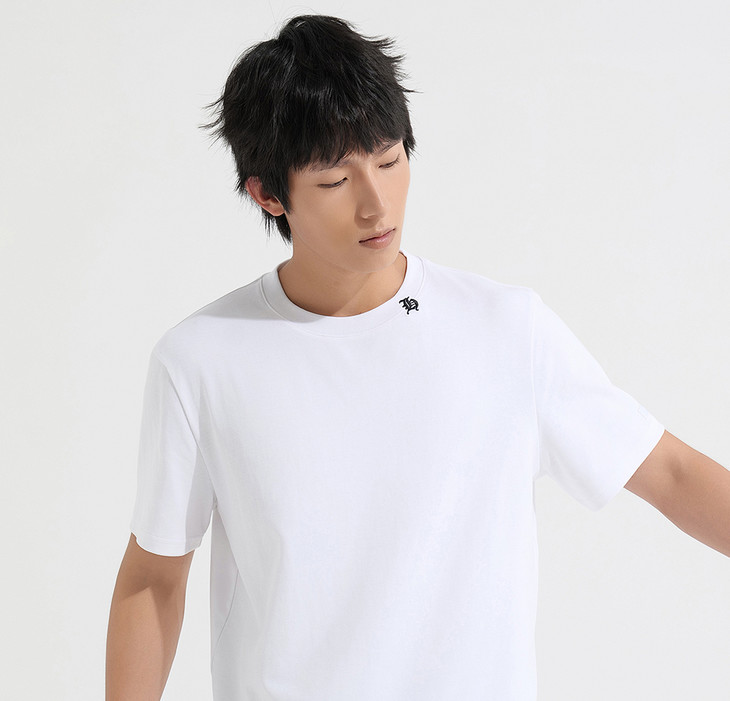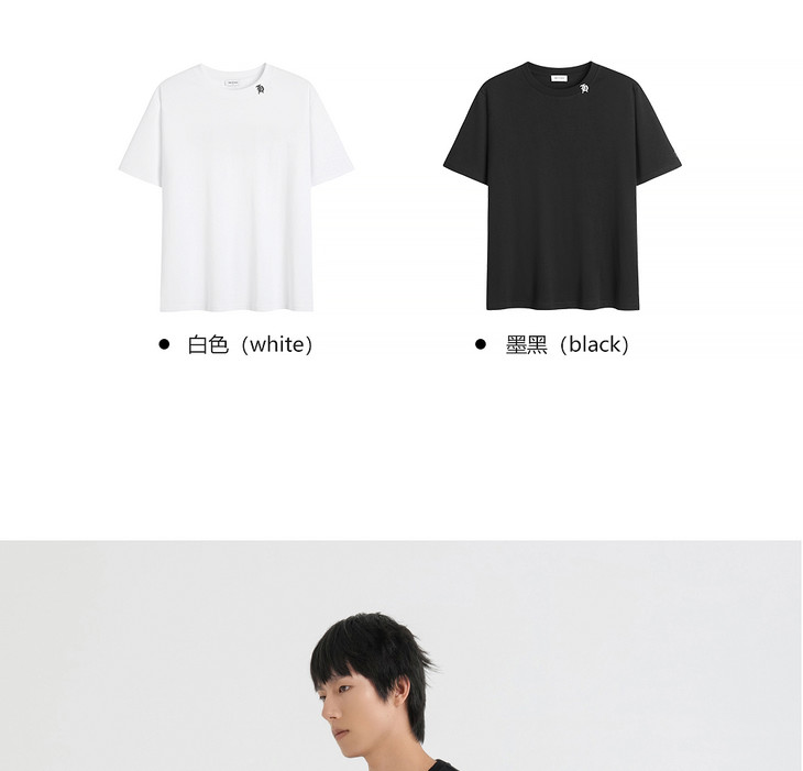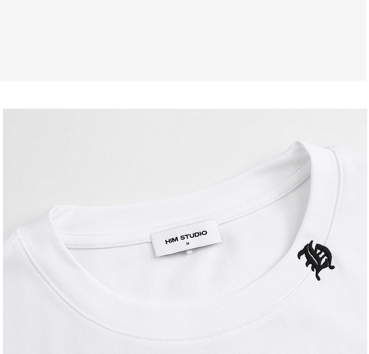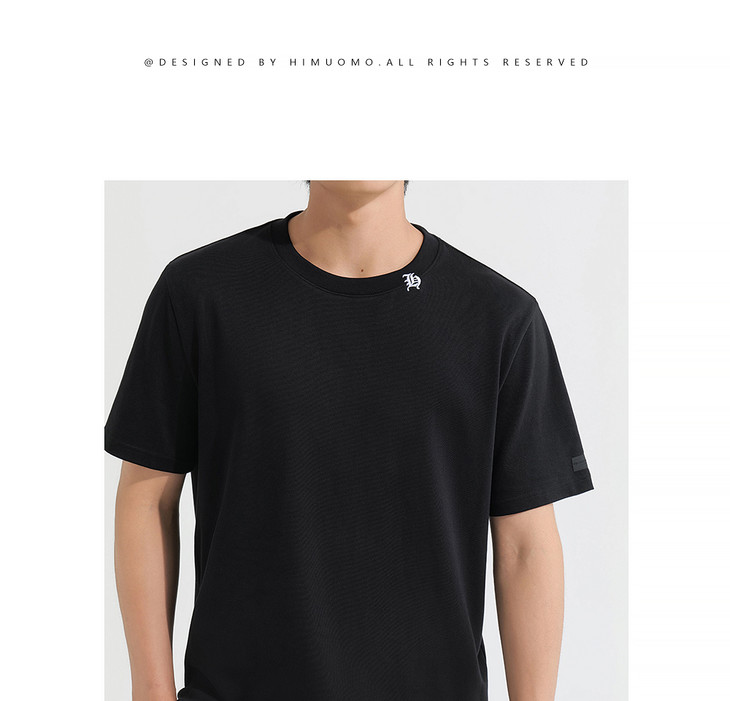 HIM漢崇 简约休闲圆领T恤撞色刺绣领标修身短袖打底衫 2025夏季