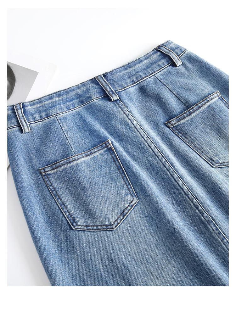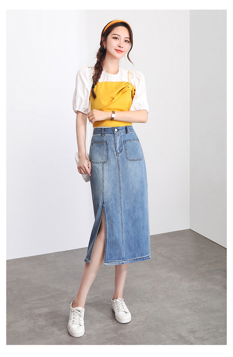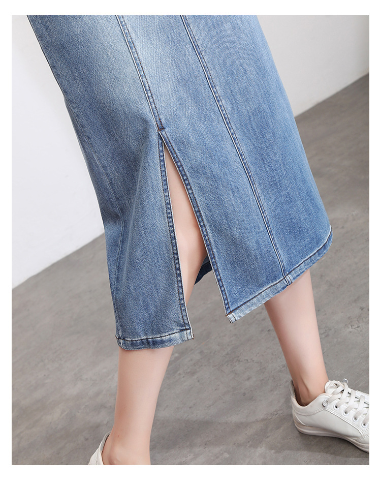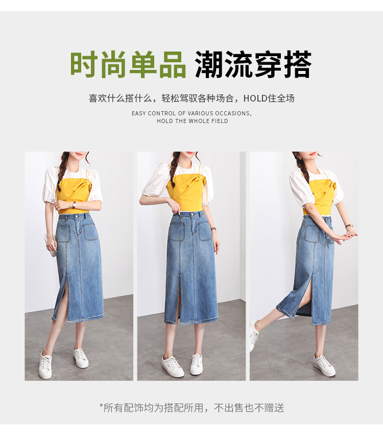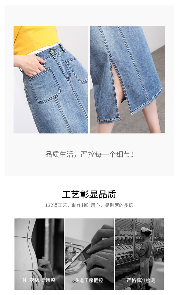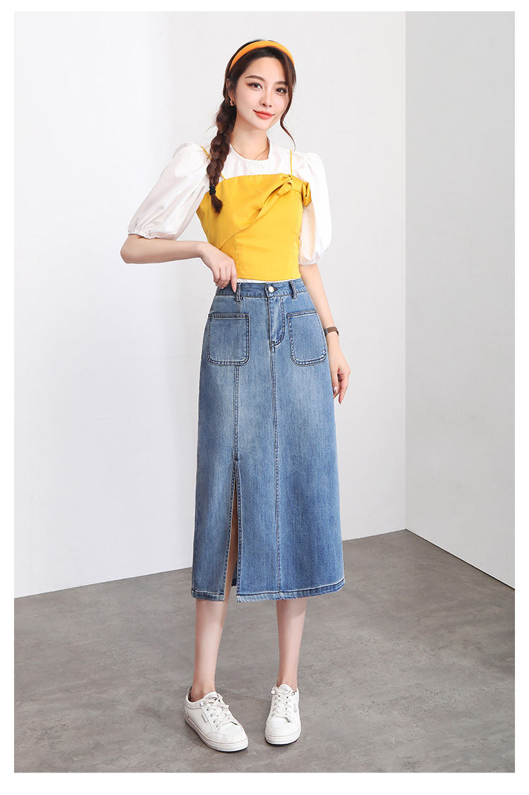 修身时尚,牛仔拼接中长款A字裙夏款高腰休闲侧开叉时髦半身裙MYX-33127