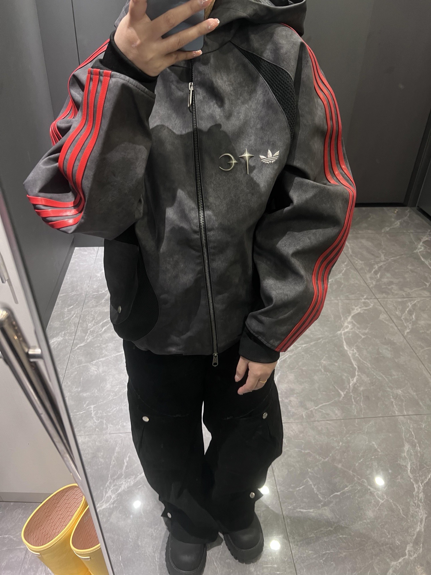 AD originals x THUG CLUB 联名款 TG LTHR JKT 运动连帽拉链舒适夹克