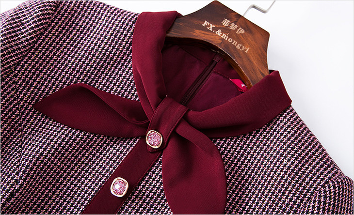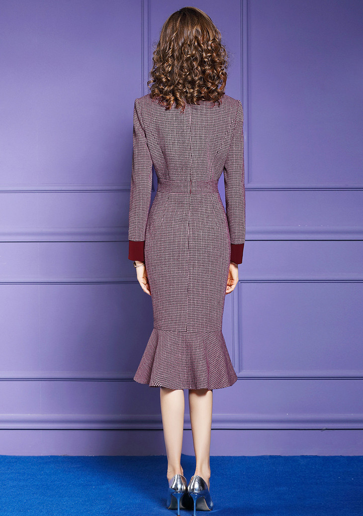 FMY-27741格子连衣裙女长袖2020春秋小香风修身中长款鱼尾裙子