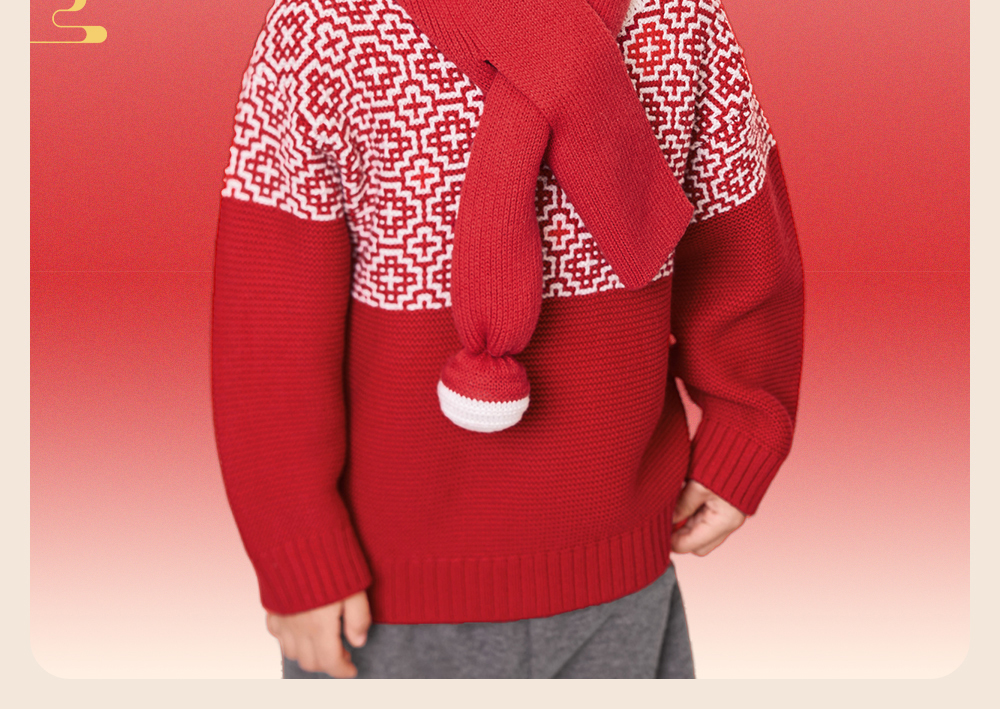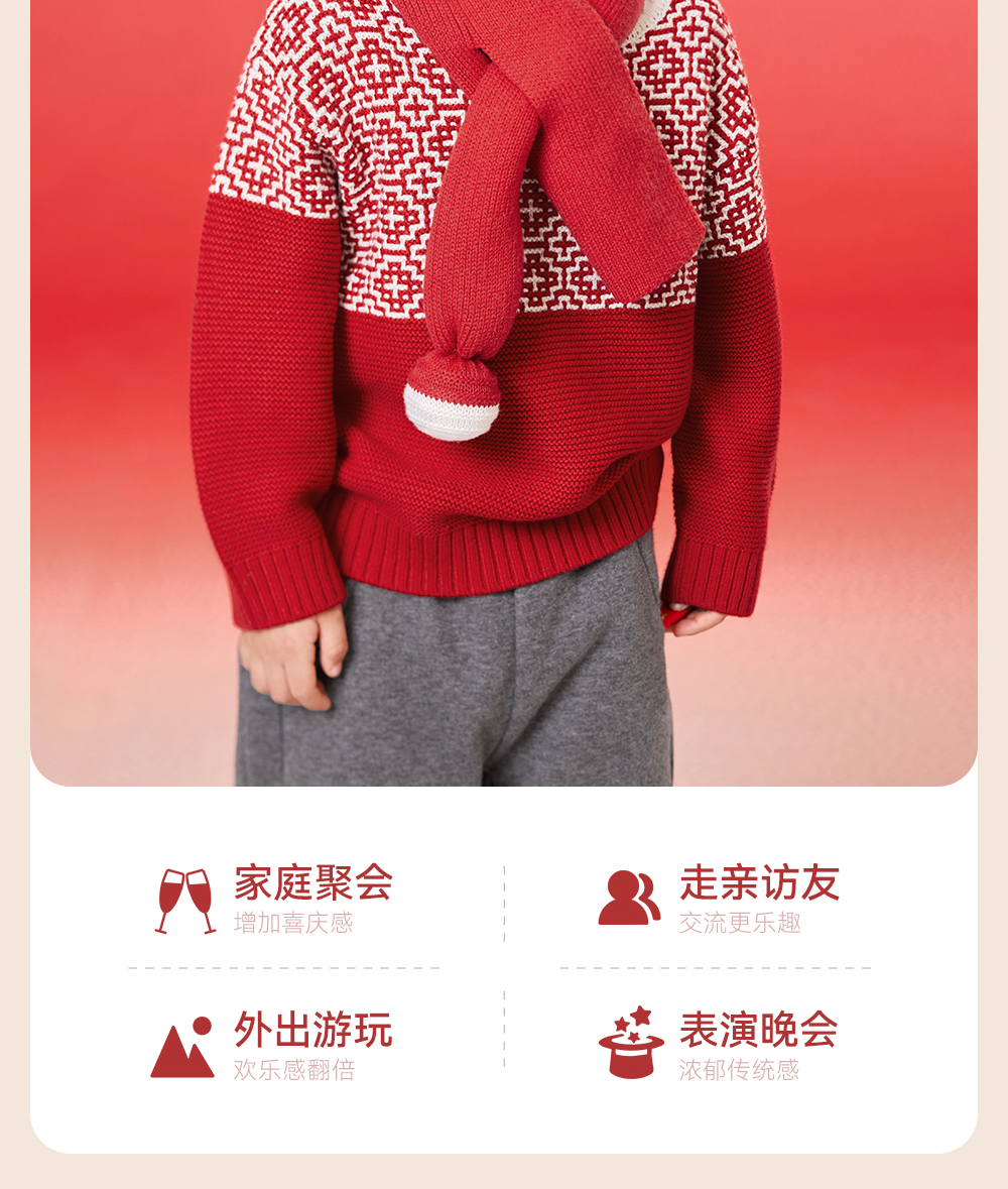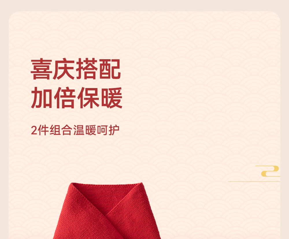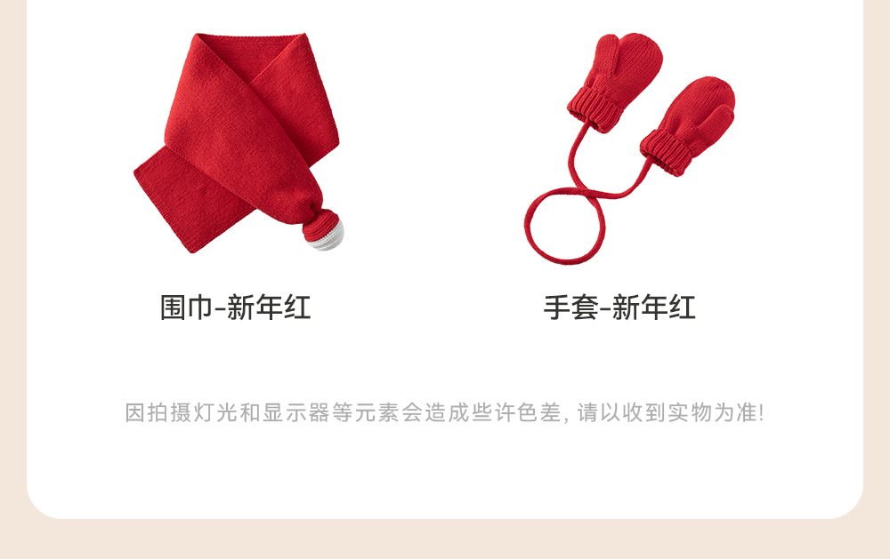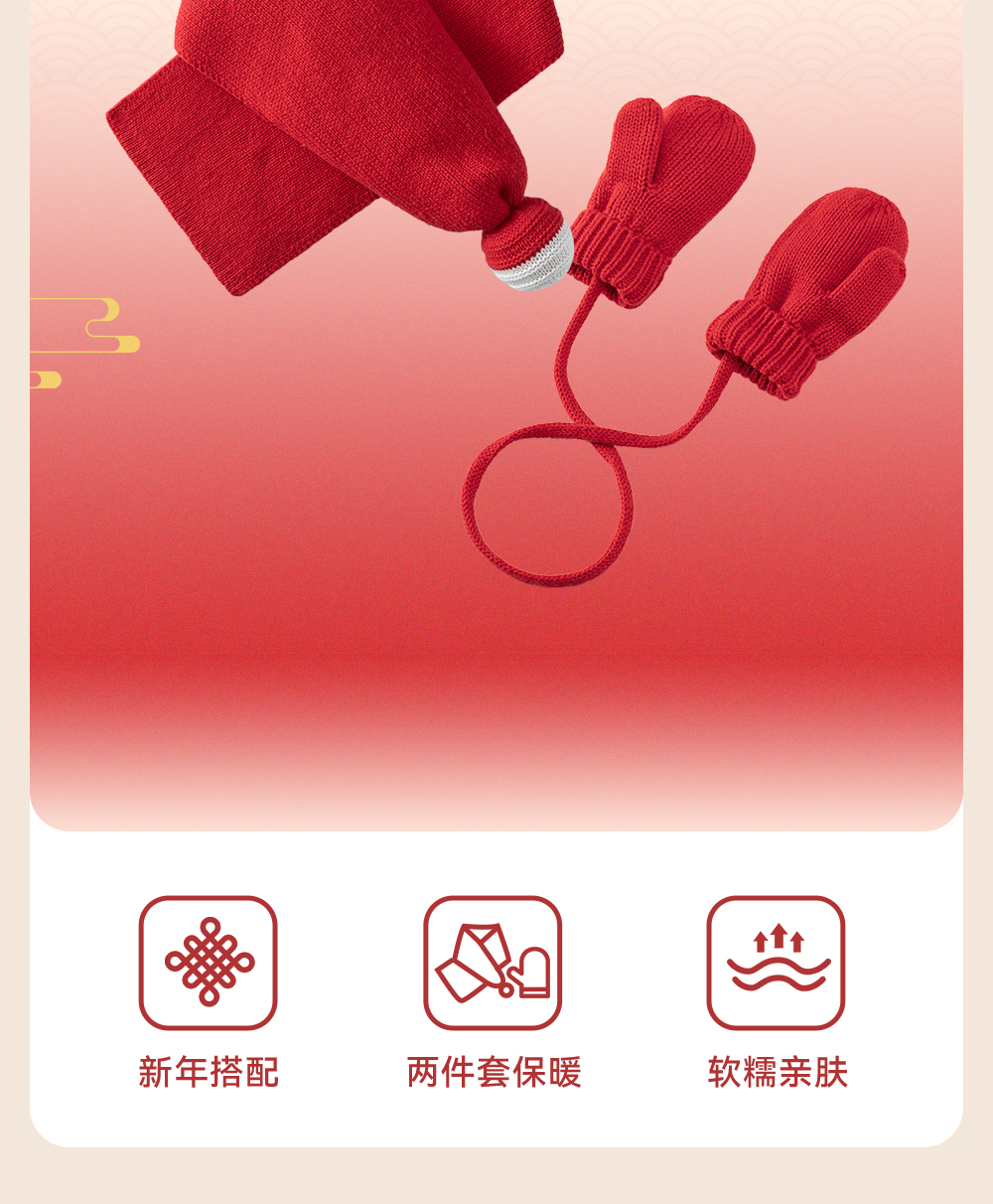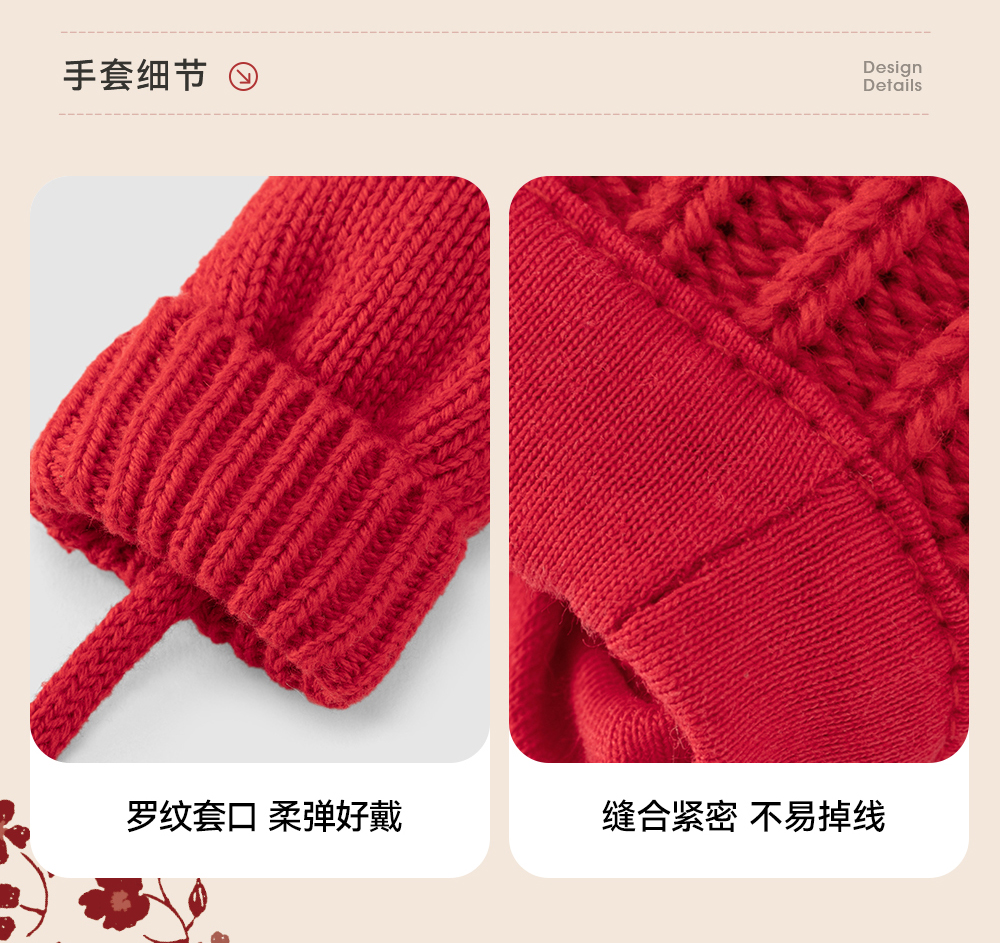 英氏儿童手套围巾组合冬季保暖外出宝宝手套新款喜庆拜年