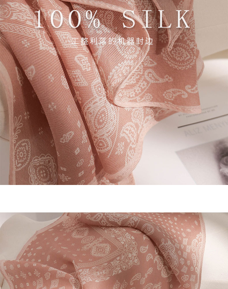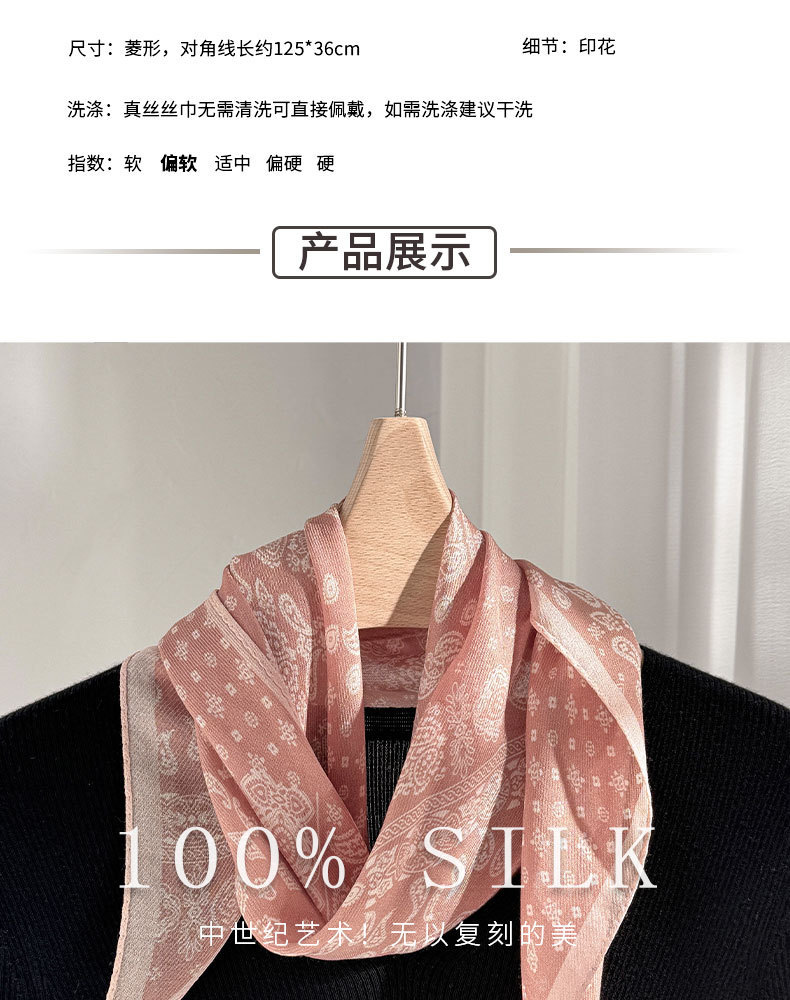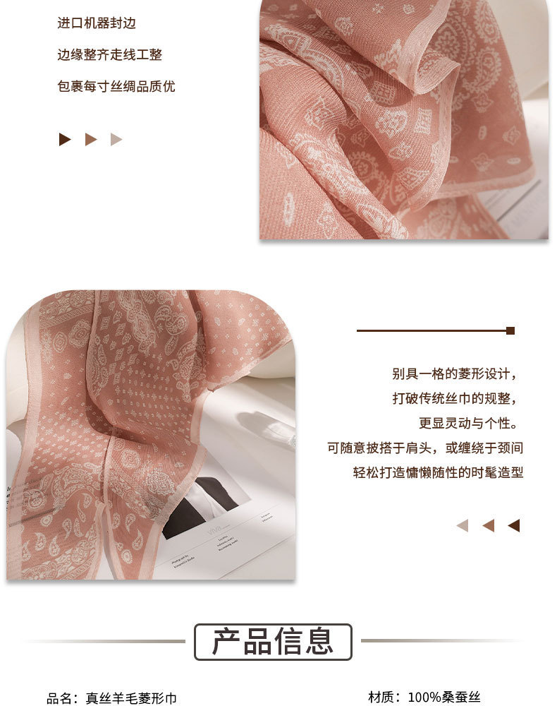 丁摩韩版新款围巾女桑蚕丝+羊毛春日粉色丝巾复古腰果菱形小丝巾 Z5-001WAL