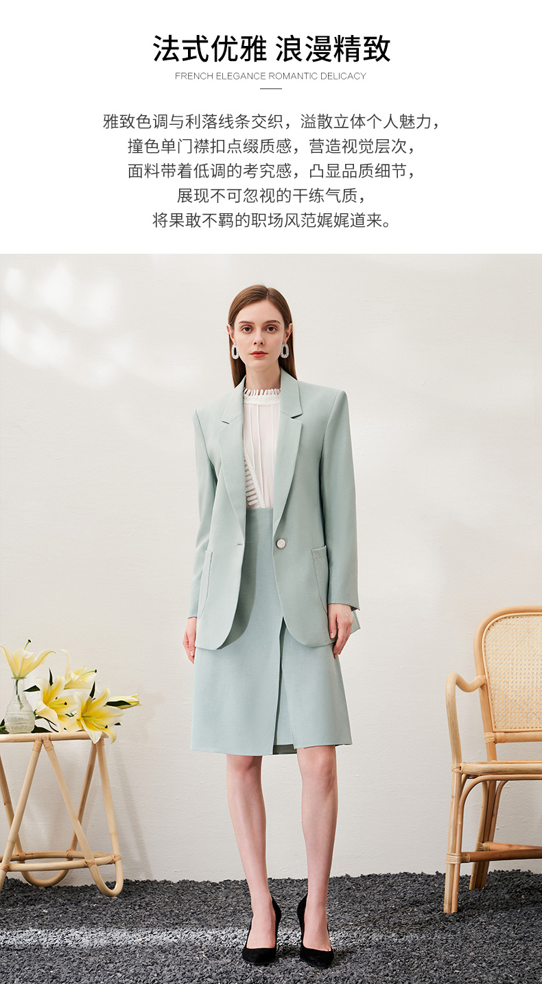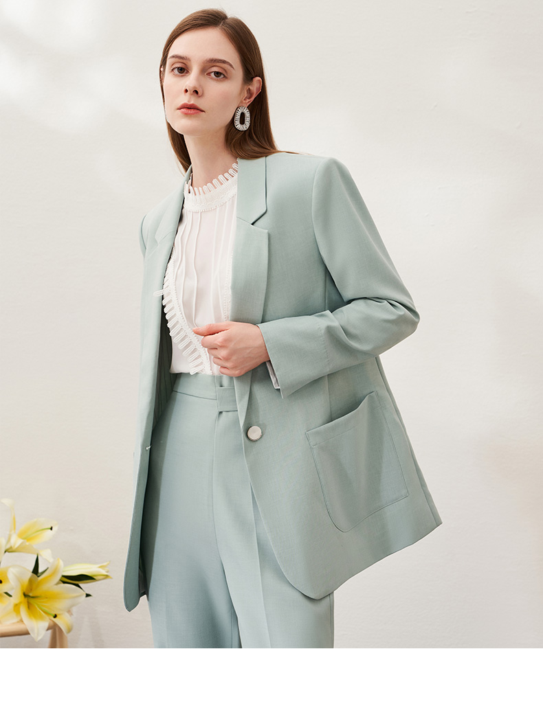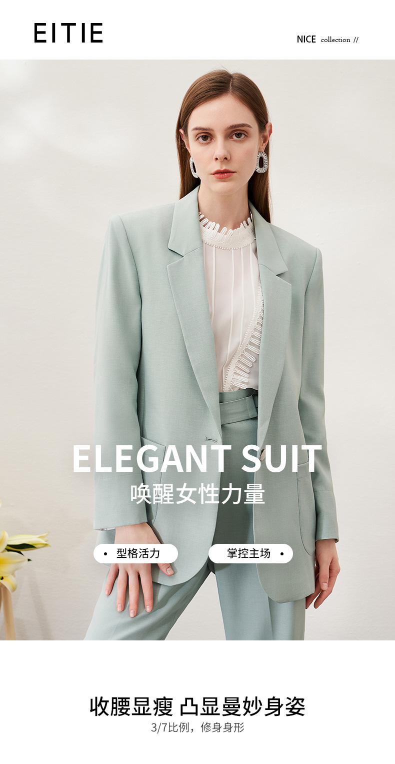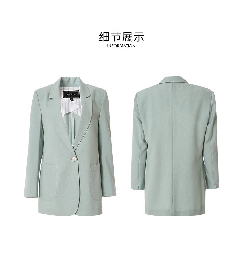 EITIE爱特爱春季新款时尚通勤职业显瘦纯色西装外套女中款6903610