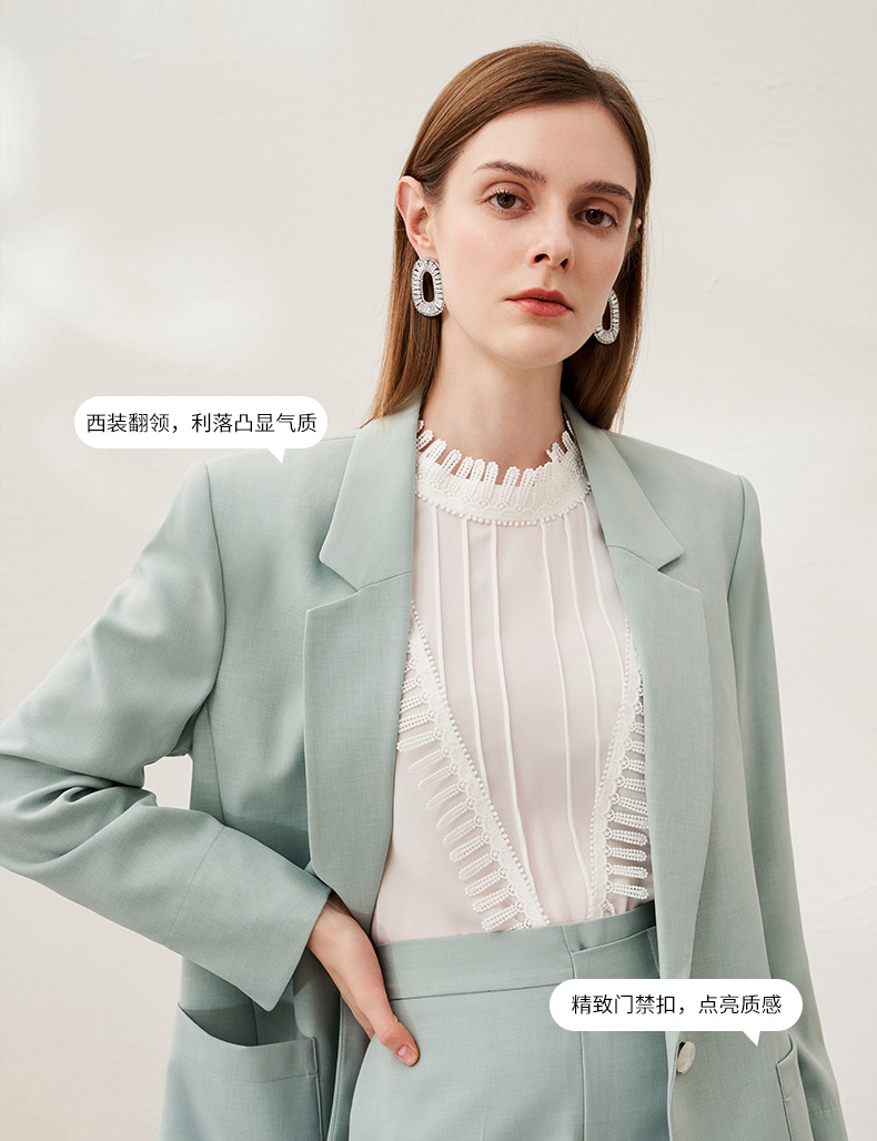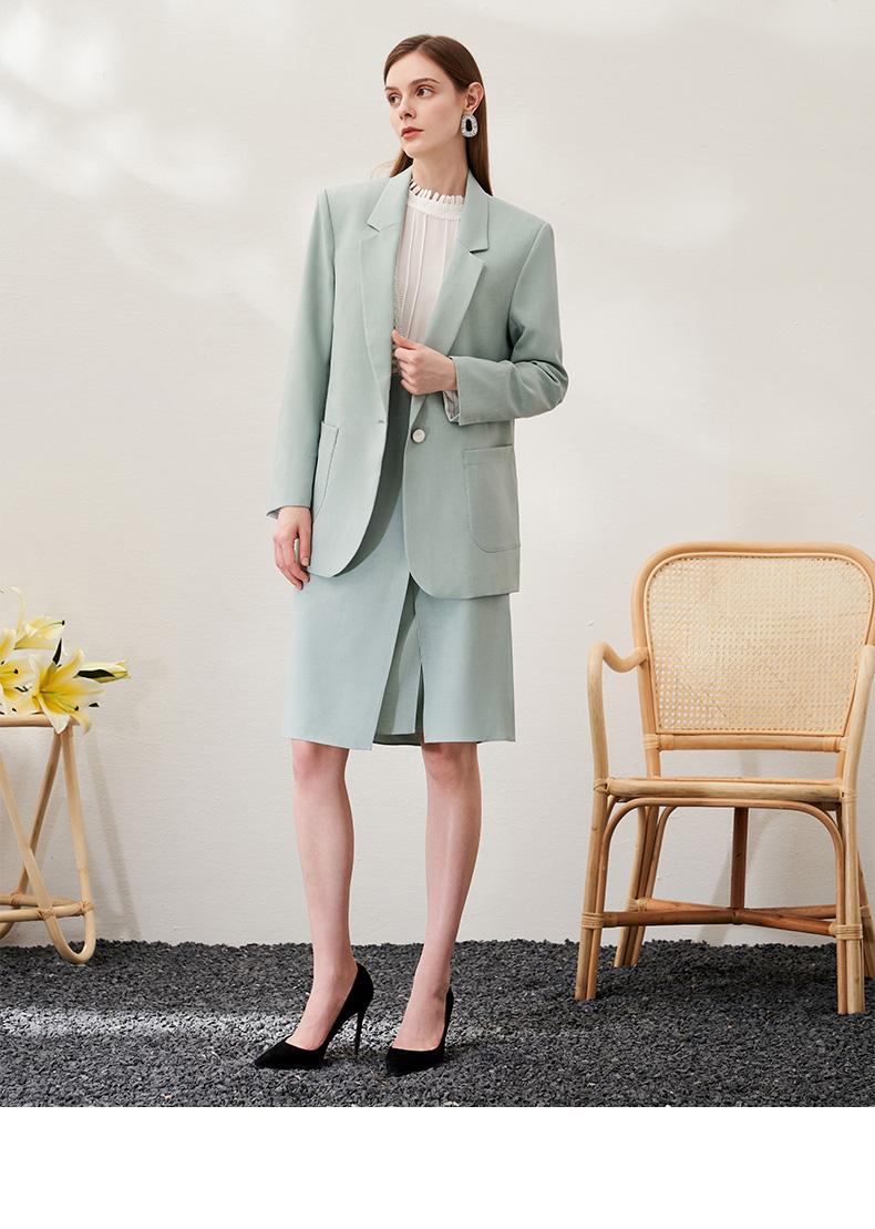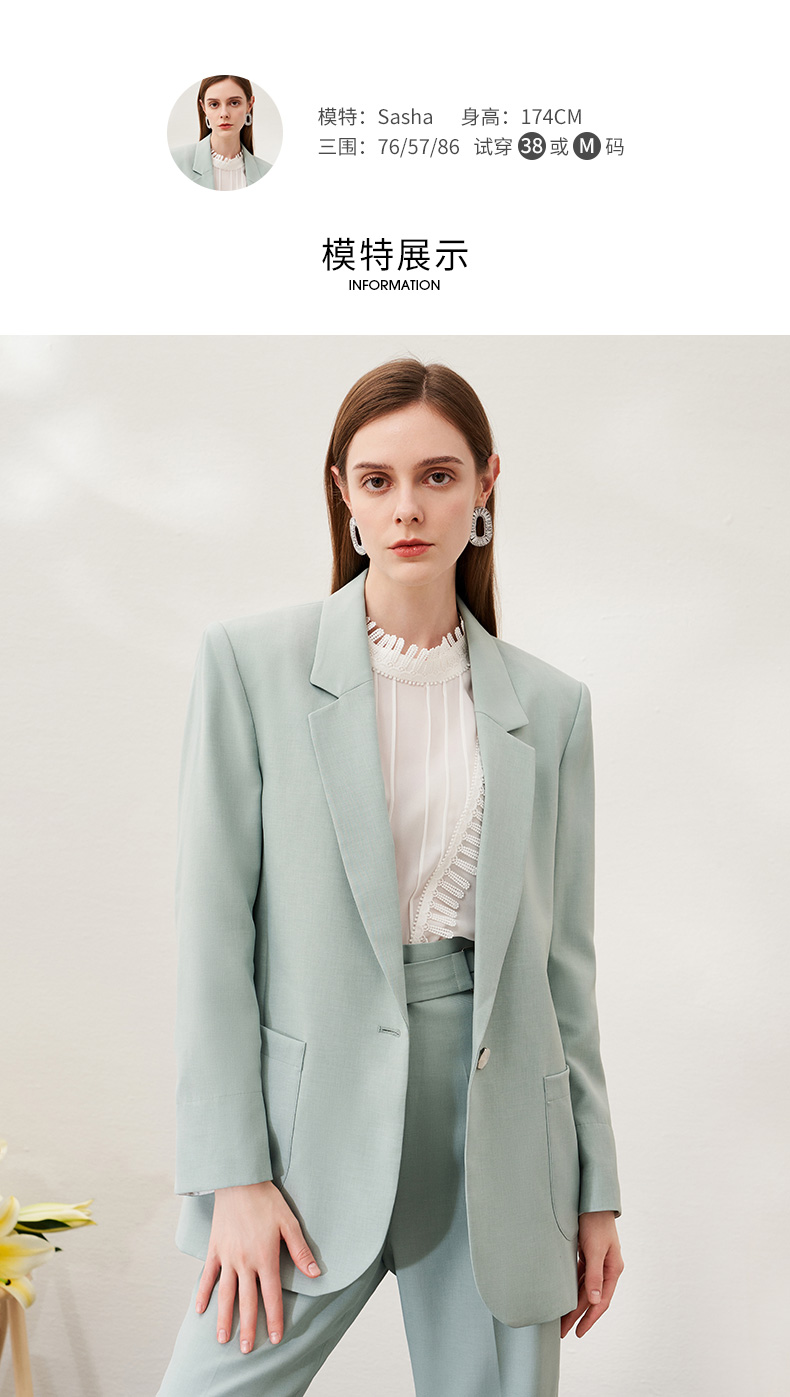 EITIE爱特爱春季新款时尚通勤职业显瘦纯色西装外套女中款6903610