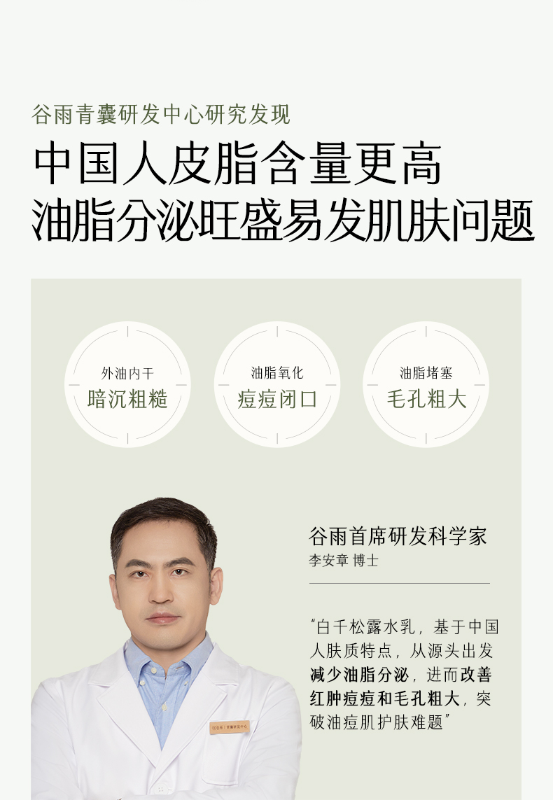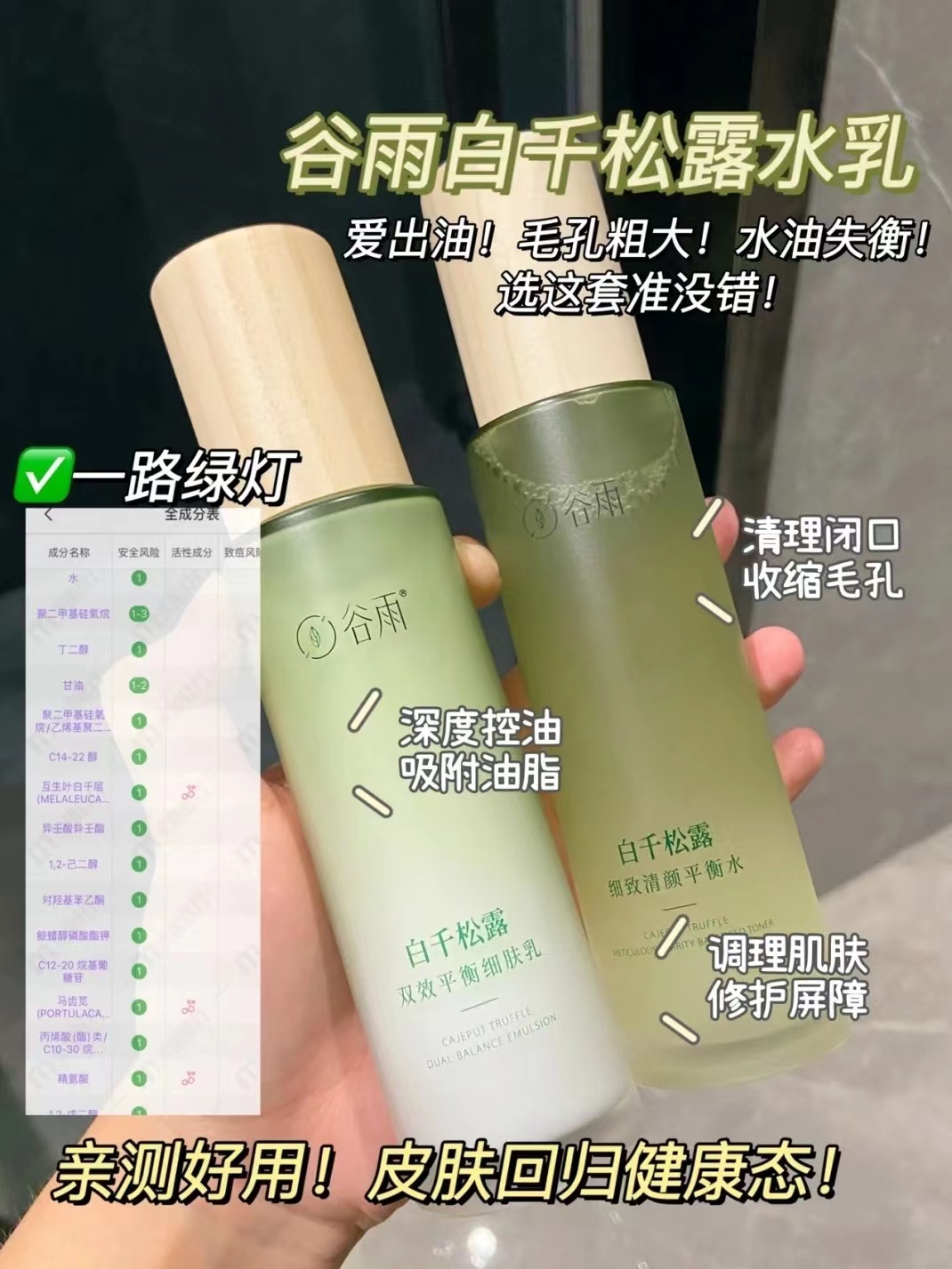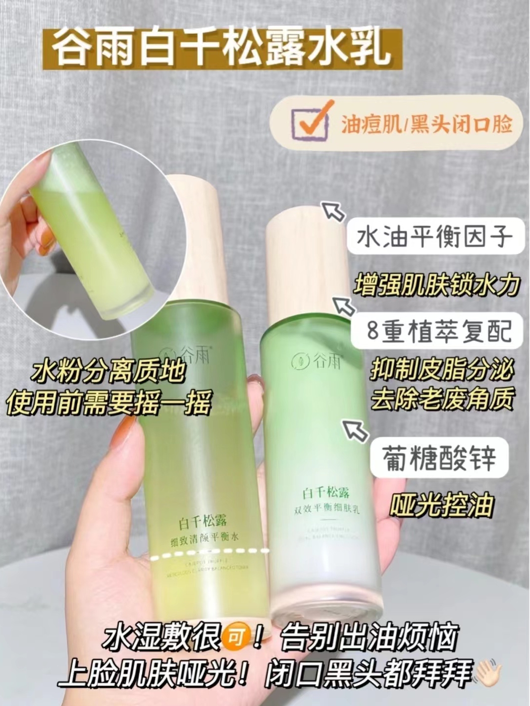 谷雨白千松露水乳套装 控油保湿平衡水油油痘肌修护