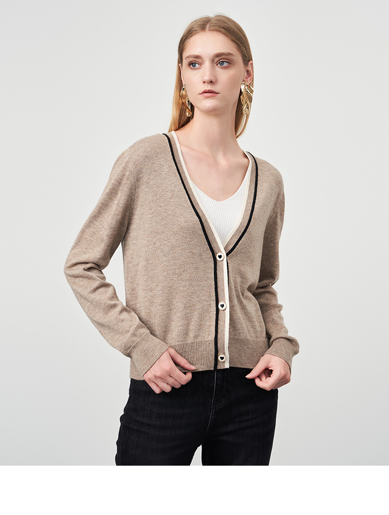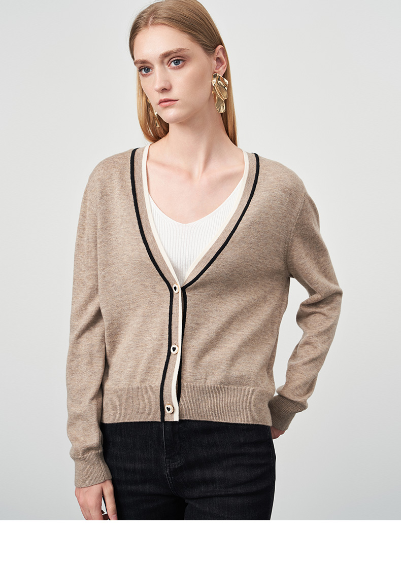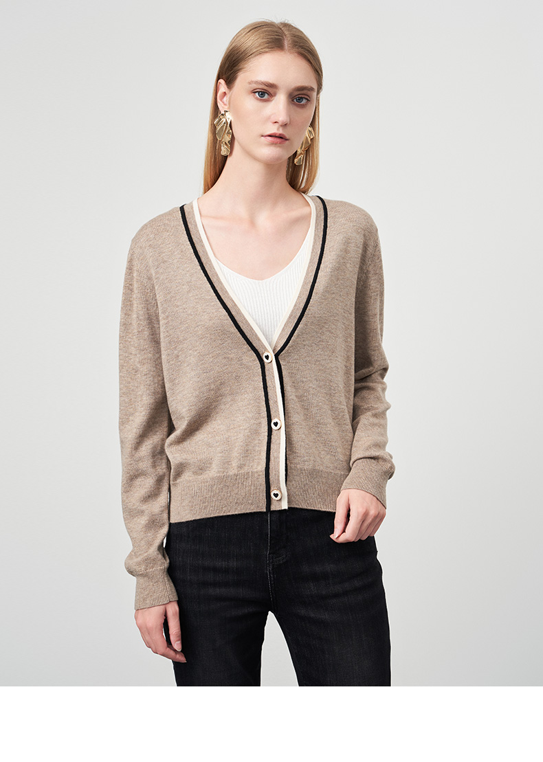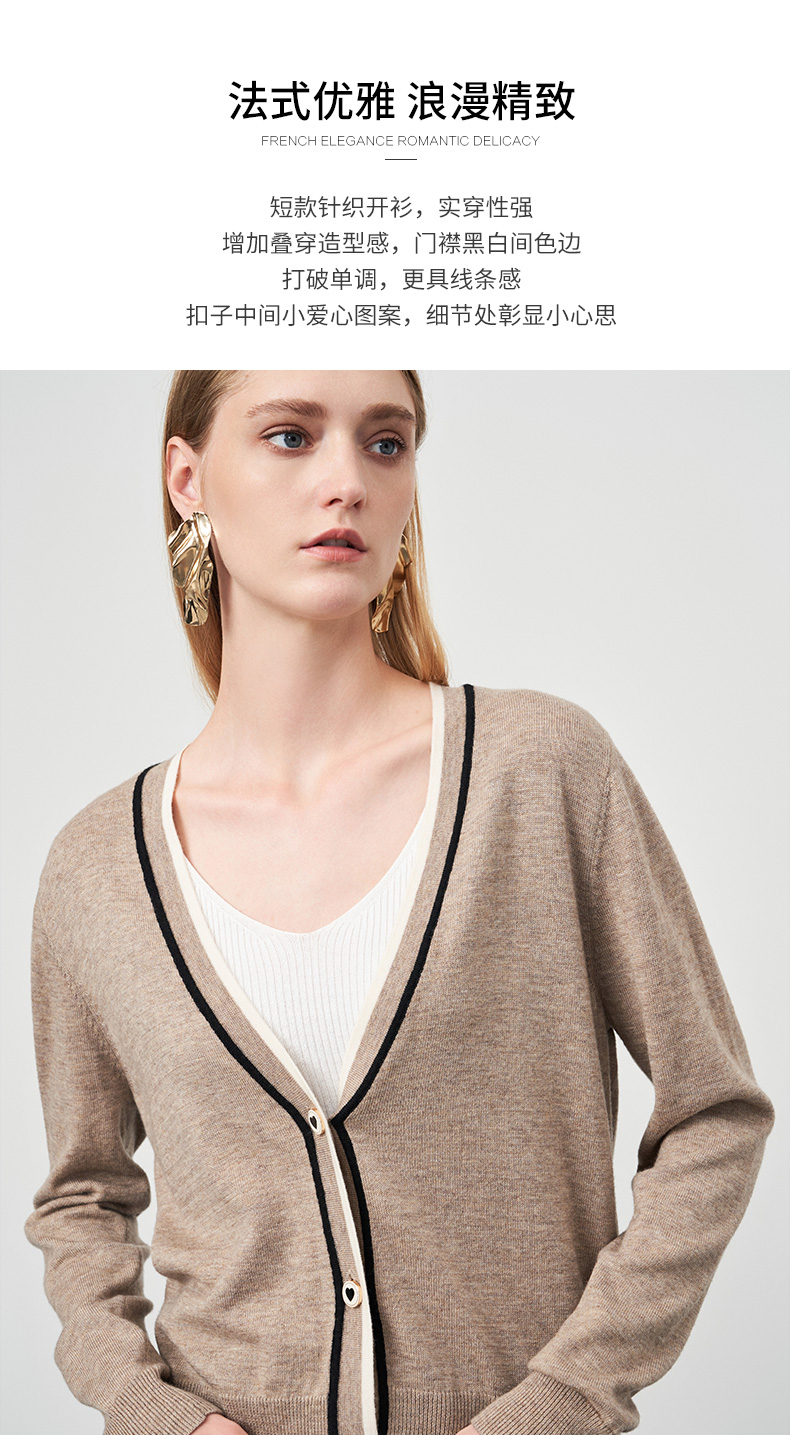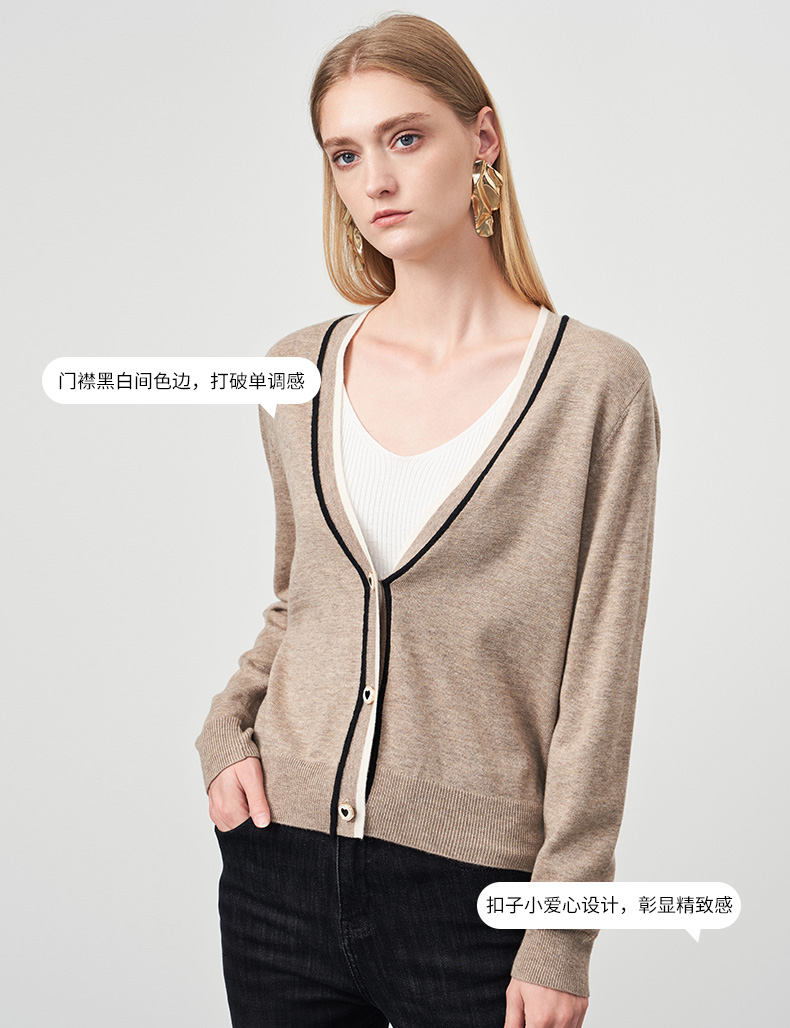 EITIE爱特爱冬季新款V领女显瘦修身毛衣开衫针织衫6801506
