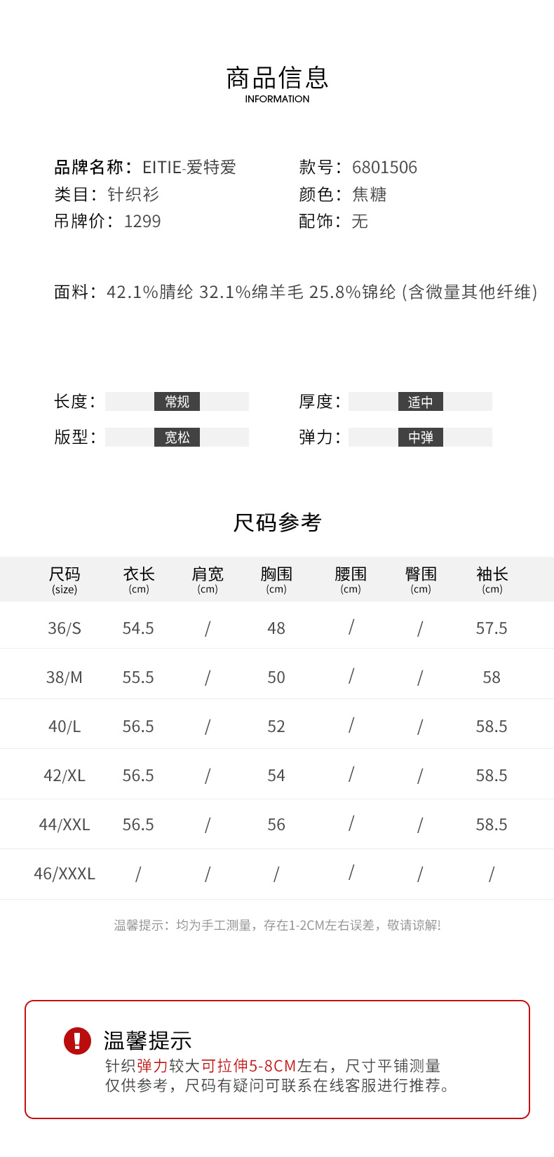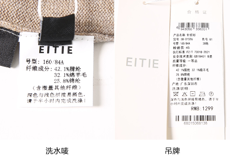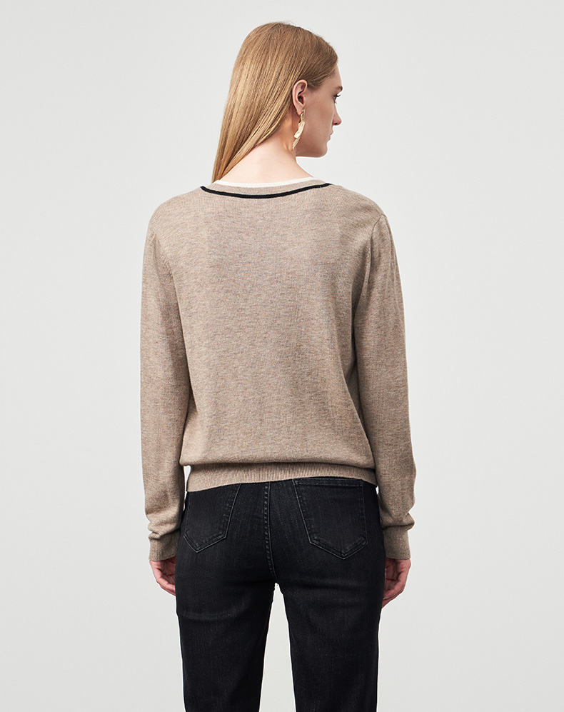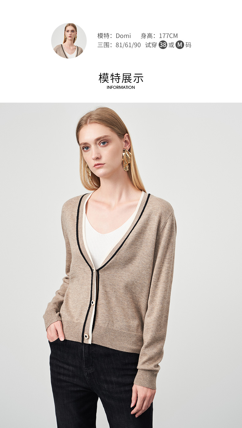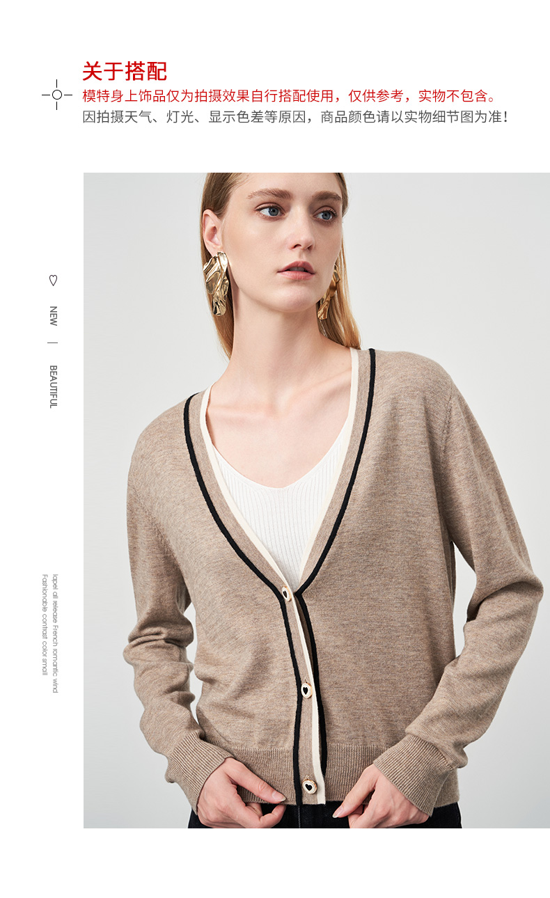 EITIE爱特爱冬季新款V领女显瘦修身毛衣开衫针织衫6801506
