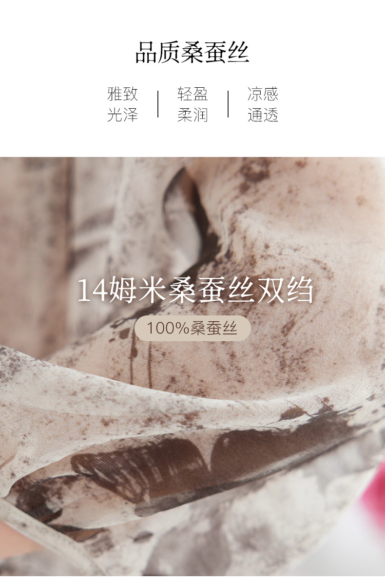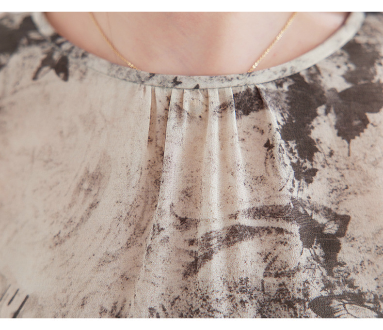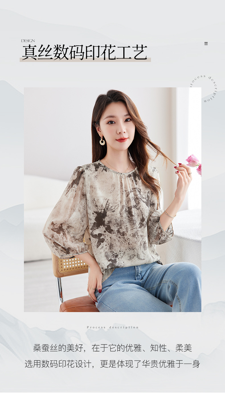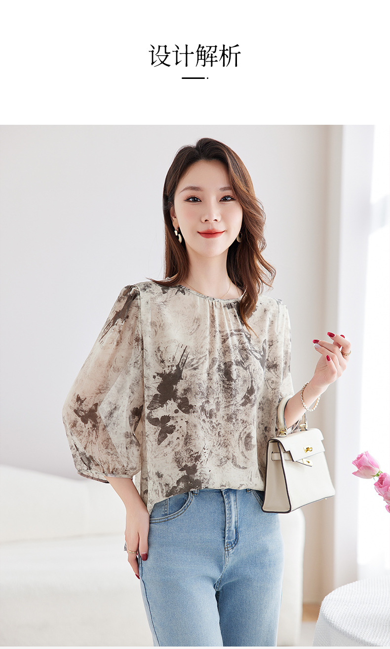 【100%桑蚕丝】双绉印花真丝衬衫,国风灯笼印花五分袖衬衣SM-12599728