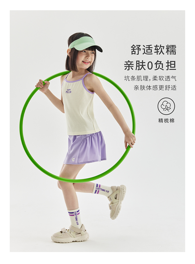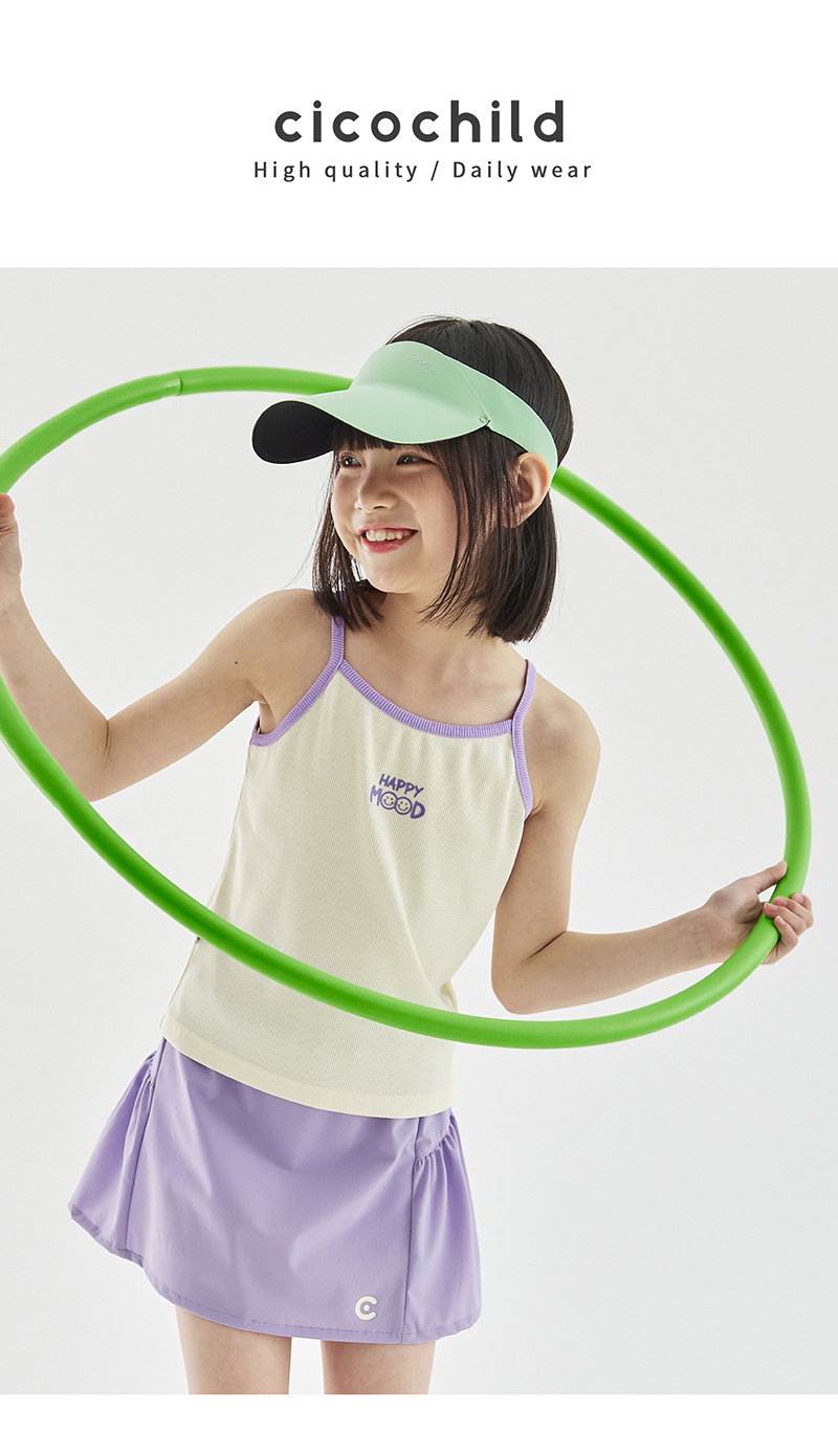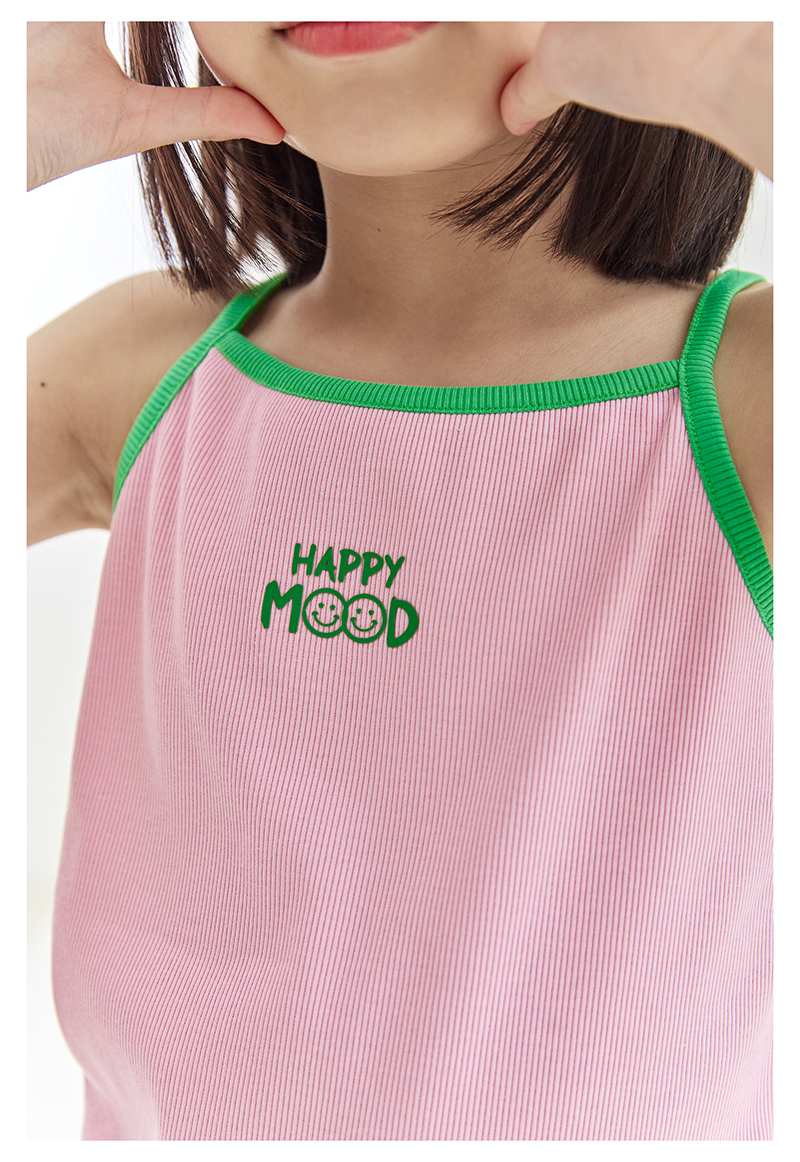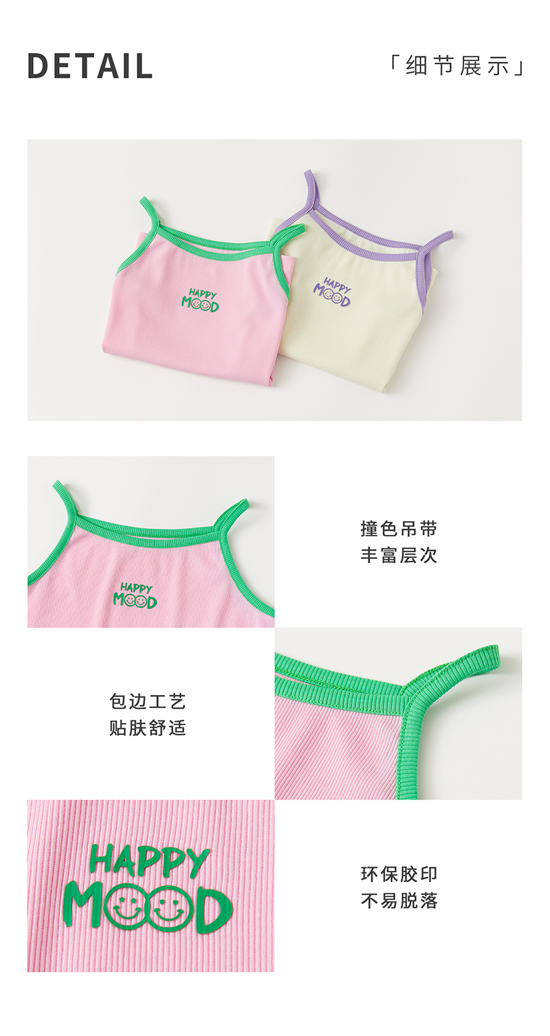 cicochild夏季新品儿童百搭撞色印花背心亲子款亲肤弹力吊带
