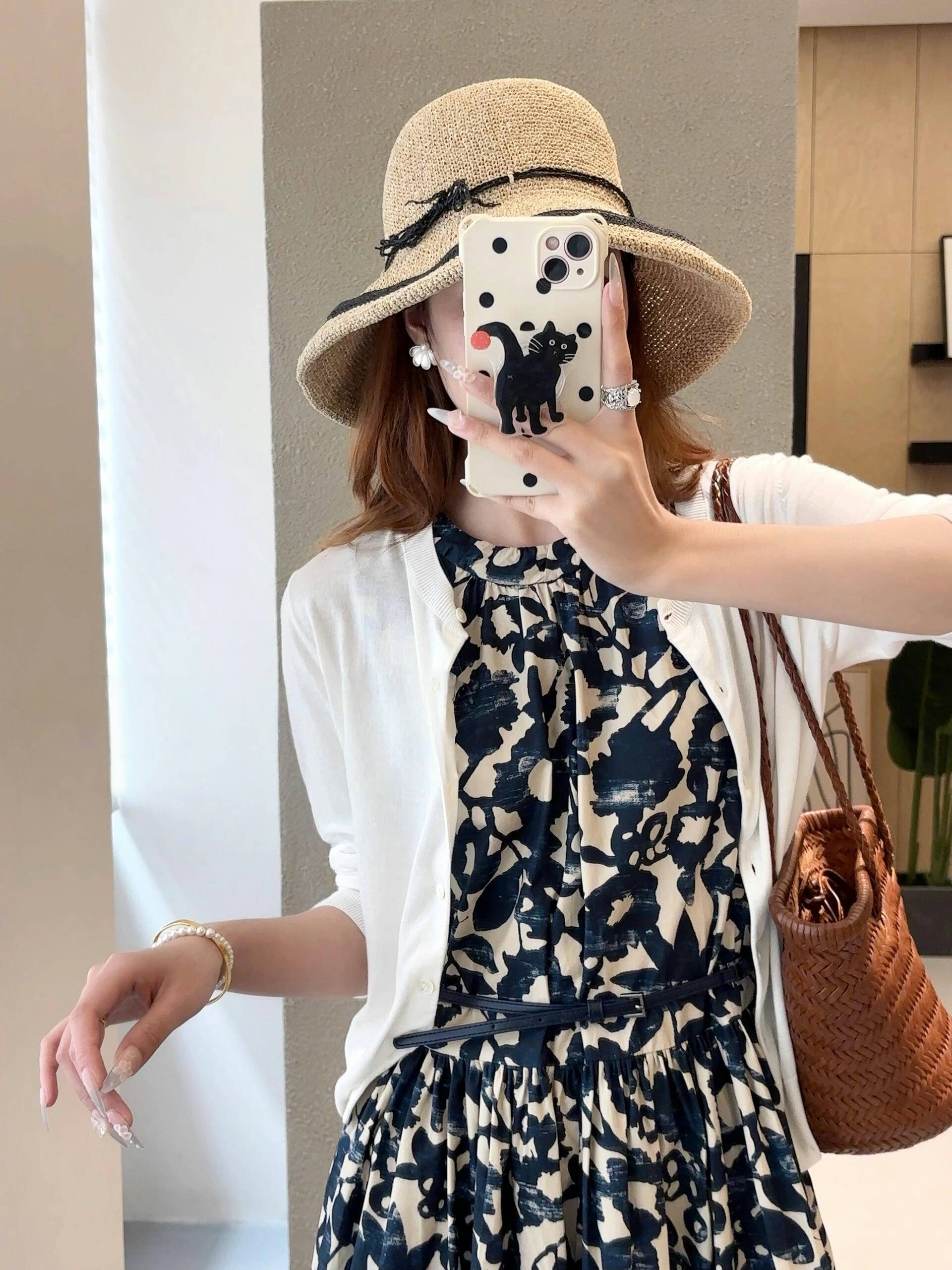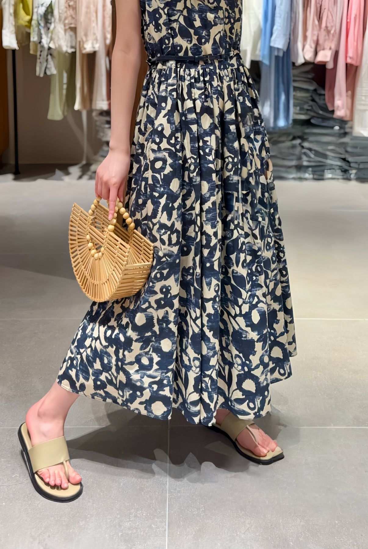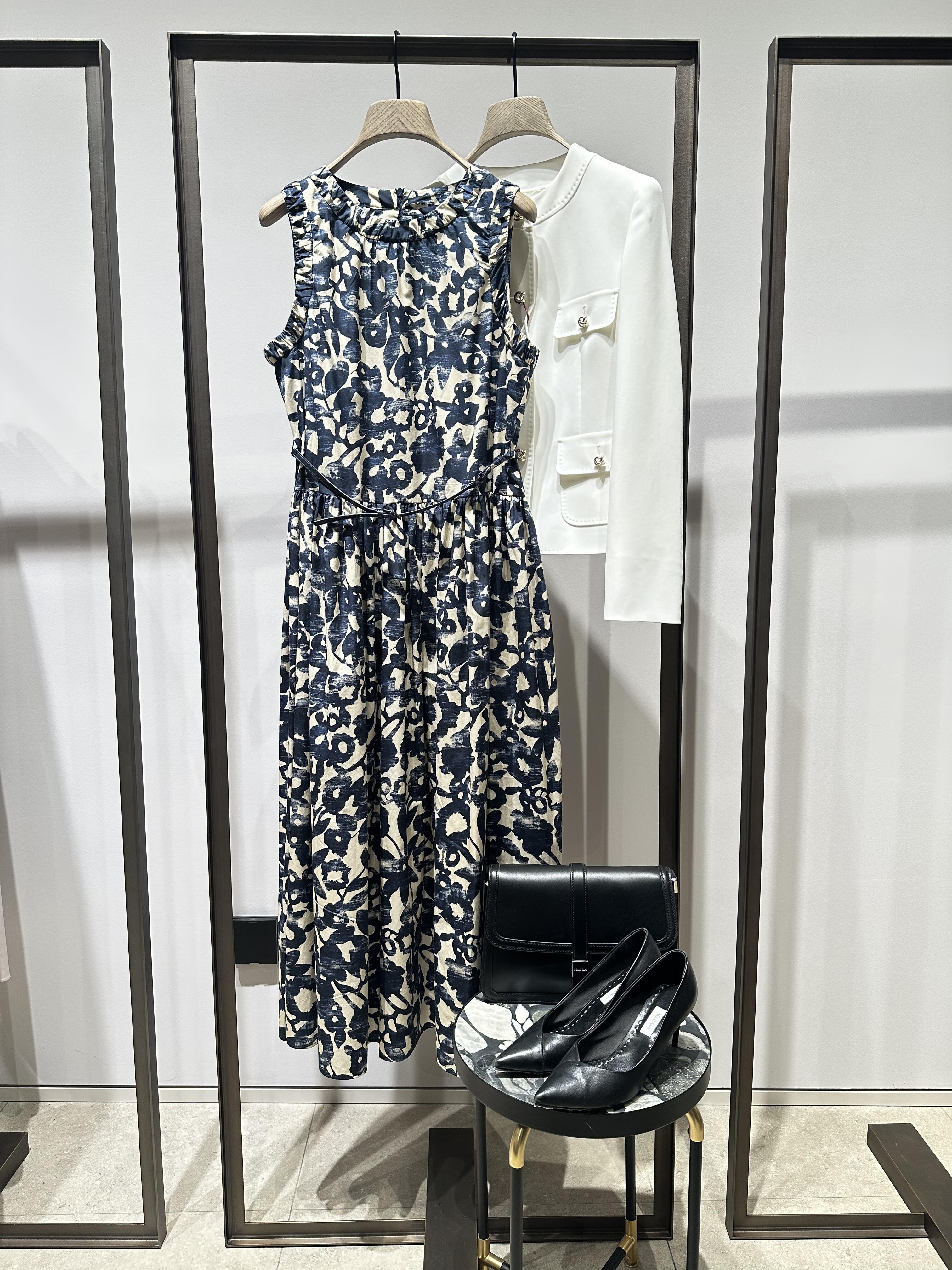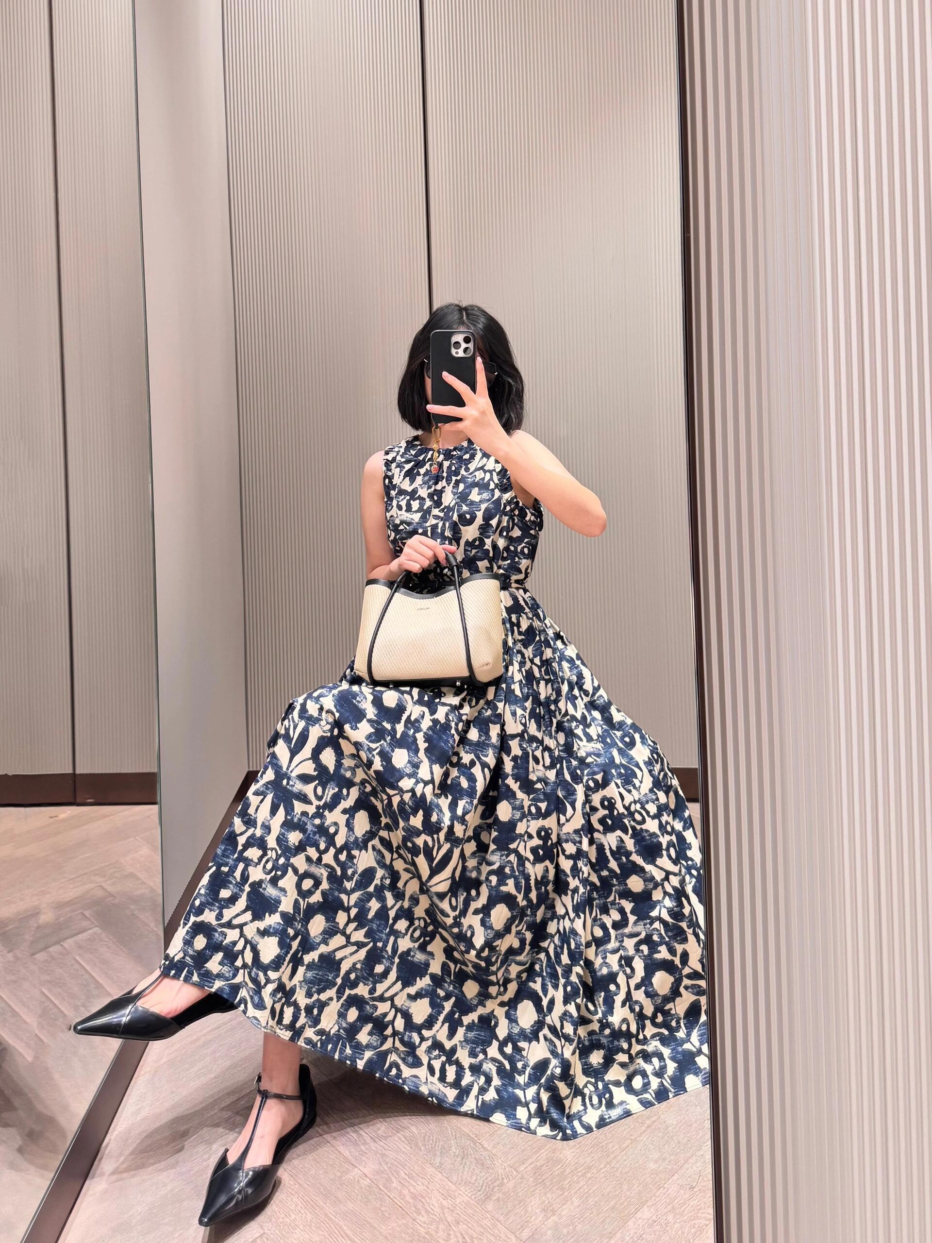 清仓送腰带【【樱西玛ENXIMANE 棉蓝白泼墨连衣裙】走秀款泼墨收腰长裙 无袖法式背心裙 轻奢优雅长裙