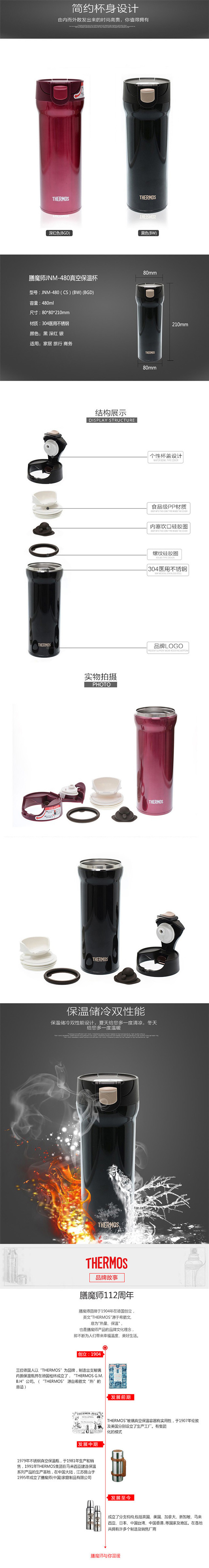 膳魔师不锈钢高真空保温杯JNM-480