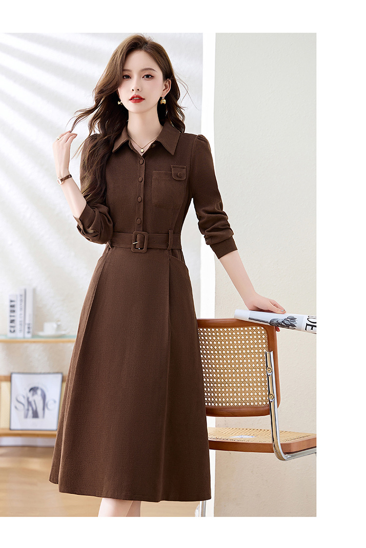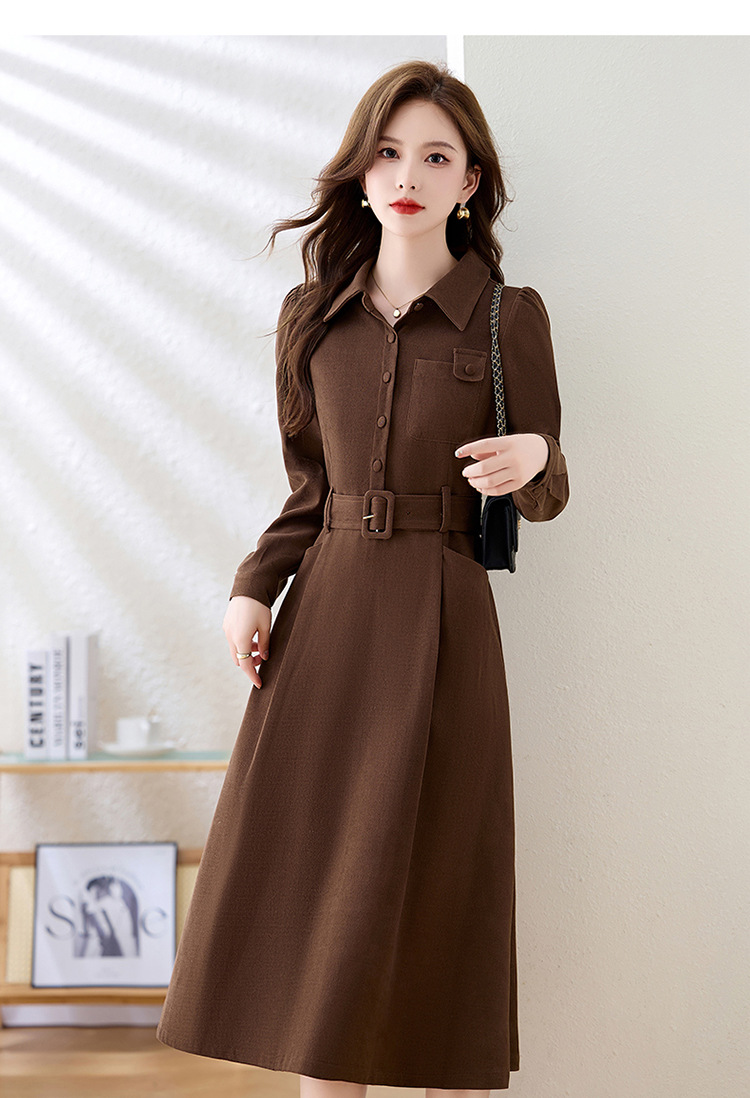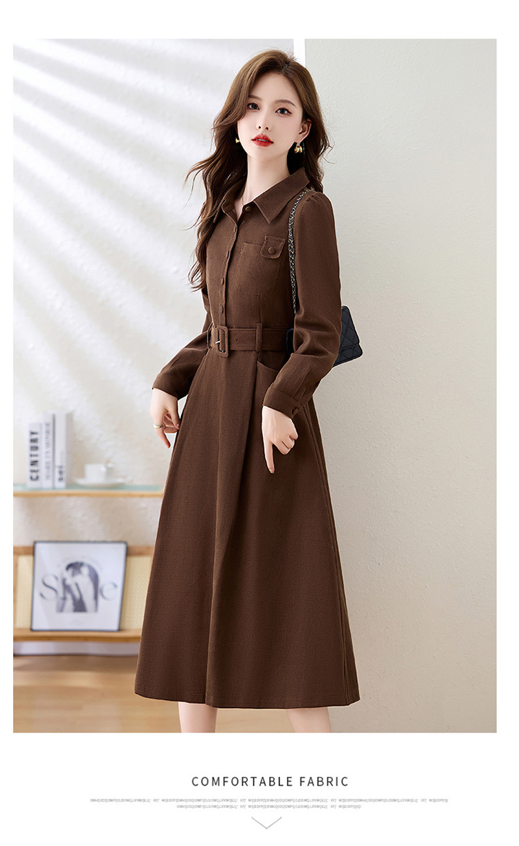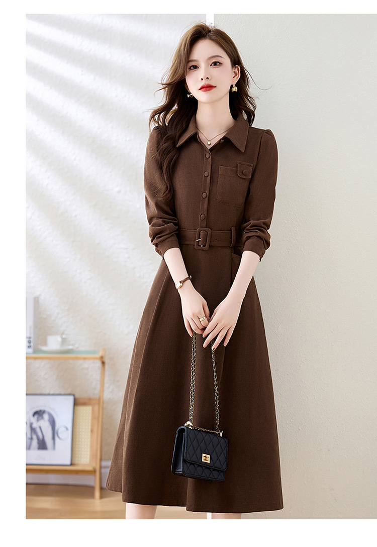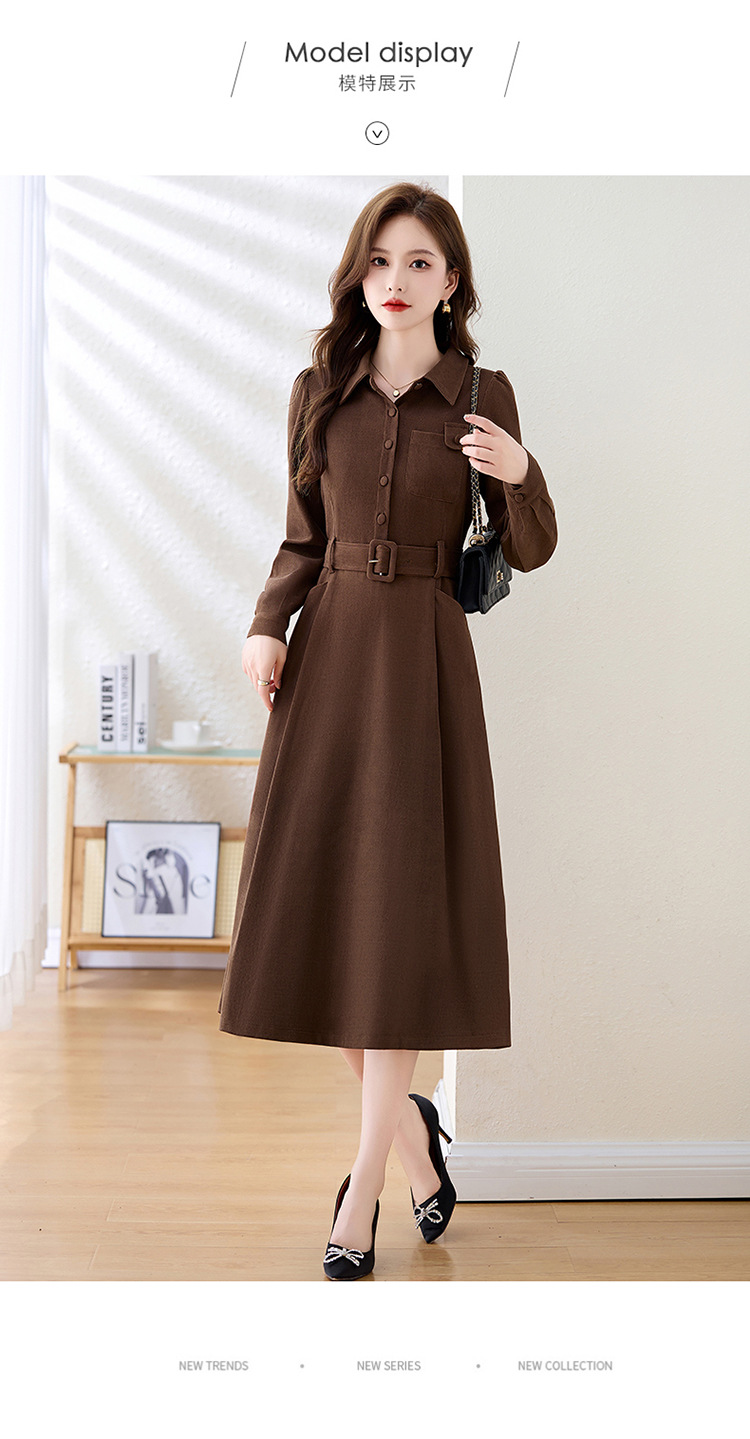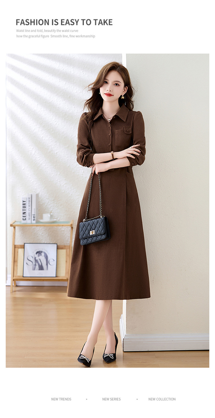 WS185692025年秋季新款气质时尚优雅简约大方美拉德风中长款纯色连衣裙
