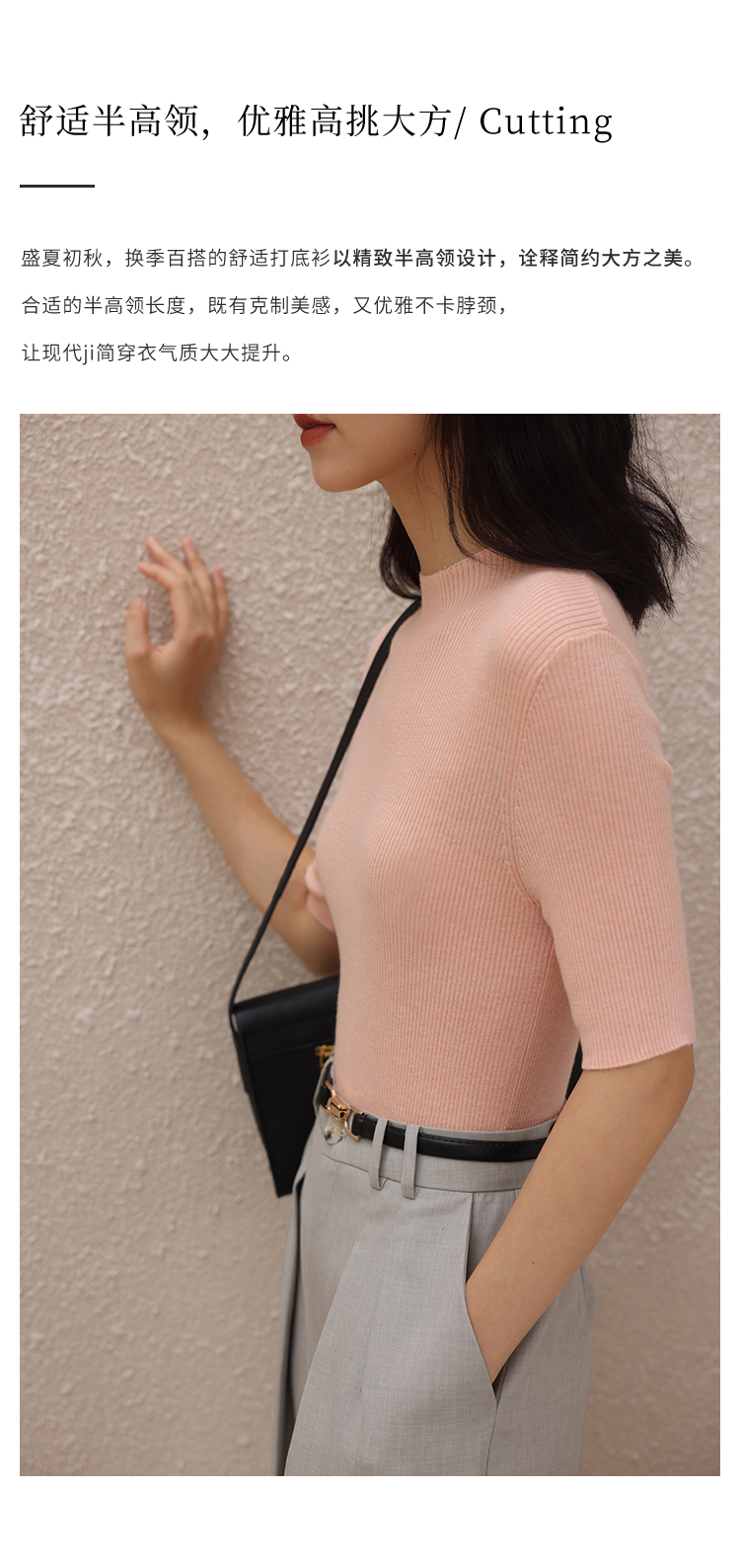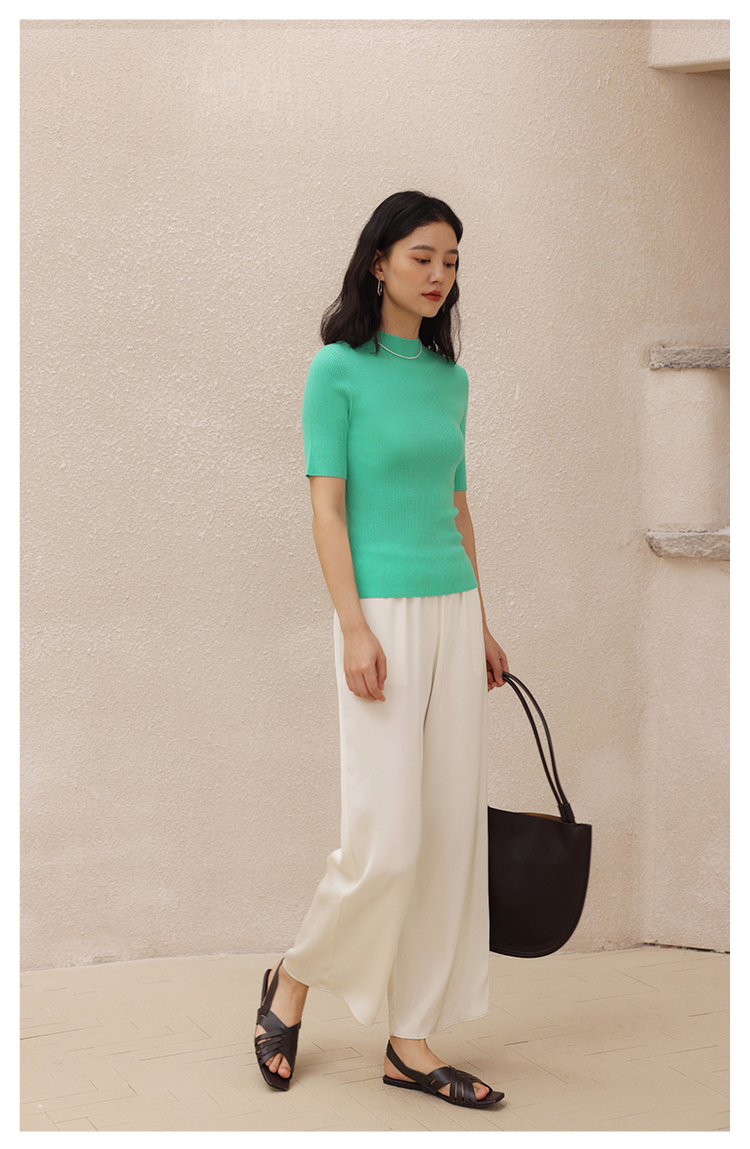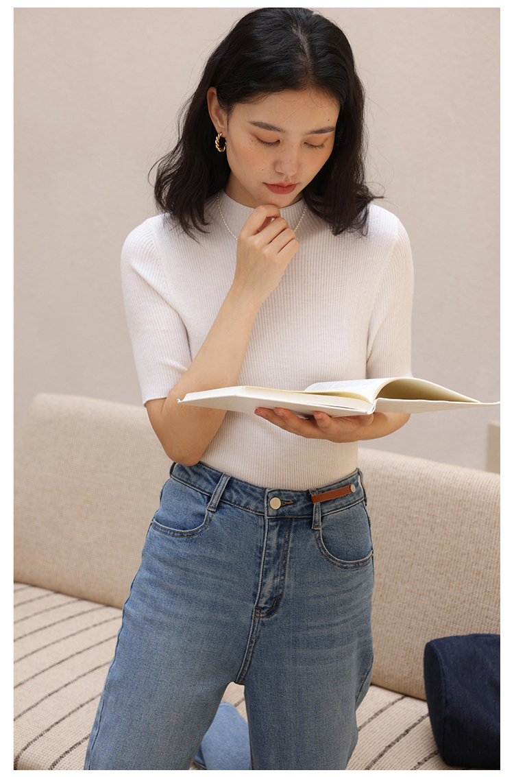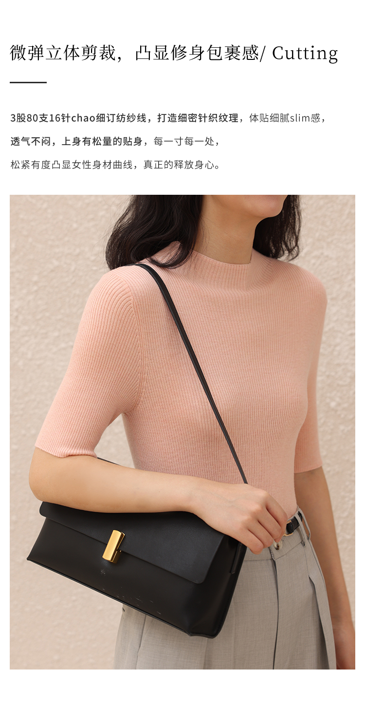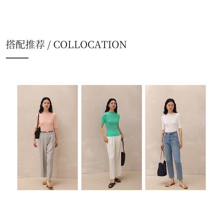 HeyDress半高领针织衫女夏季套头薄款打底衫高端修身中袖t恤上衣