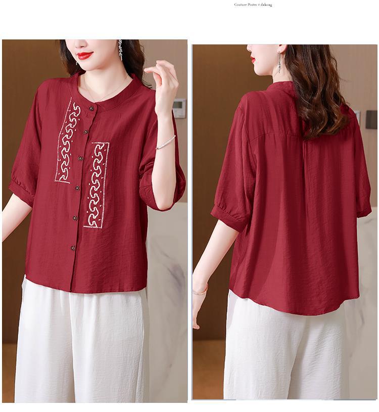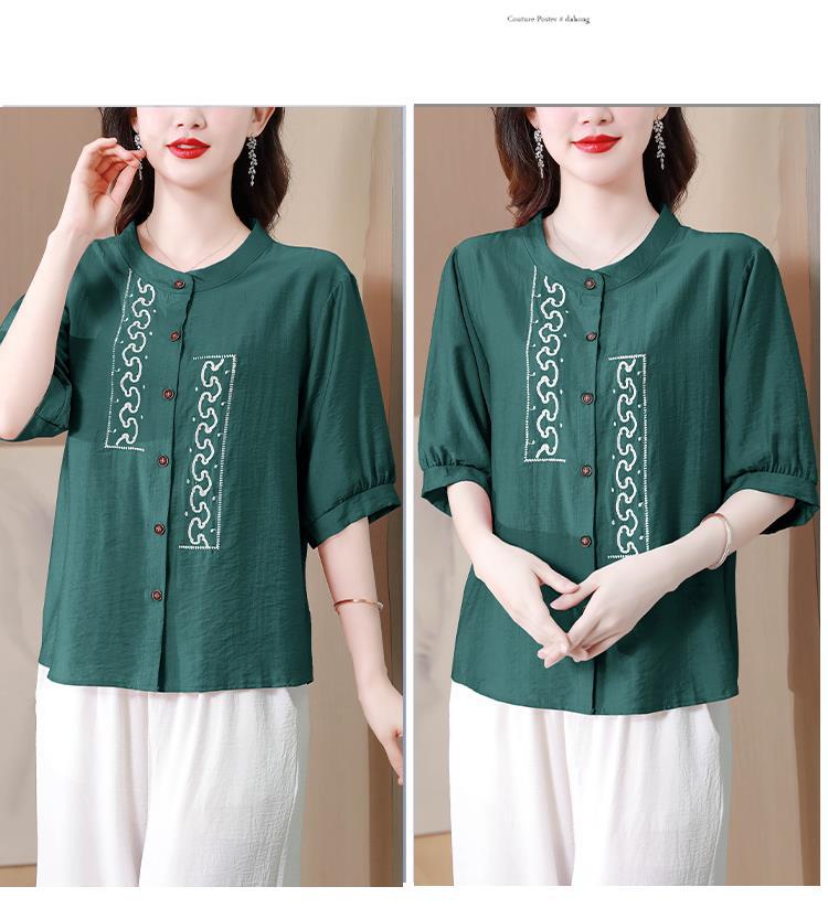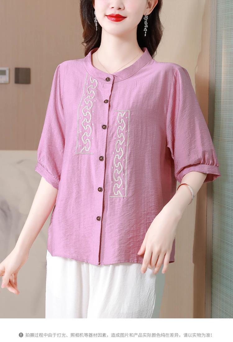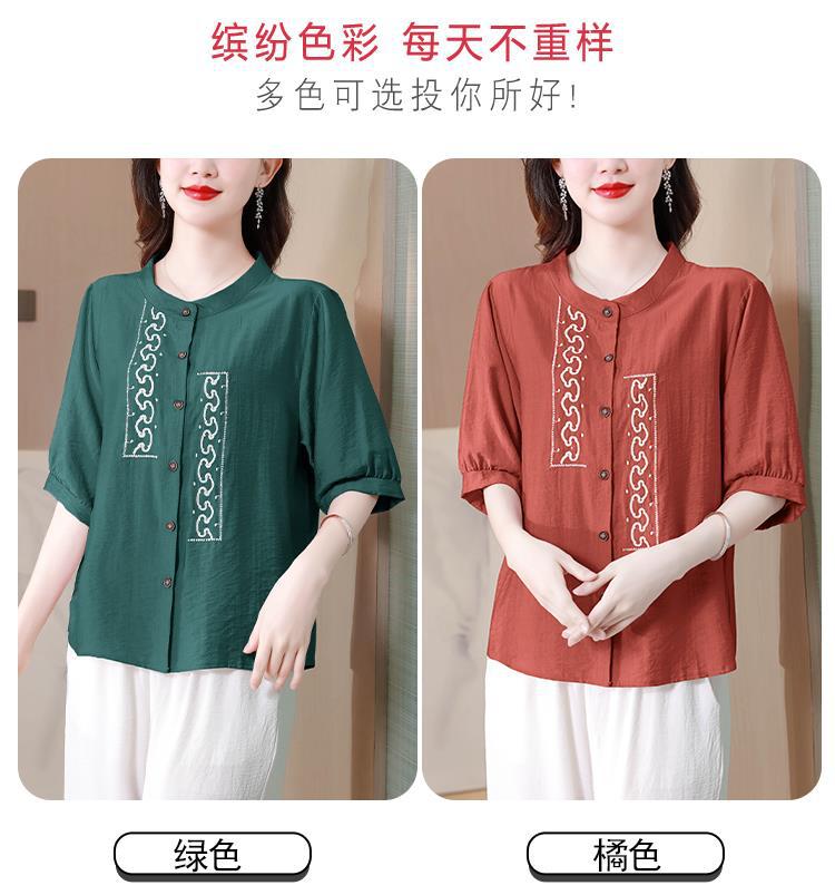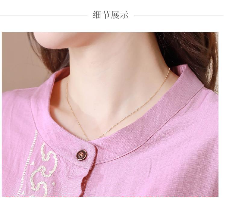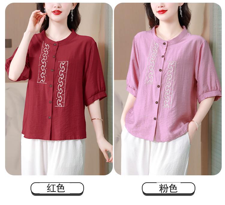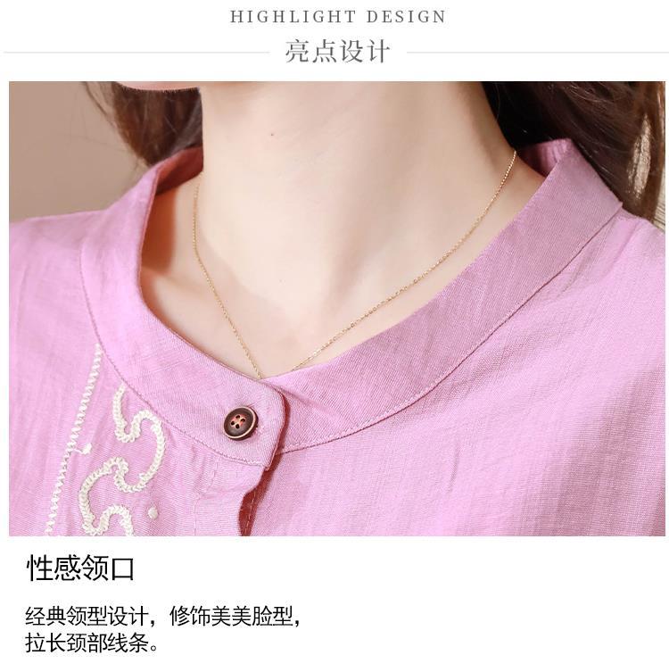 KQL-A83N6287绣花衬衫女装新款短袖棉麻上衣宽松大码休闲女士小衫