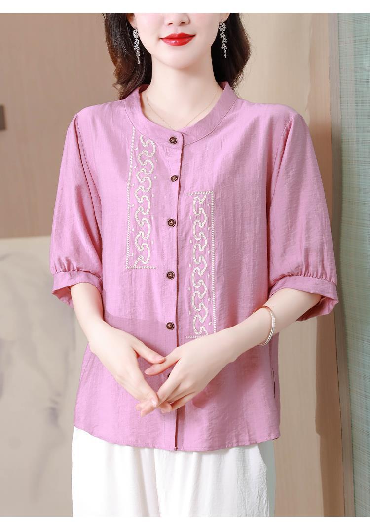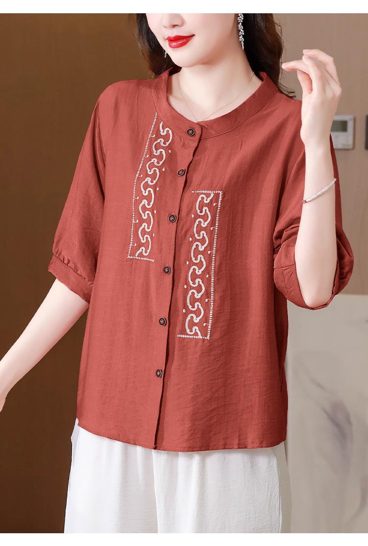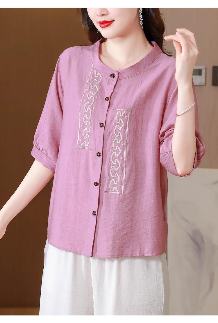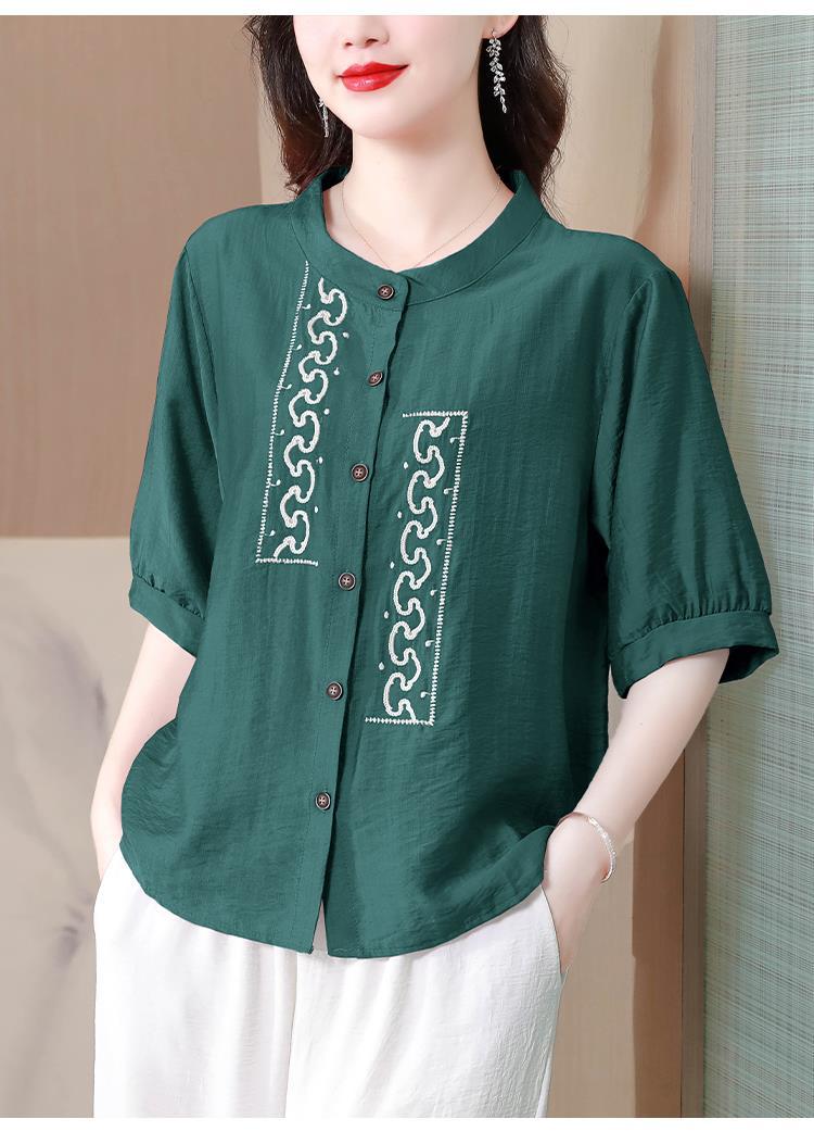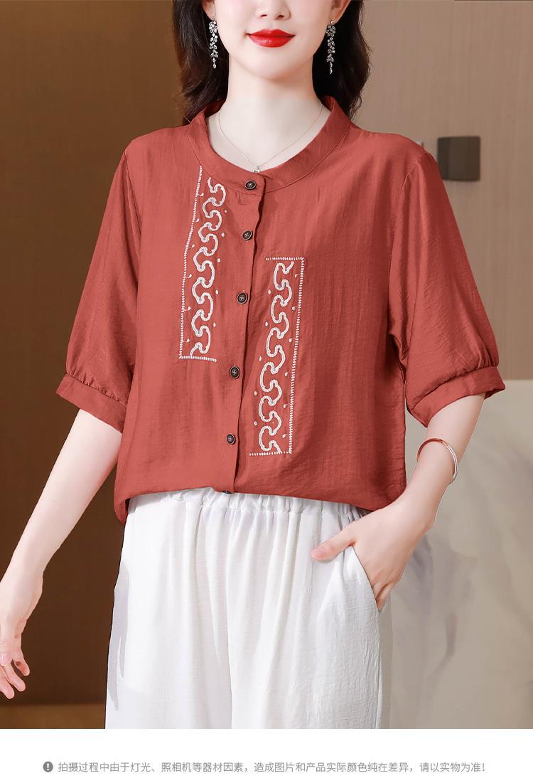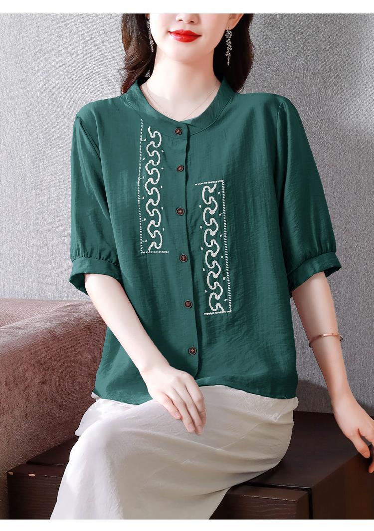 KQL-A83N6287绣花衬衫女装新款短袖棉麻上衣宽松大码休闲女士小衫