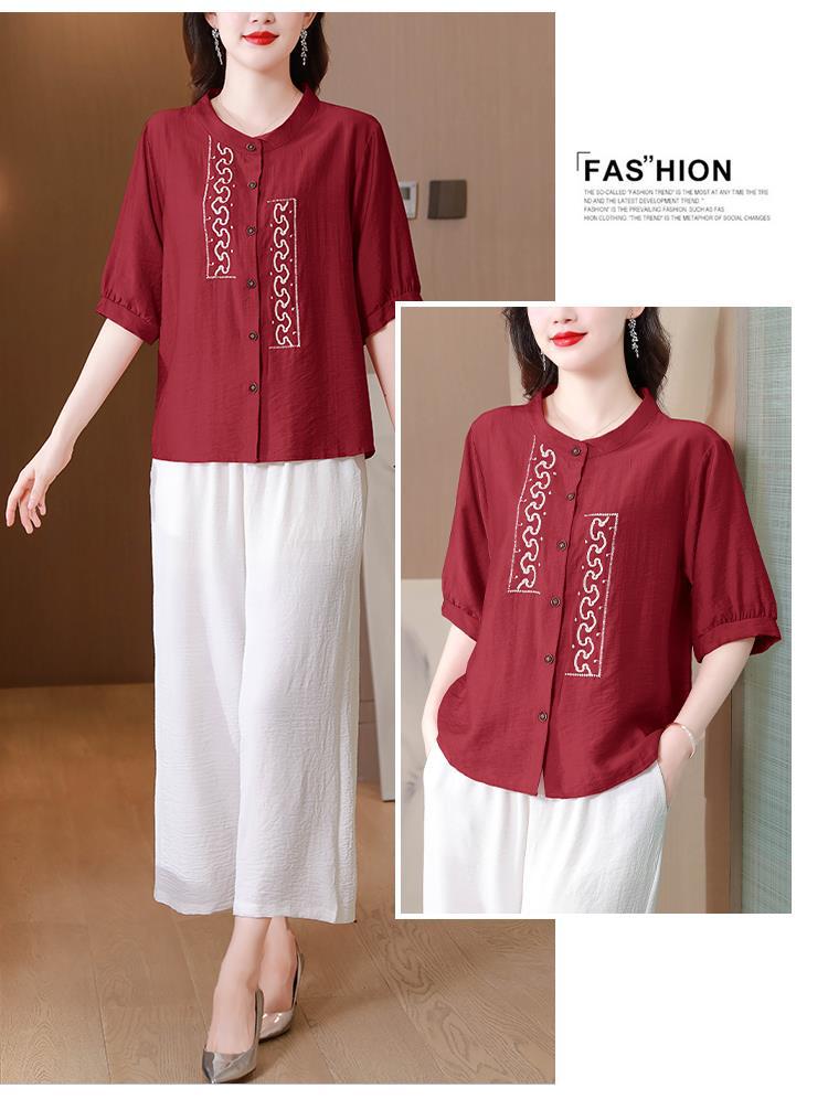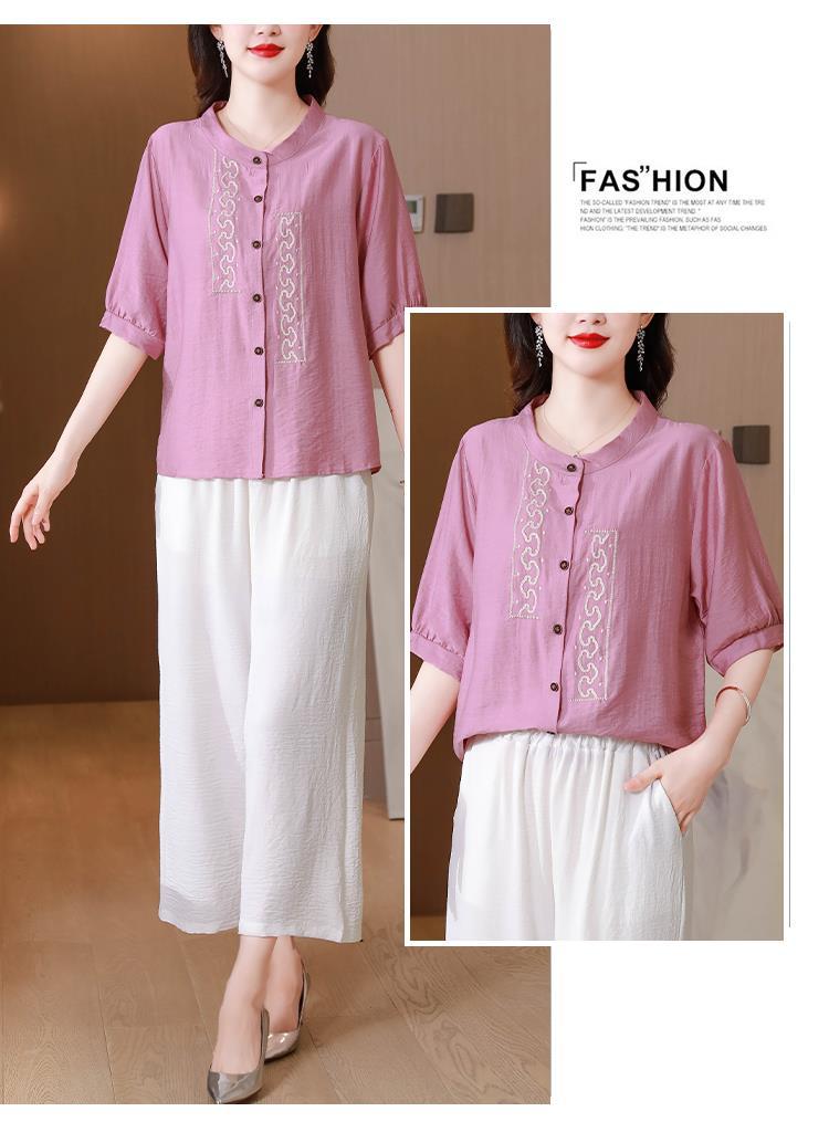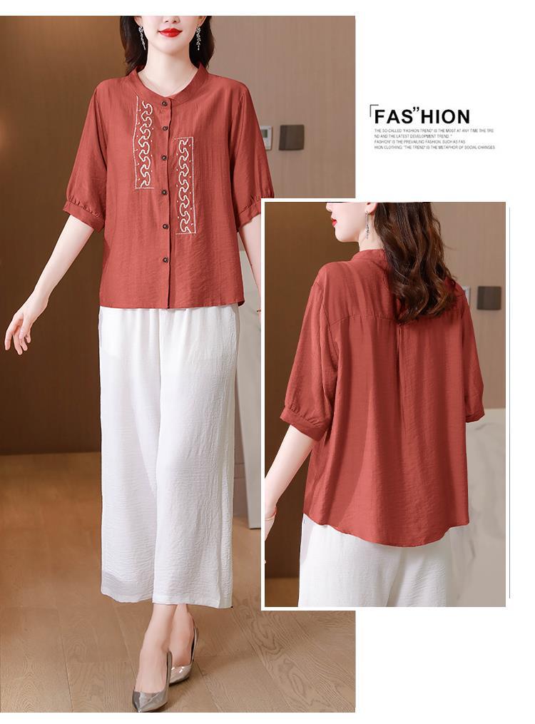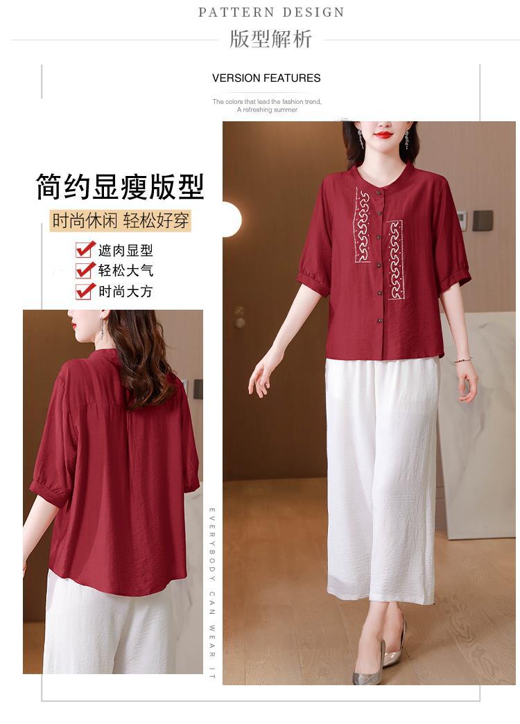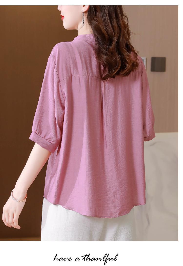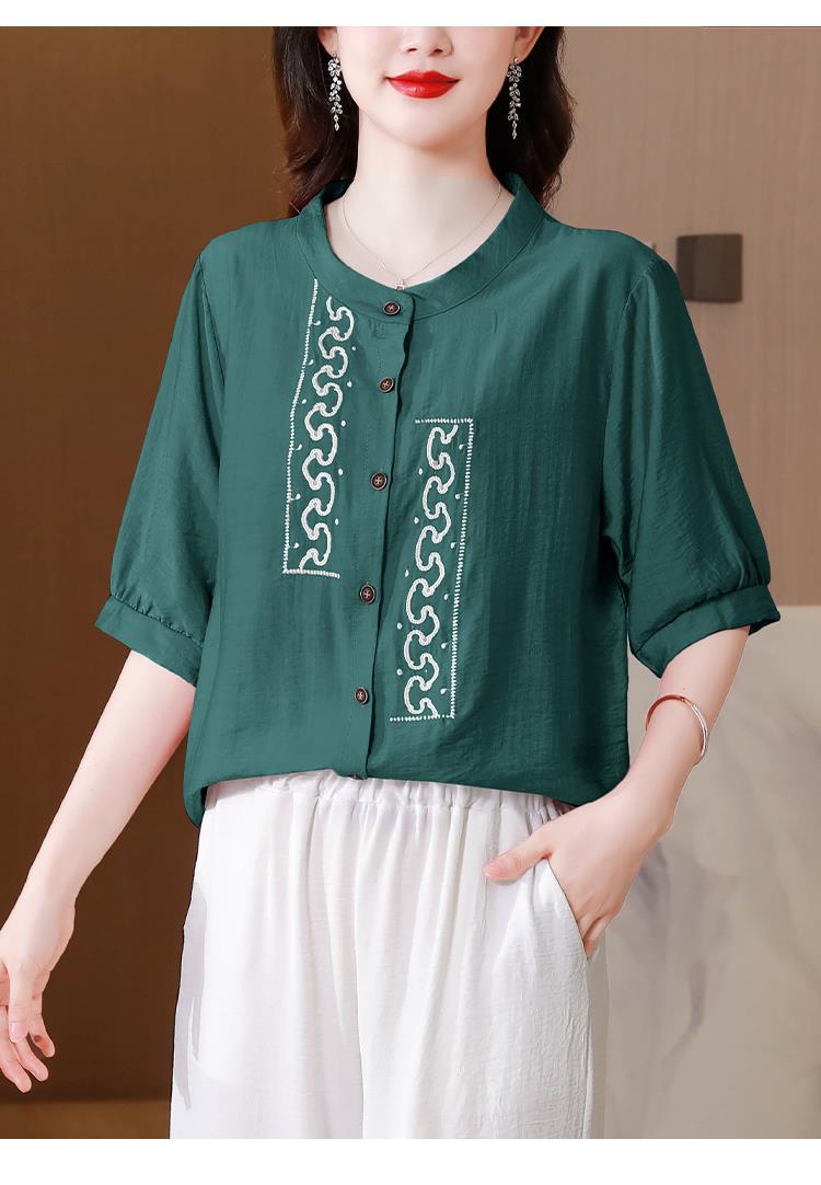 KQL-A83N6287绣花衬衫女装新款短袖棉麻上衣宽松大码休闲女士小衫