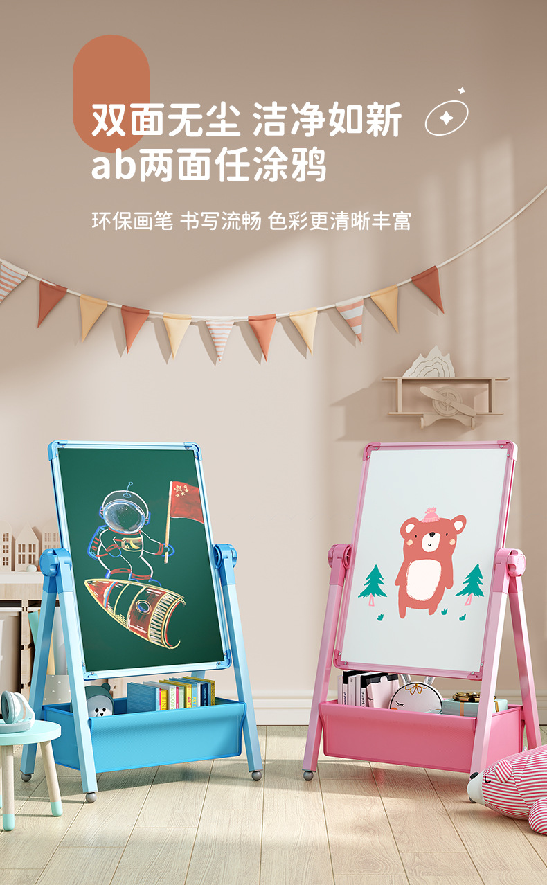 【快乐小画家,绘制梦想~】儿童画板磁性可消除 儿童画板套装 画板可擦写 超大儿童画板磁性画架-QQ