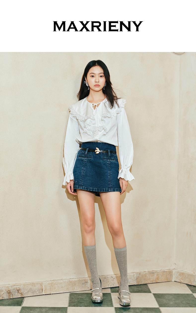 【商场同款-宫廷飞鸽】MAXRIENY复古宫廷刺绣镂空上衣24春(货号:MC85TP008)