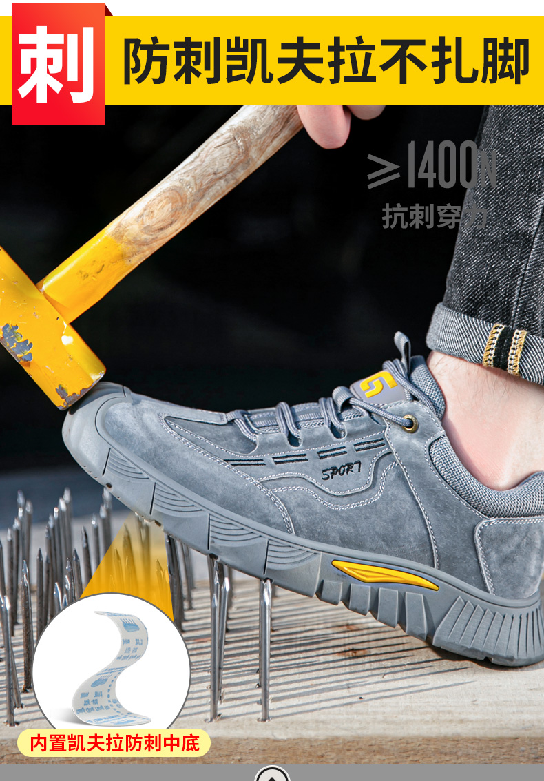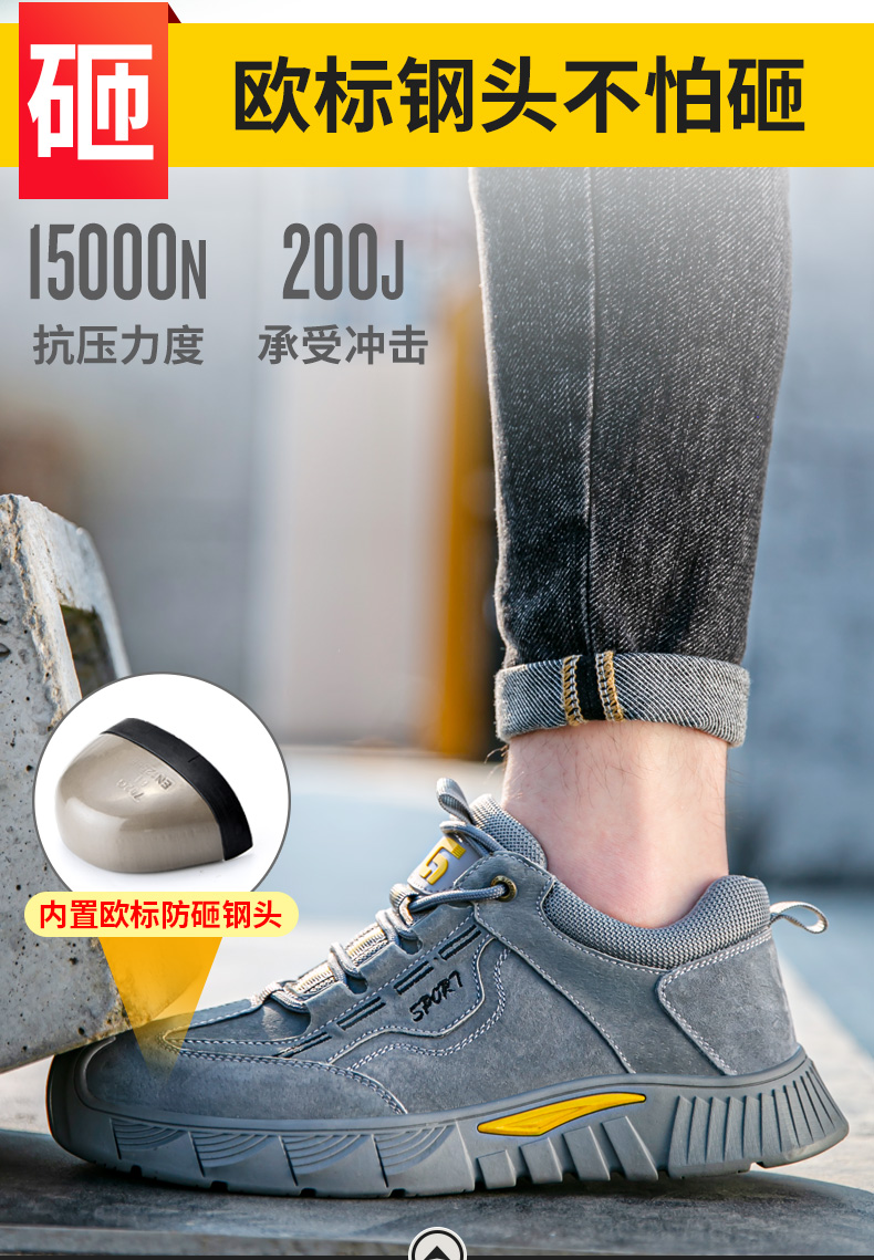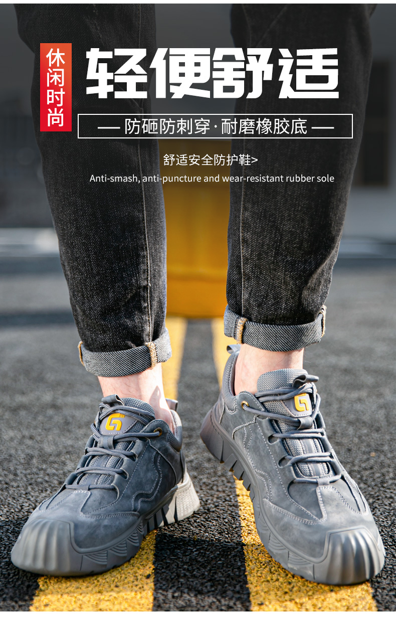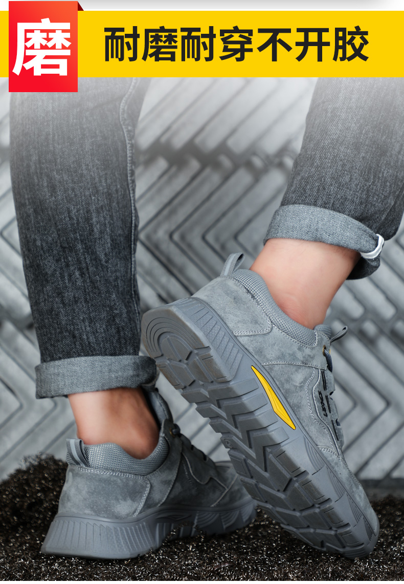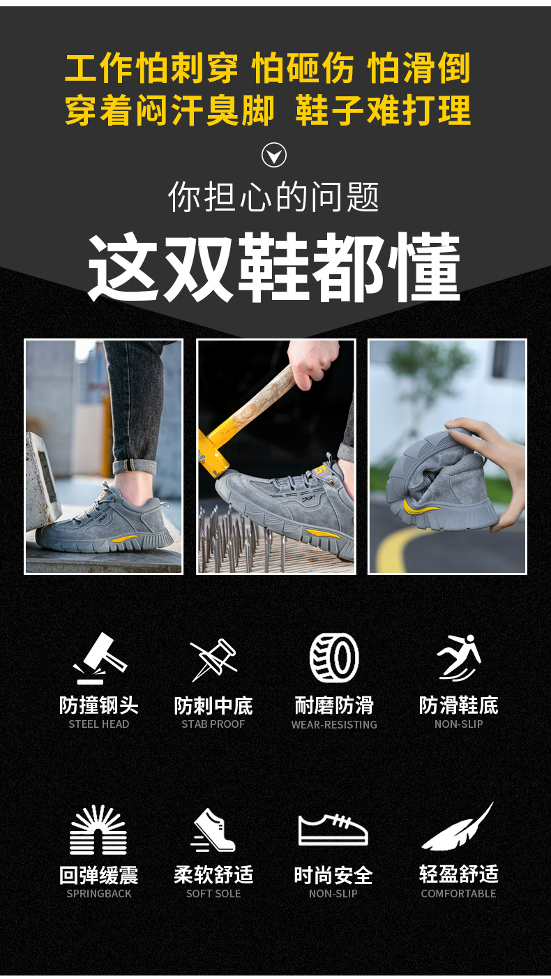 新款劳保鞋男防砸防刺钢包头反绒皮四季款耐磨橡胶底舒适透气安全鞋工作鞋