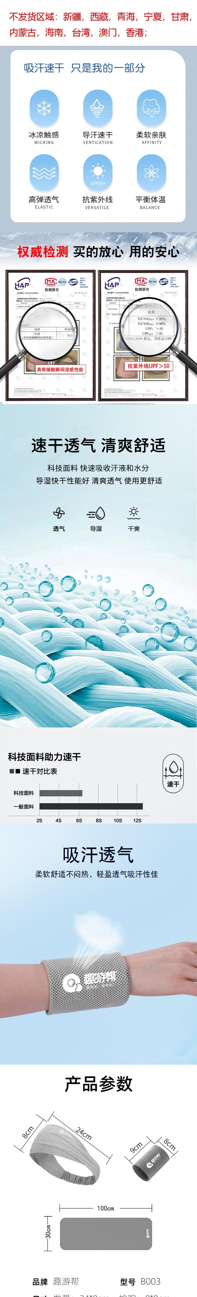 趣游帮 腕巾发带速干冰凉巾运动冷感3件套 B003