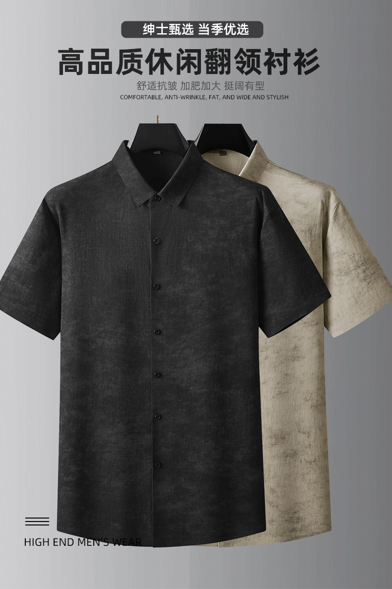 【亚麻】【DDA】大依优型大码短袖衬衫翻领衬衣商务休闲透气半袖夏季上衣男士