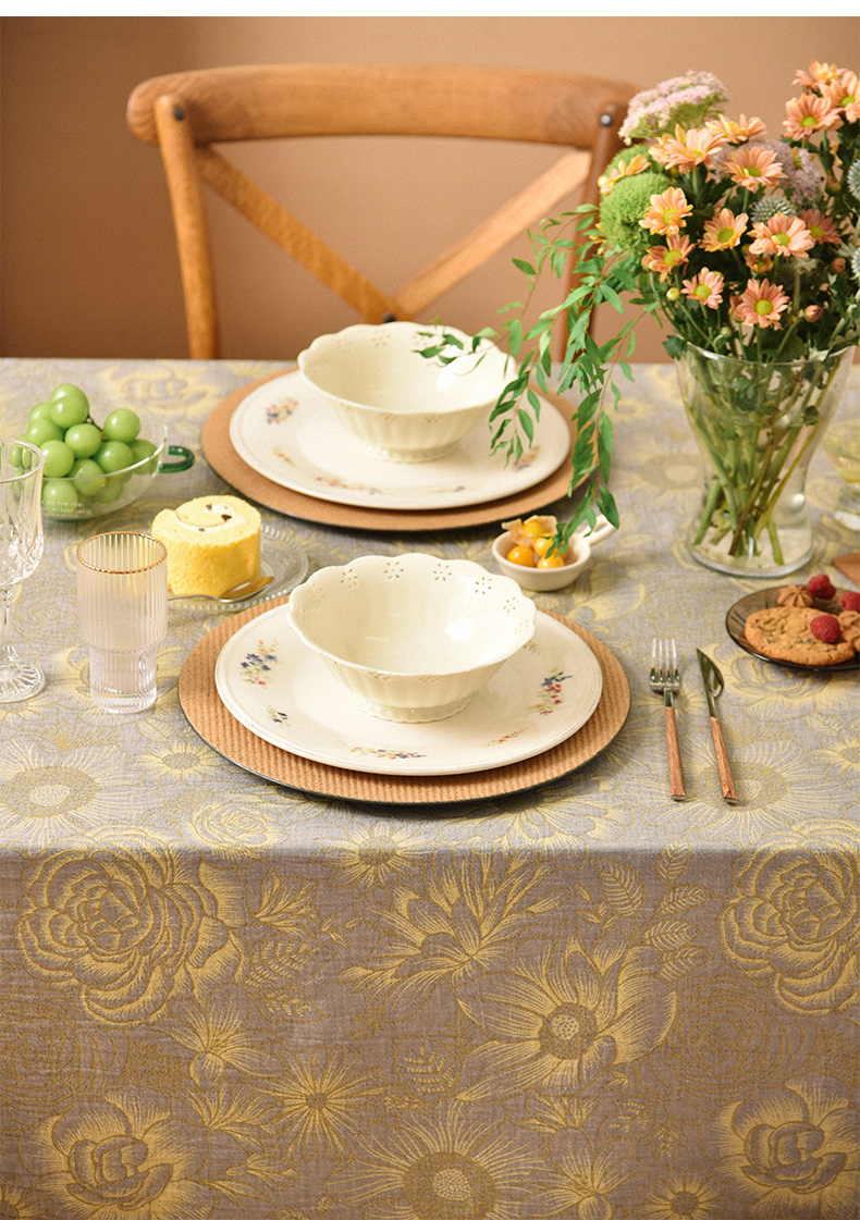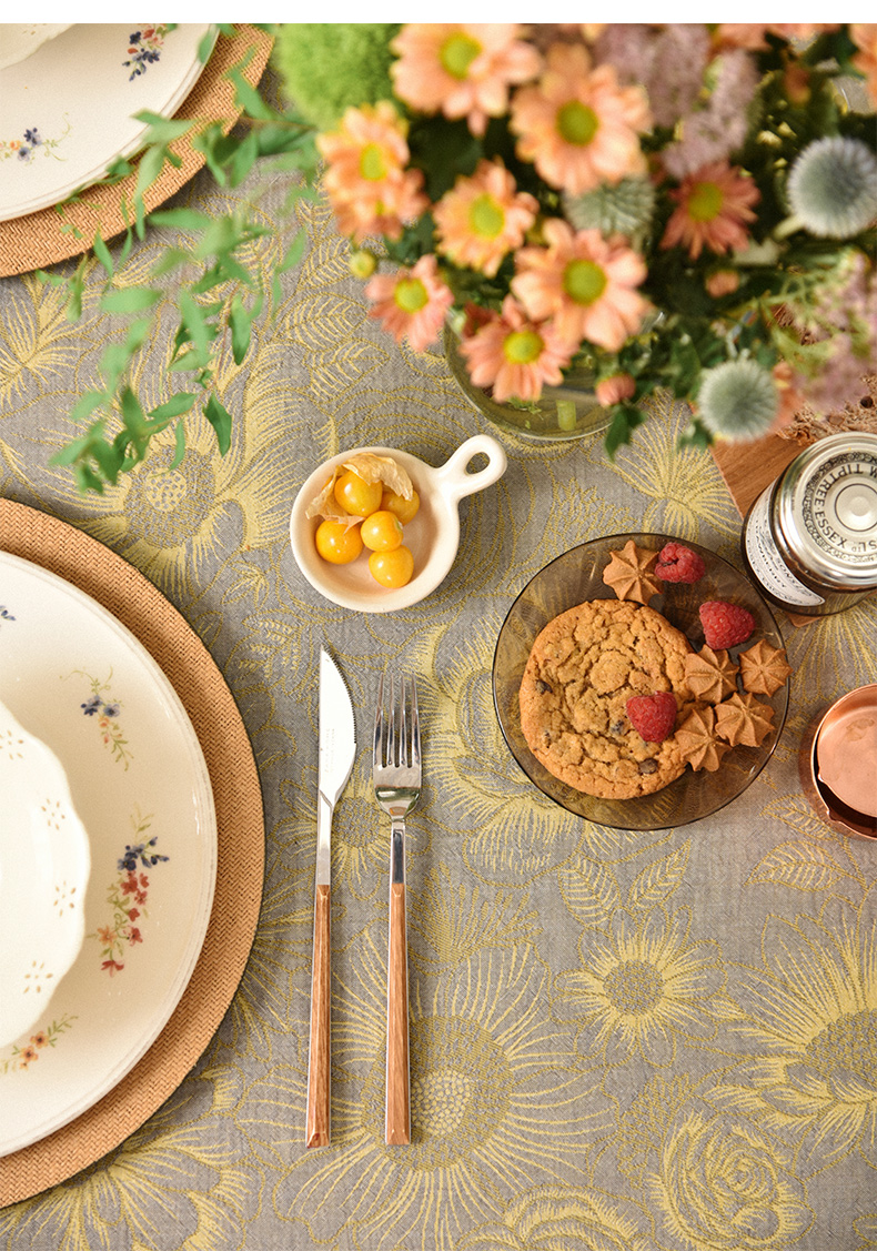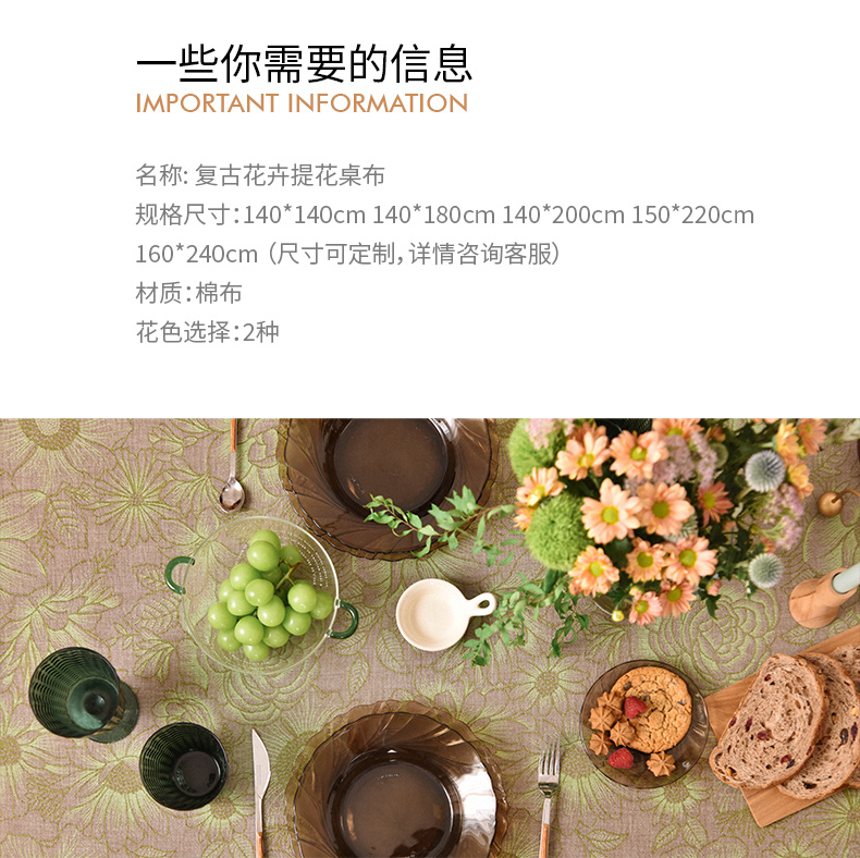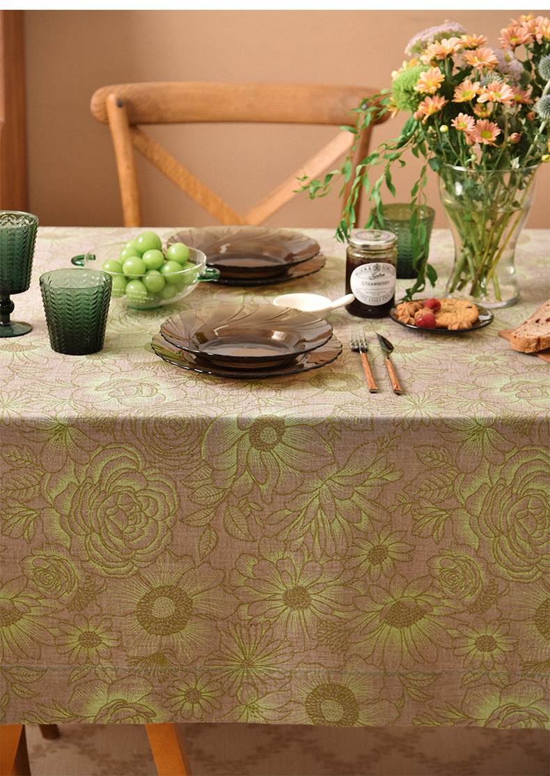 复古花卉提花桌布客厅电视柜布艺餐桌布