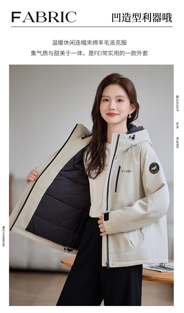 丁摩 棉服女款冬季加厚保暖羊毛派克服超好看夹棉冲锋衣外套潮5ZF-6696