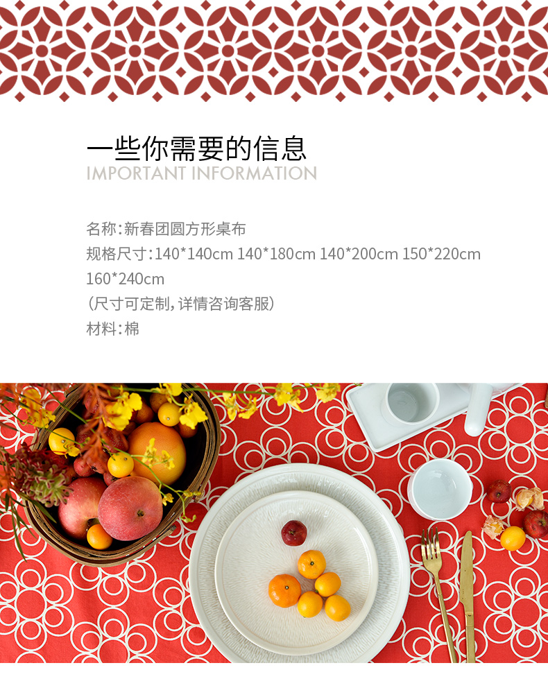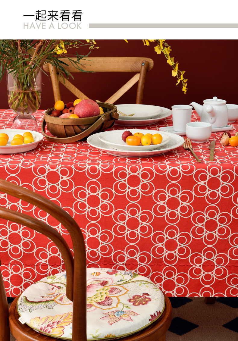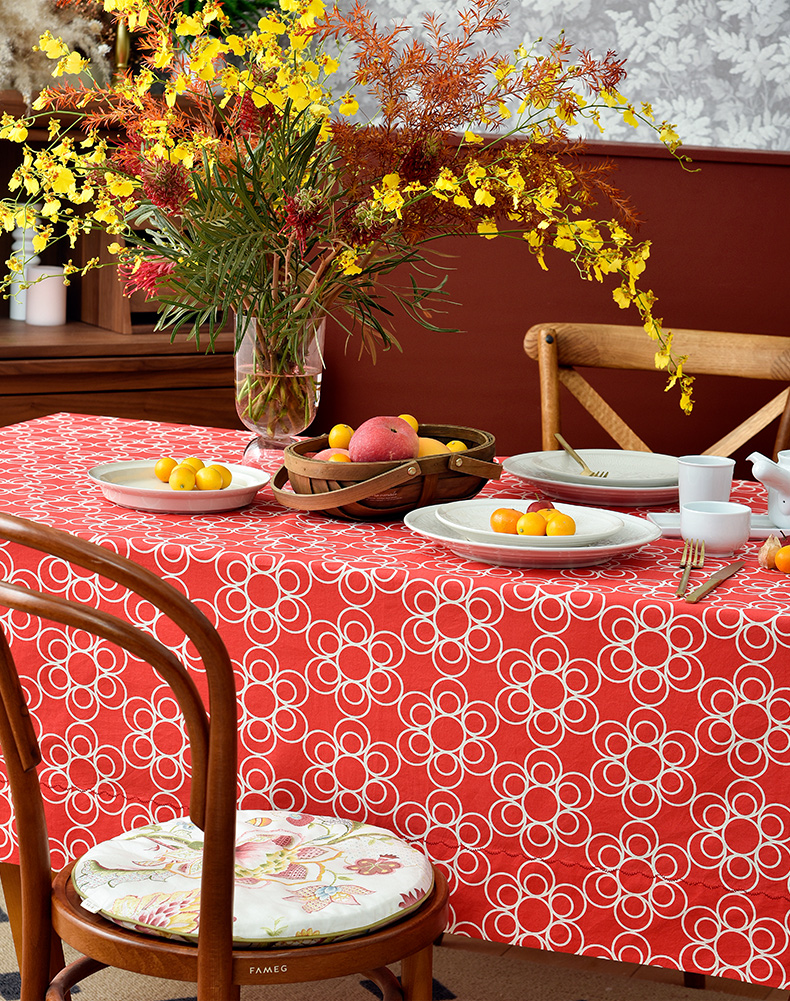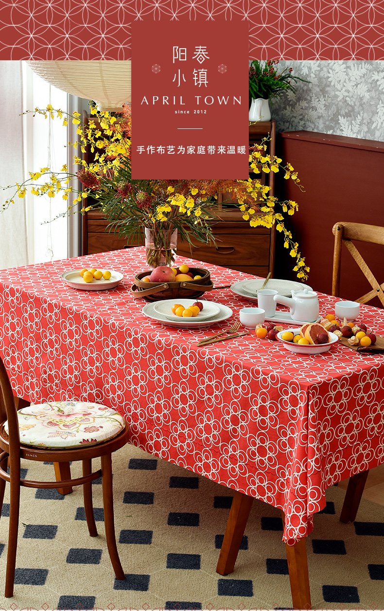 新春团圆新中式桌布简约红色餐桌布