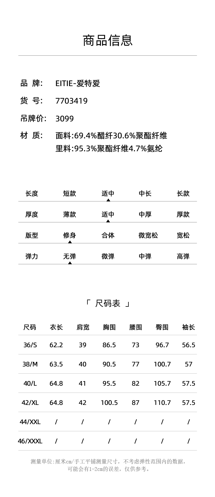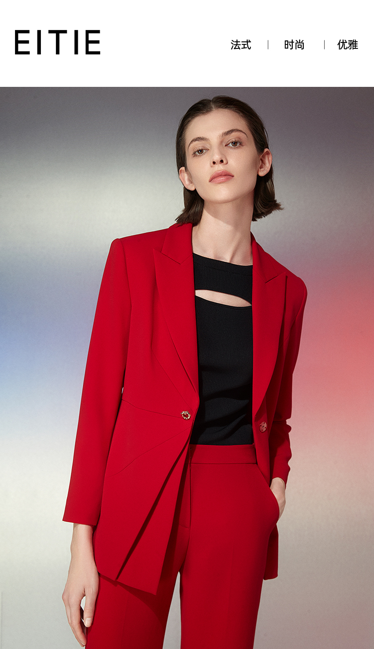 EITIE爱特爱春季新款时尚百搭显瘦一粒扣外套女7703419