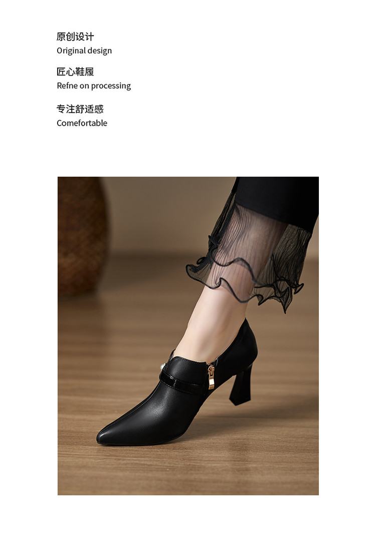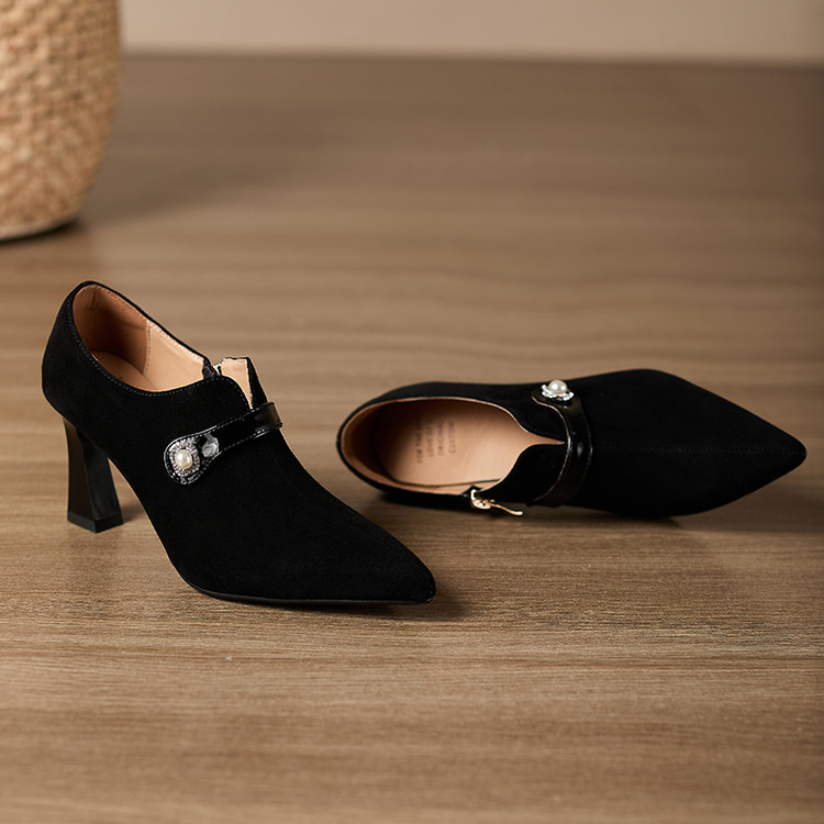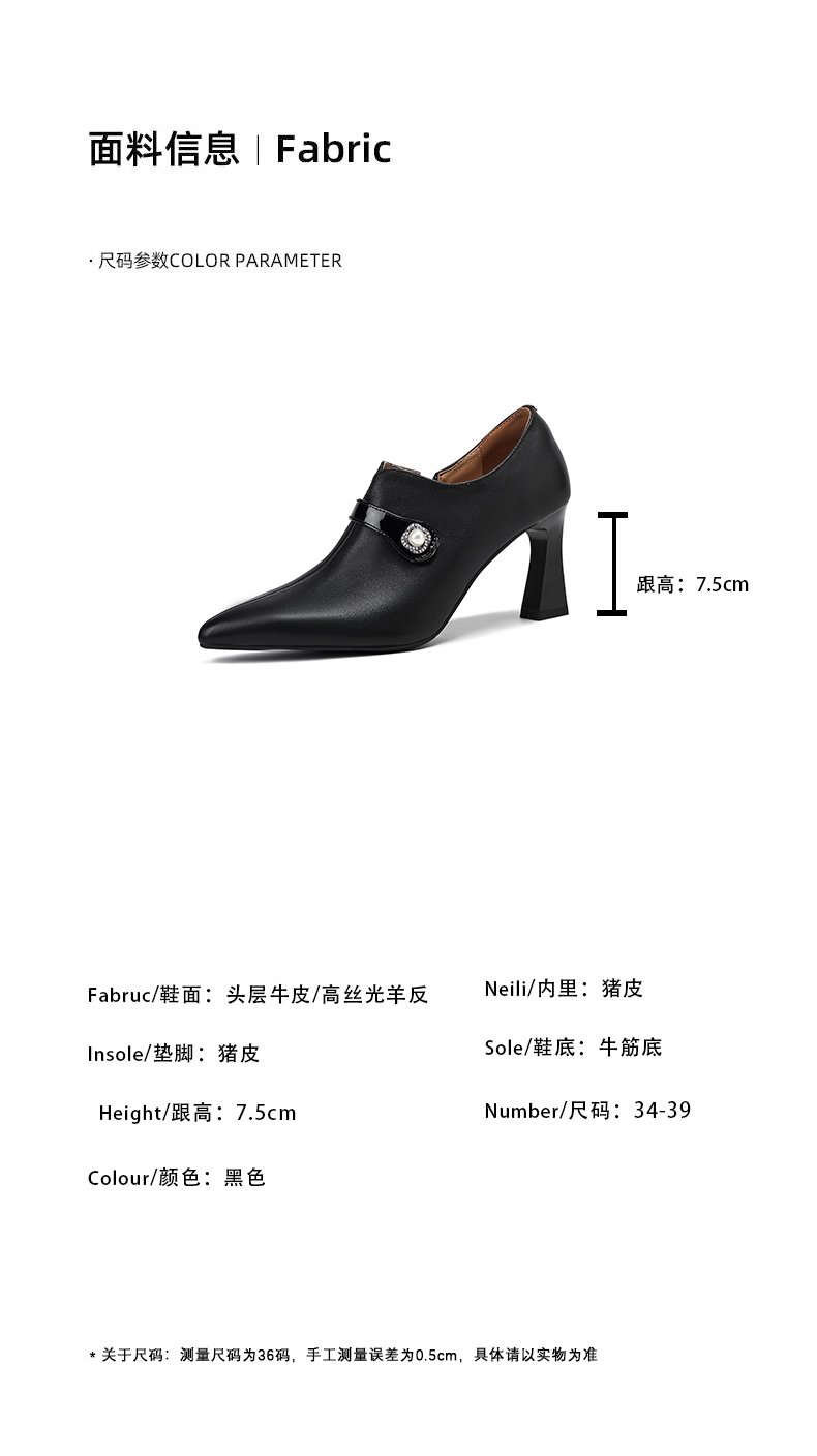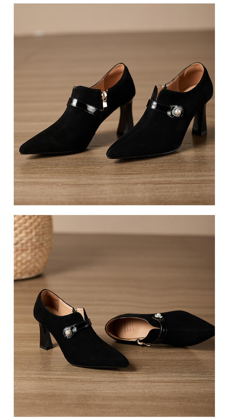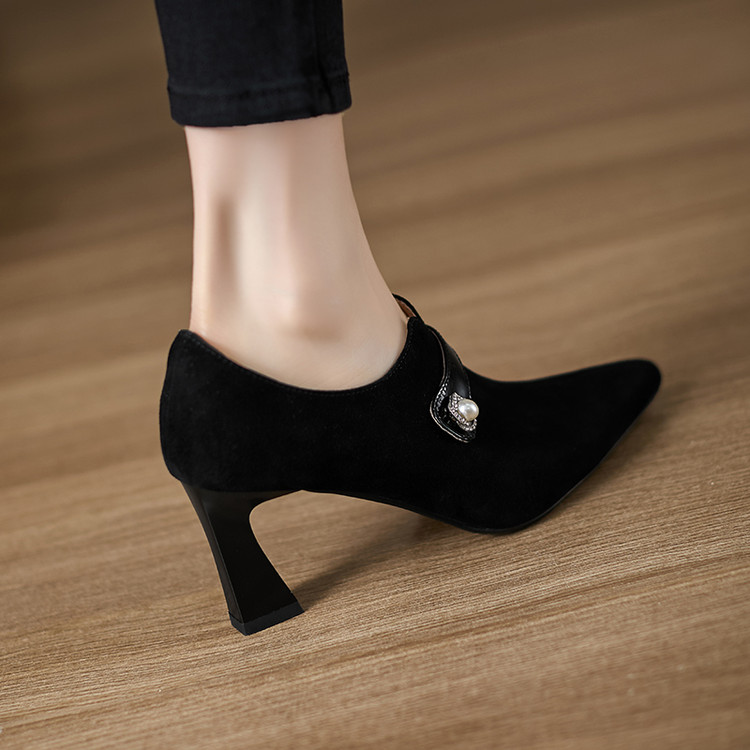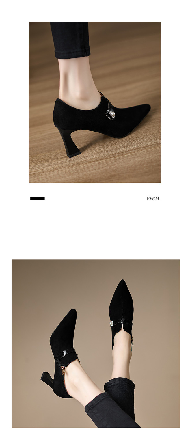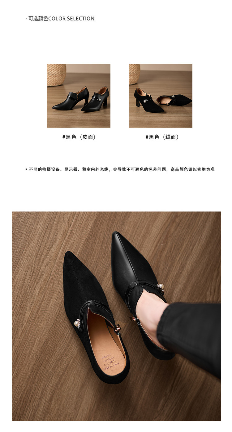 【预售5天】磨砂软皮高跟鞋女粗跟真皮百搭通勤风显瘦尖头小皮鞋深口单鞋女DS&1650-1