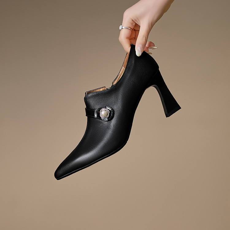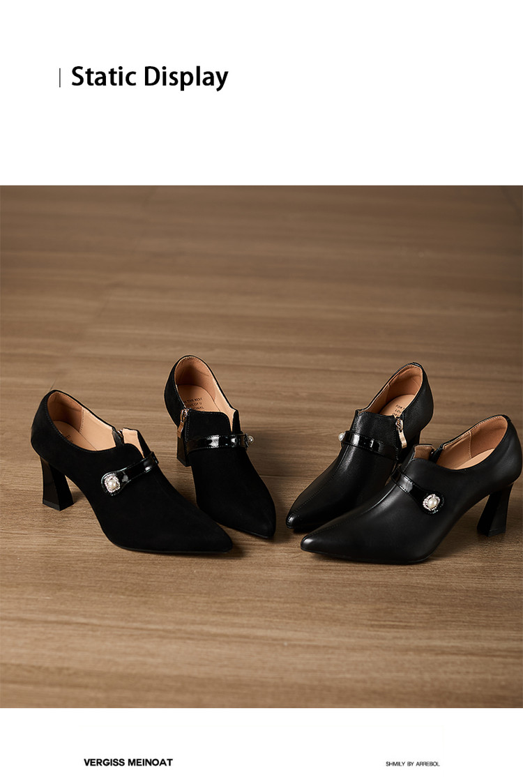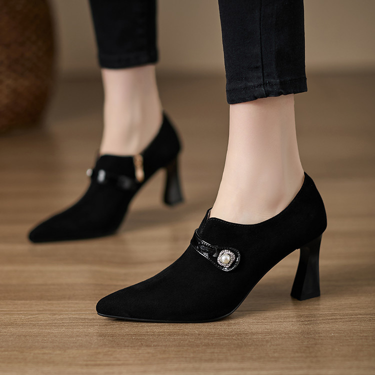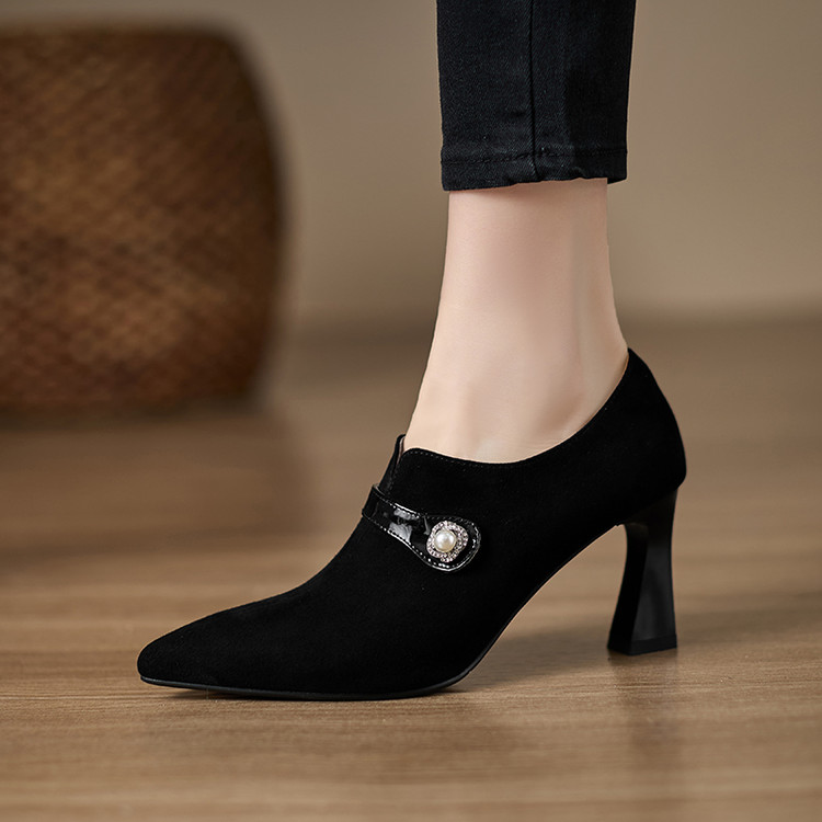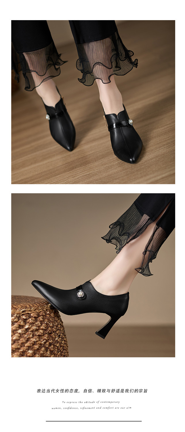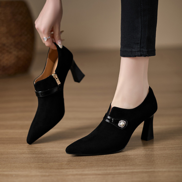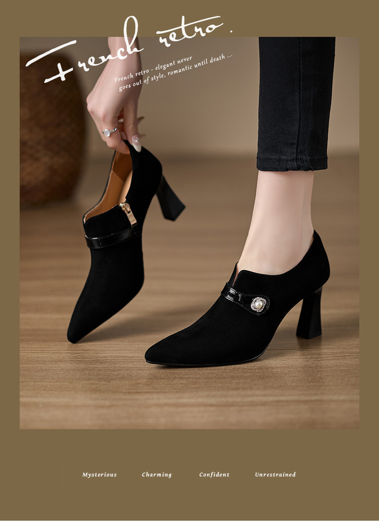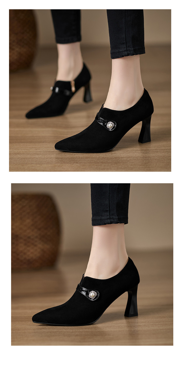 【预售5天】磨砂软皮高跟鞋女粗跟真皮百搭通勤风显瘦尖头小皮鞋深口单鞋女DS&1650-1