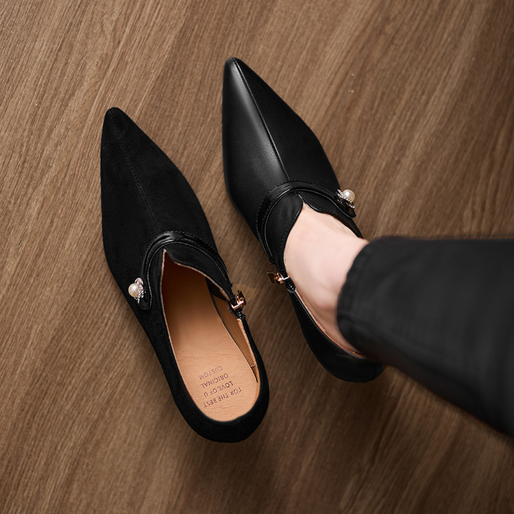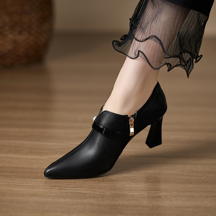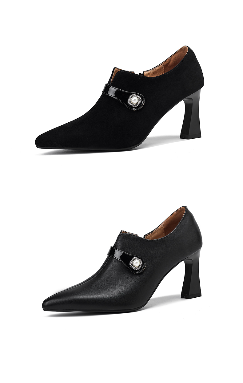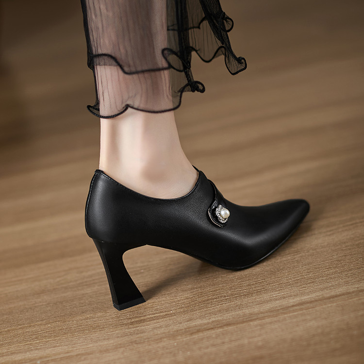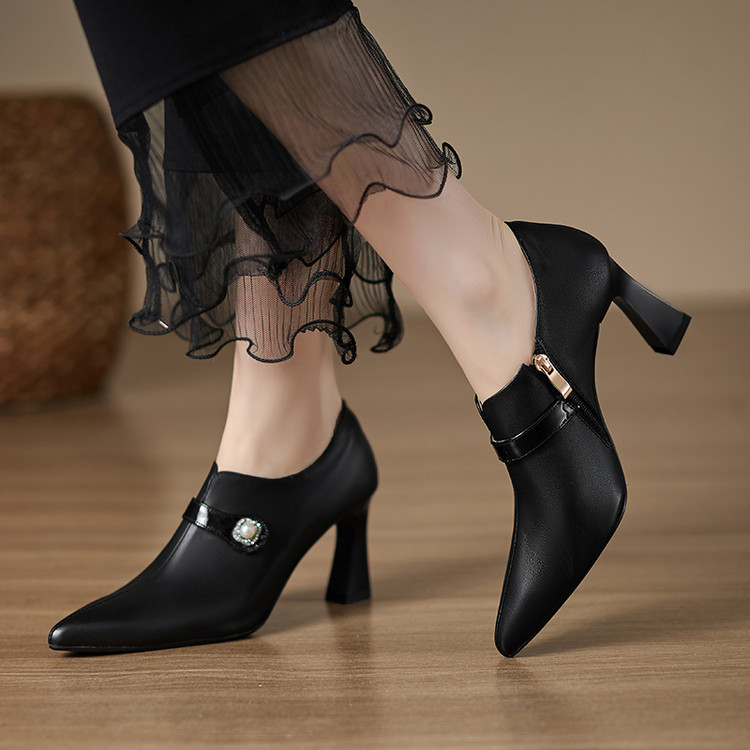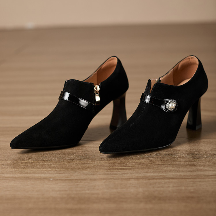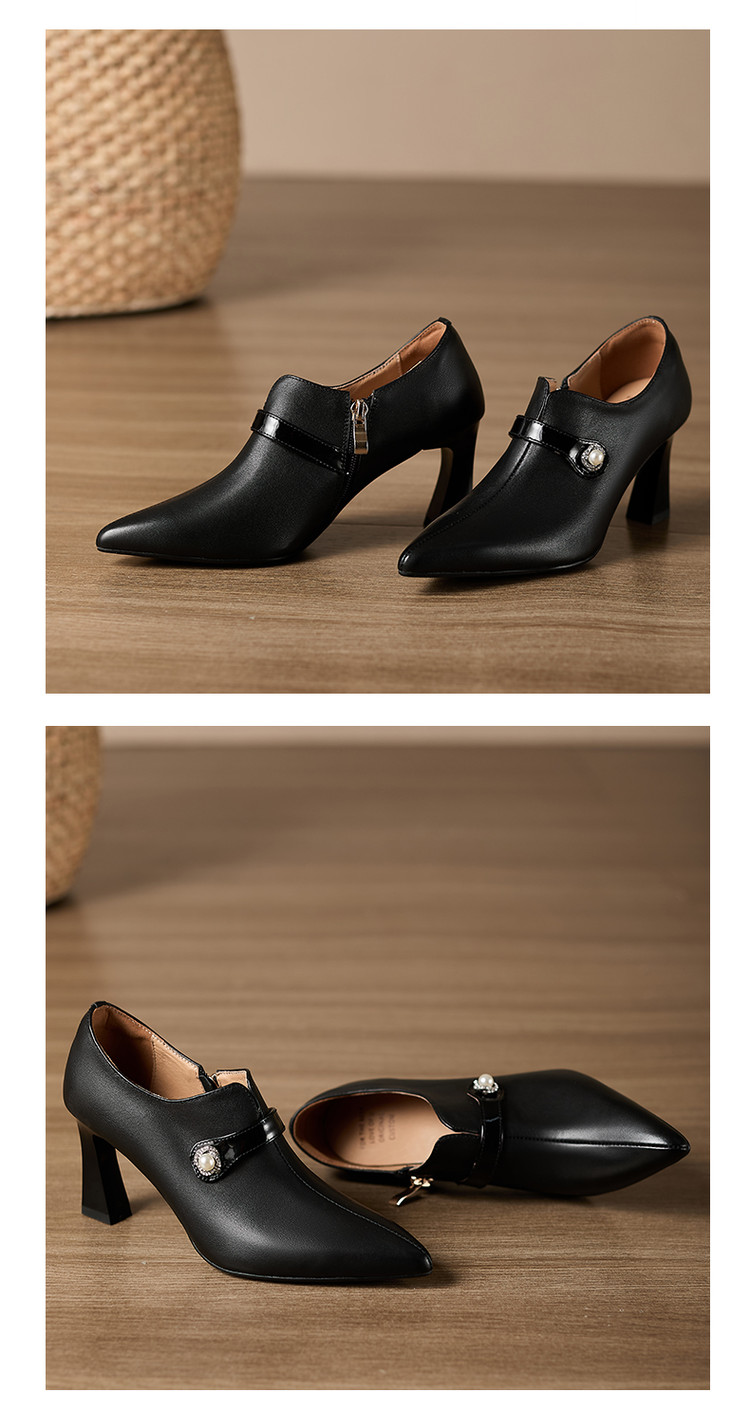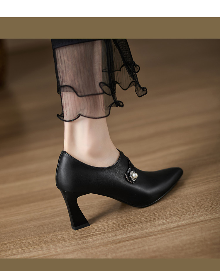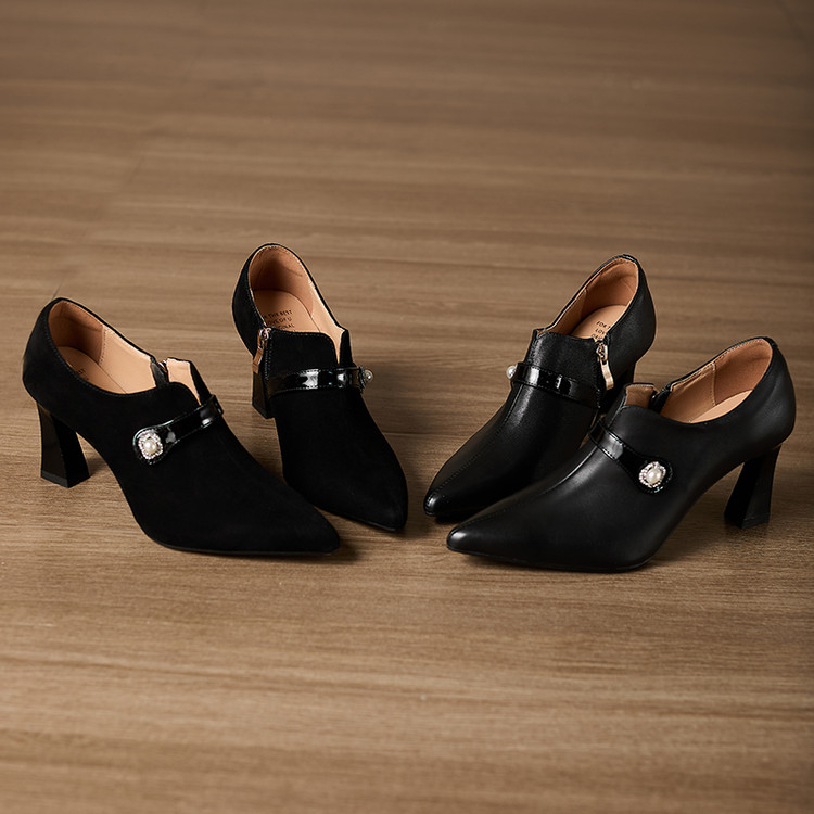 【预售5天】磨砂软皮高跟鞋女粗跟真皮百搭通勤风显瘦尖头小皮鞋深口单鞋女DS&1650-1