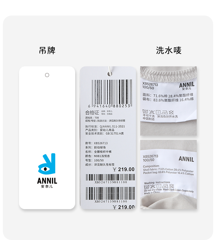 男童全腰梭织中裤夏季新款安奈儿童装实体店同款XB526713