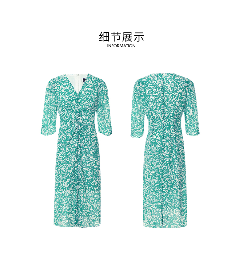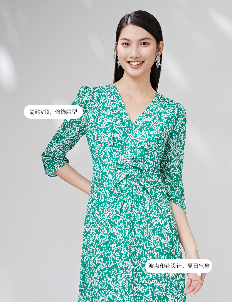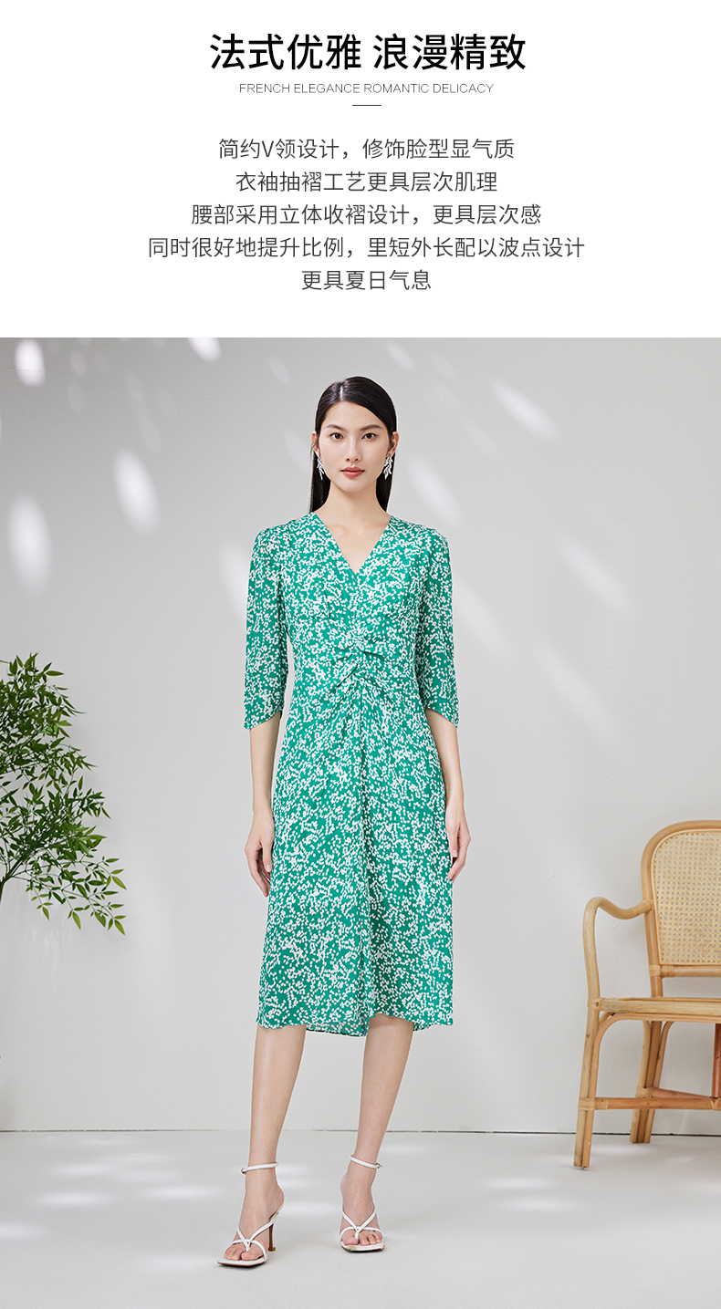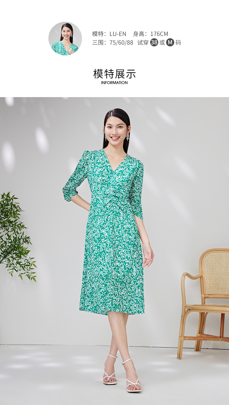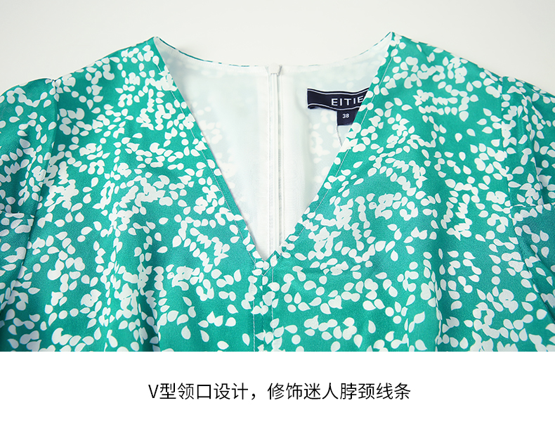 EITIE爱特爱夏季新款修身显瘦优雅V领印花连衣裙7007760