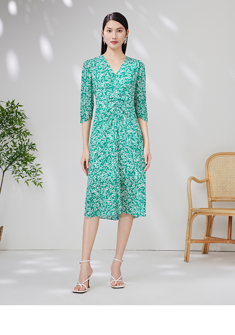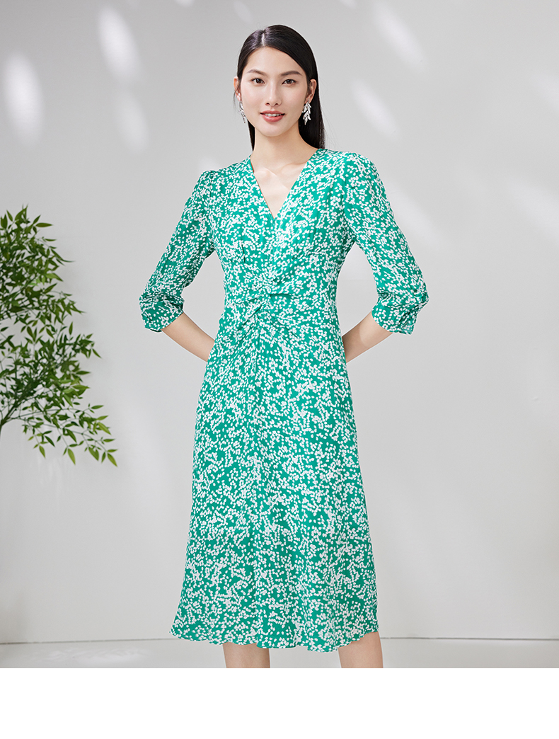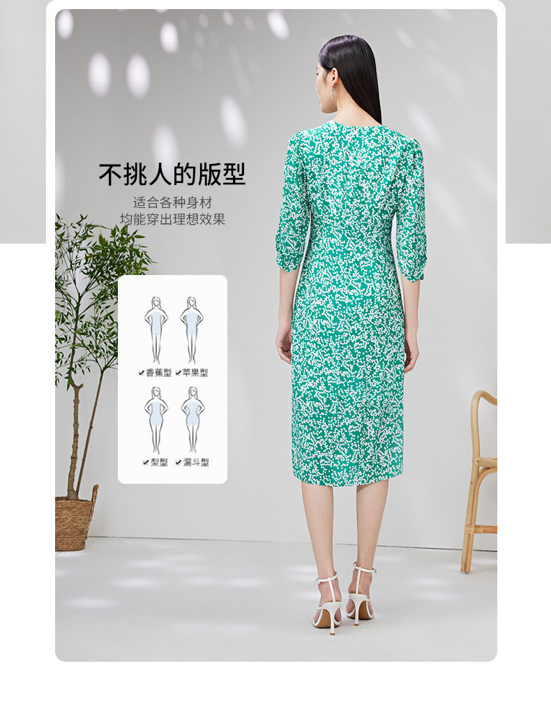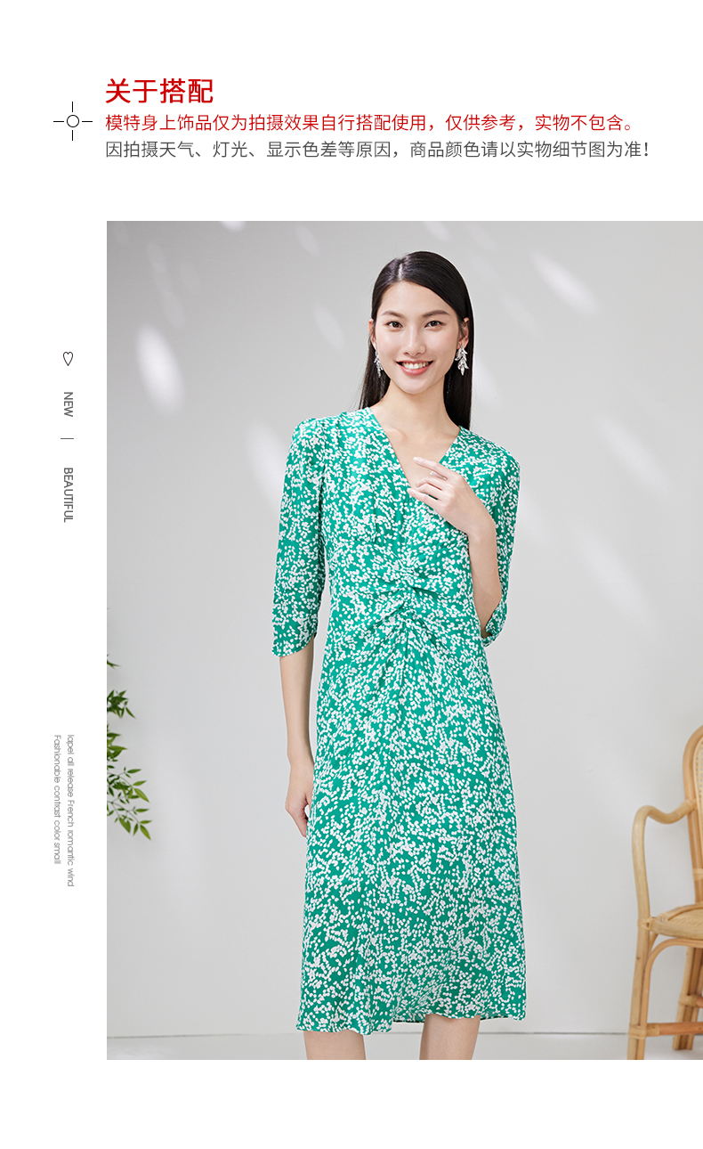 EITIE爱特爱夏季新款修身显瘦优雅V领印花连衣裙7007760