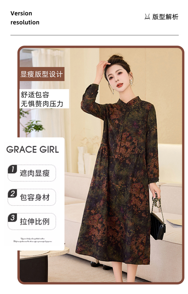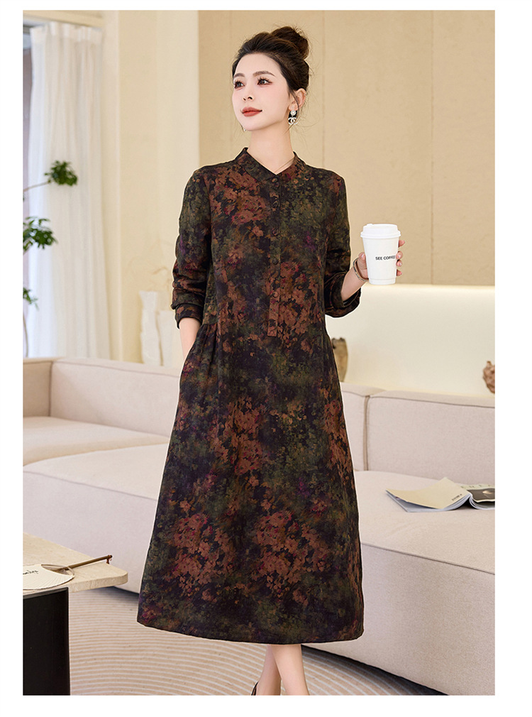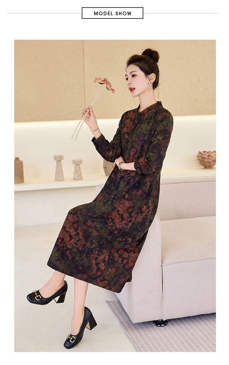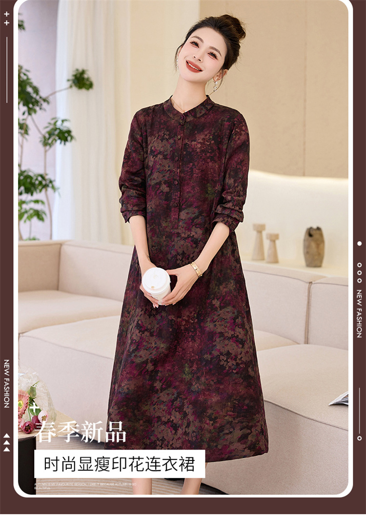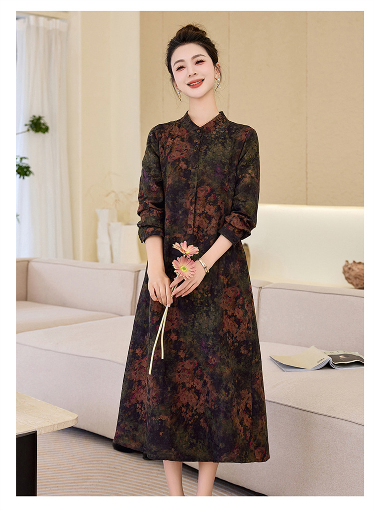 复古宽松显瘦气质,碎花长裙长袖棉麻连衣裙HR-NYMYZ3303