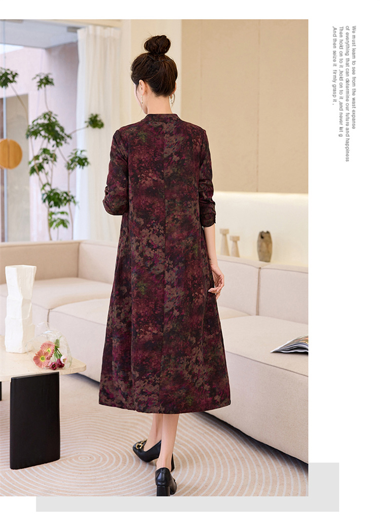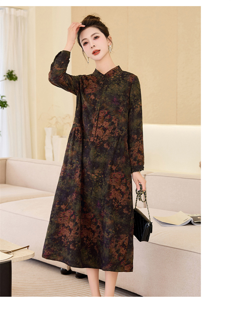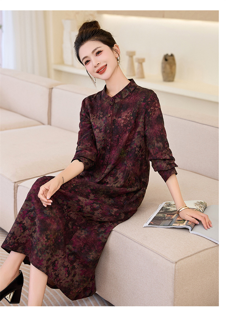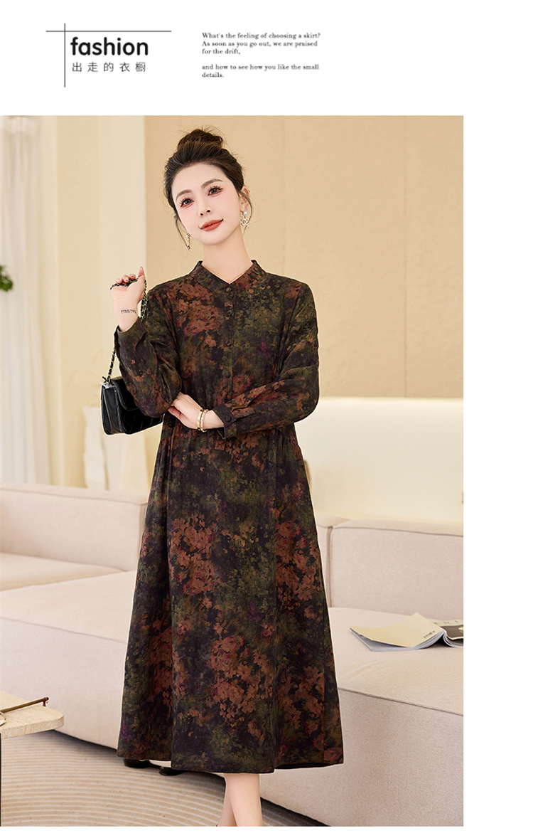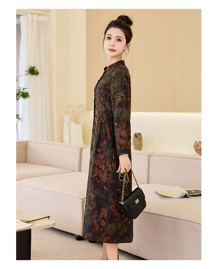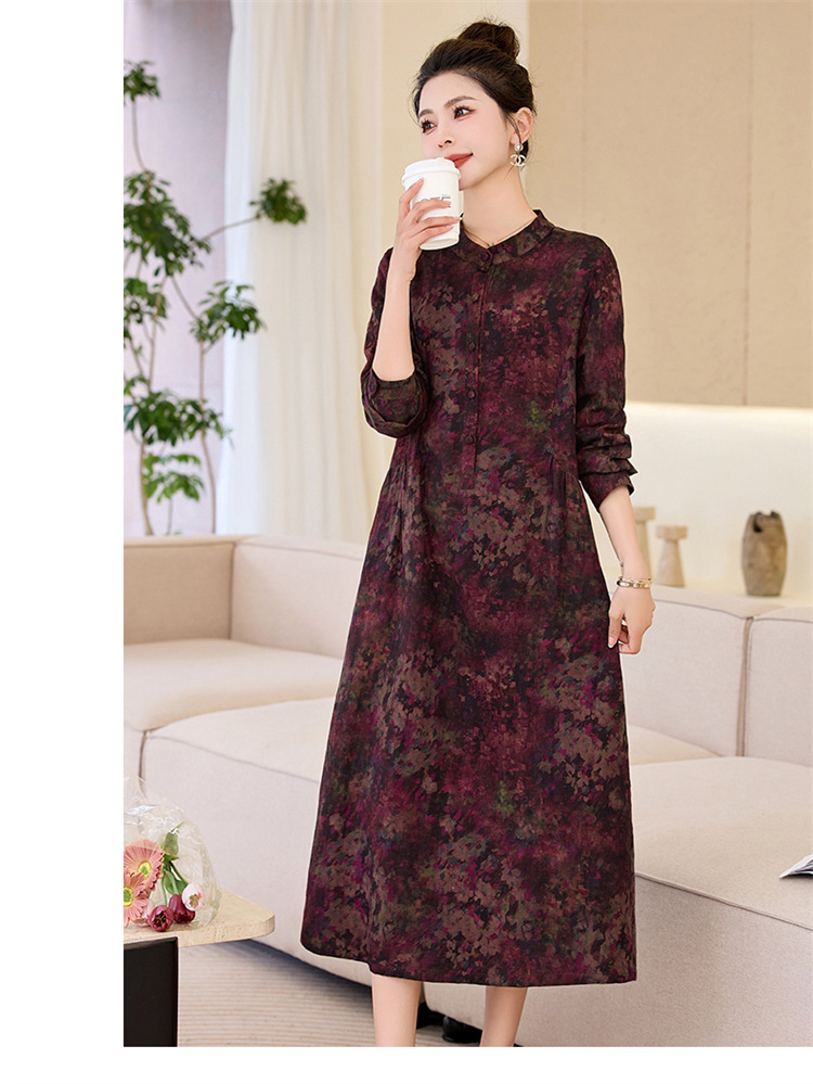 复古宽松显瘦气质,碎花长裙长袖棉麻连衣裙HR-NYMYZ3303