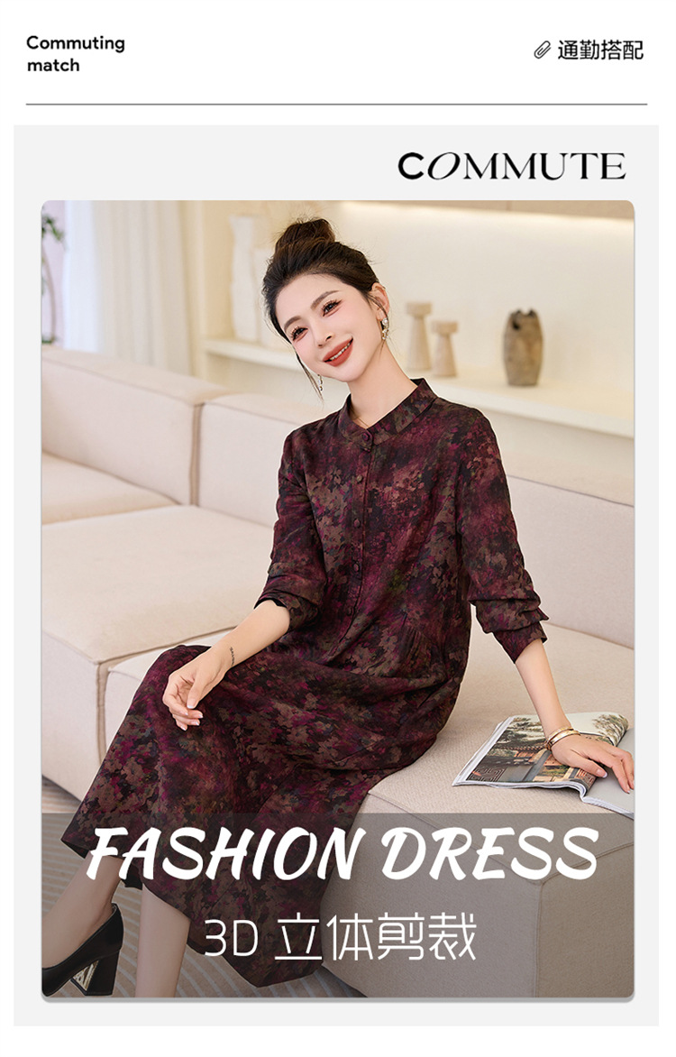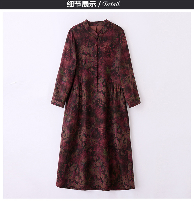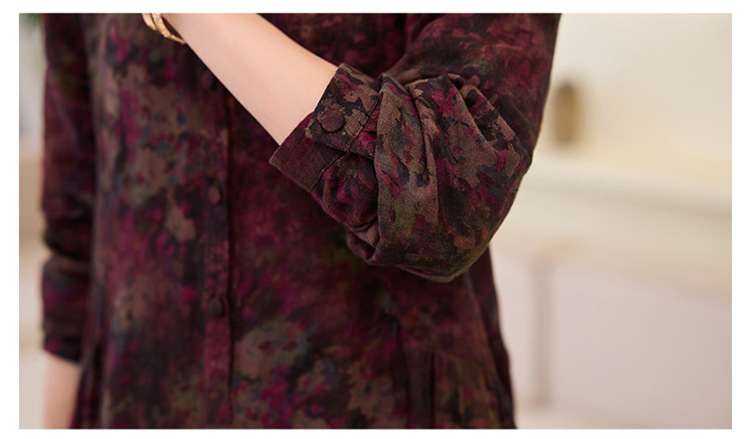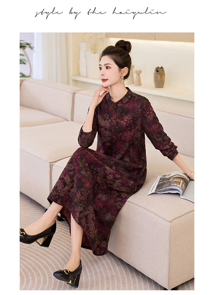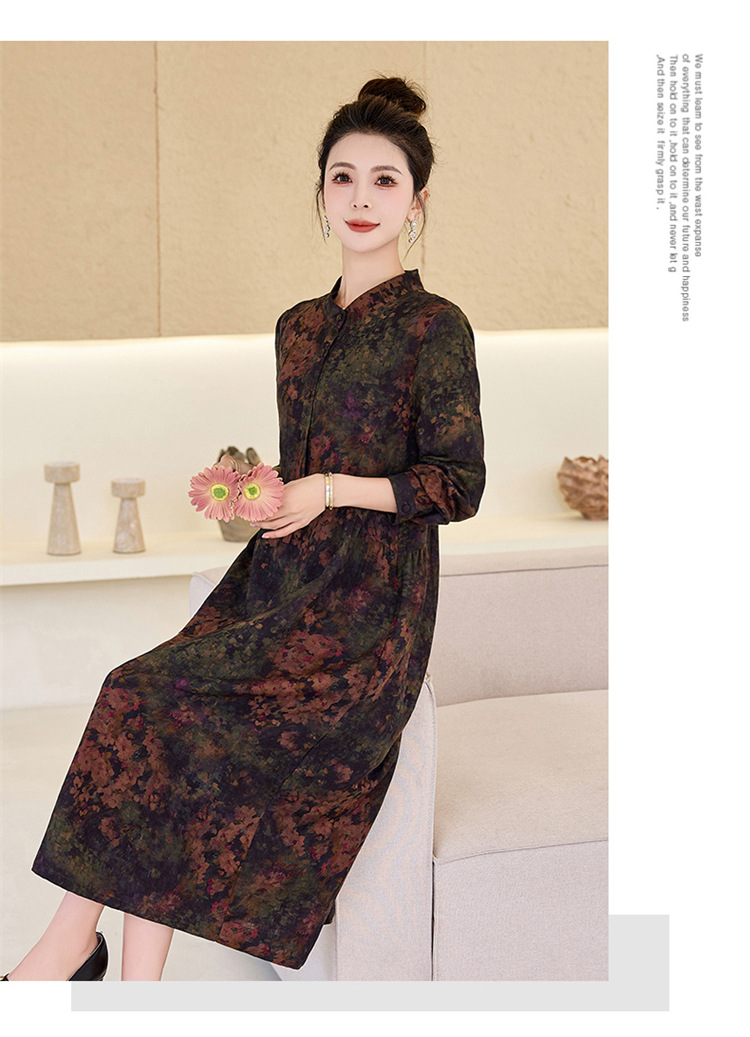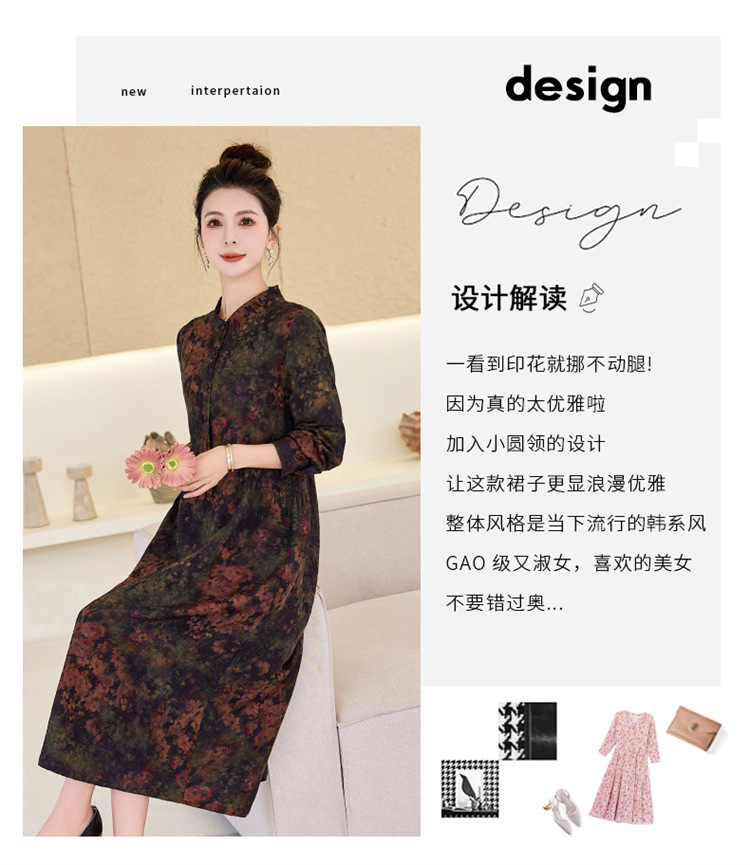 复古宽松显瘦气质,碎花长裙长袖棉麻连衣裙HR-NYMYZ3303