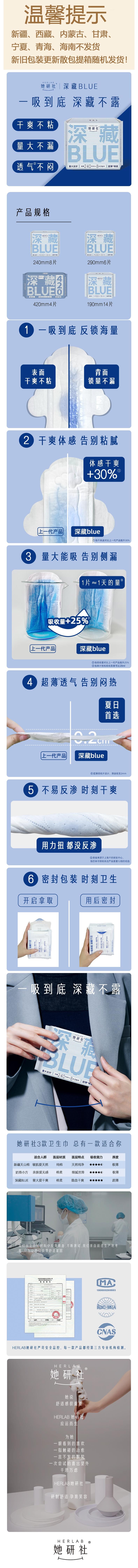 她研社 深藏blue迷你卫生巾日用护垫190mm*14片 6974354668800-1