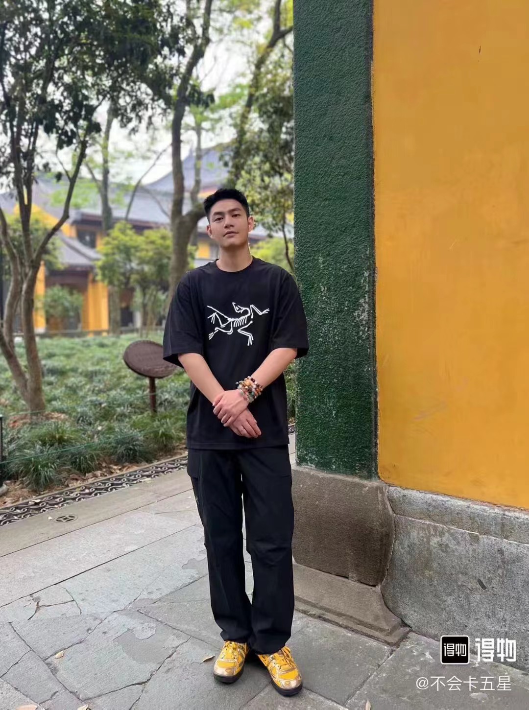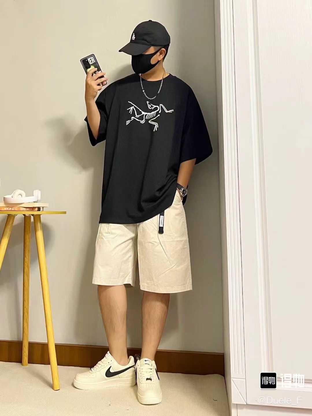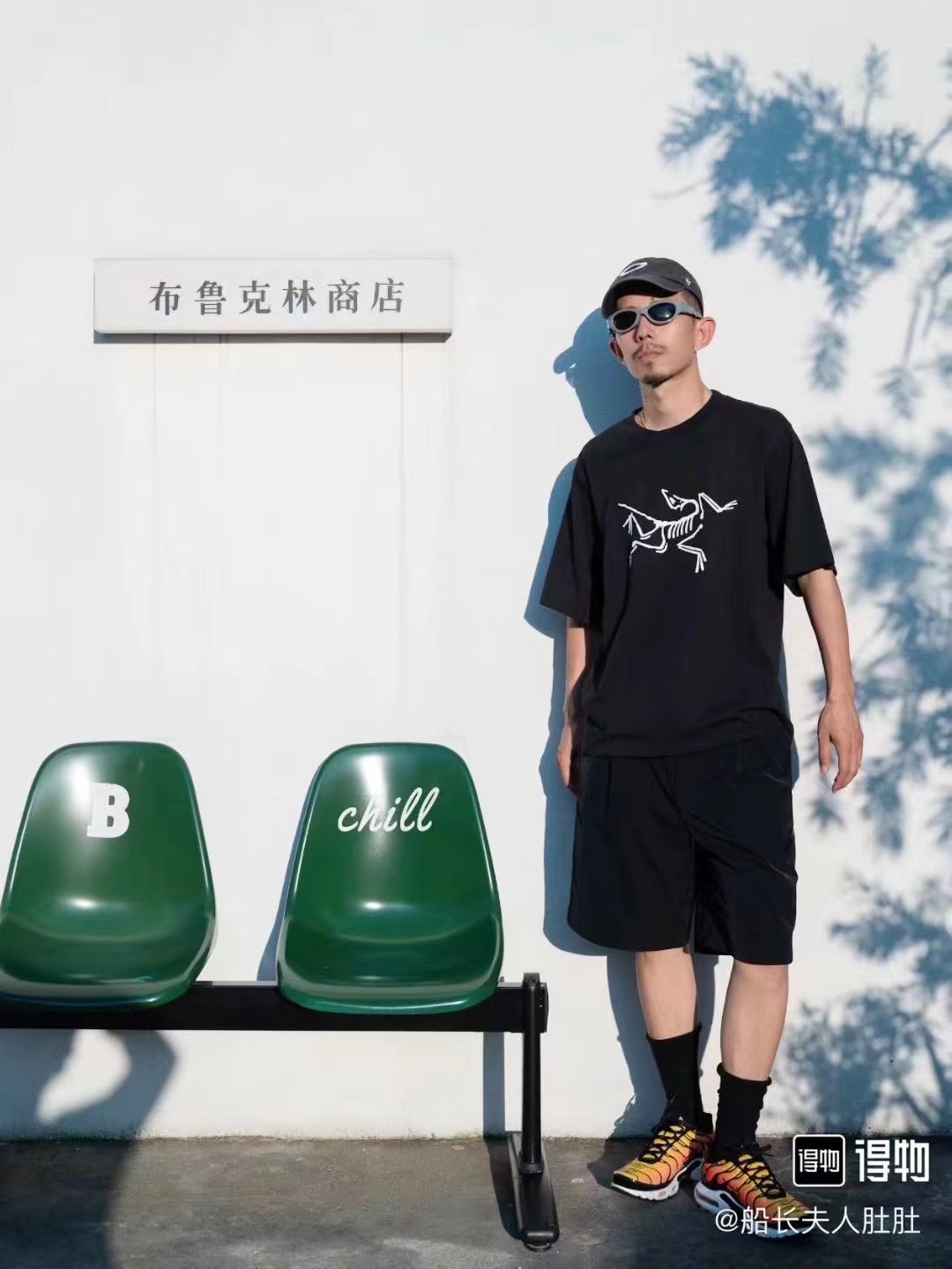 前胸大印花短袖T恤,版型较贴身,身材瘦一点