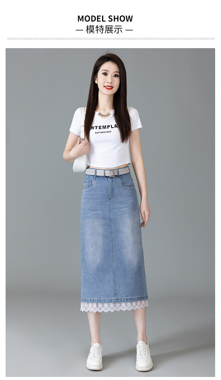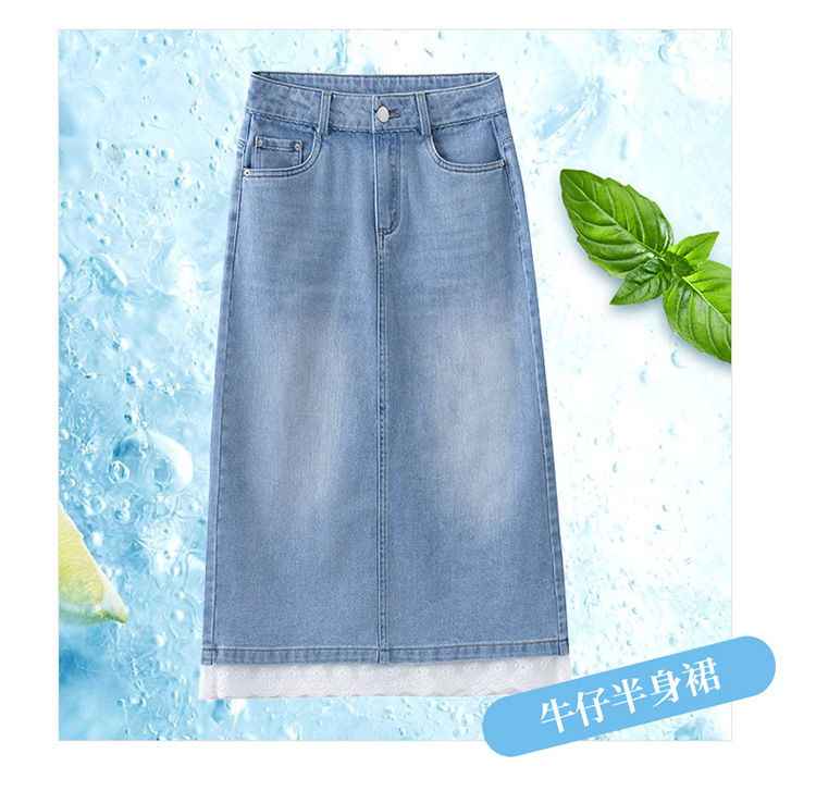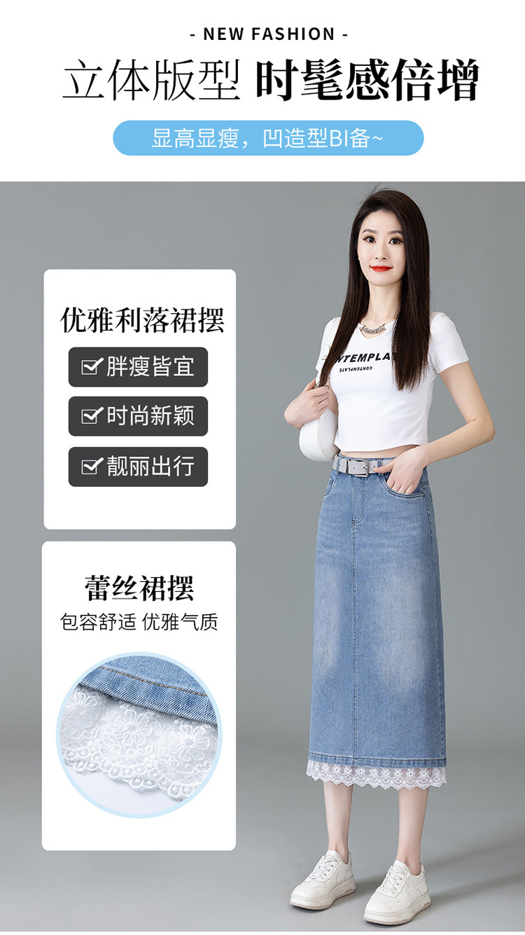 YM 5013复古蕾丝拼接牛仔半身裙开叉包臀直筒裙 商品图3