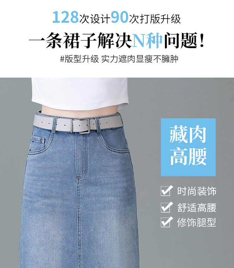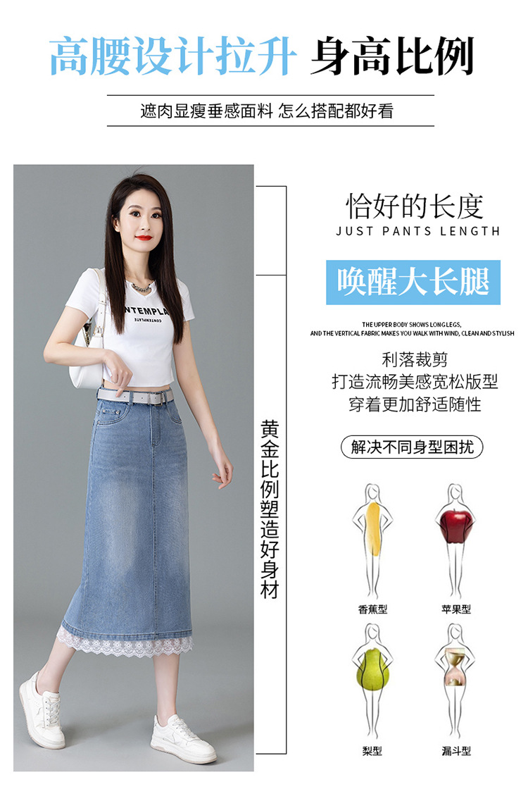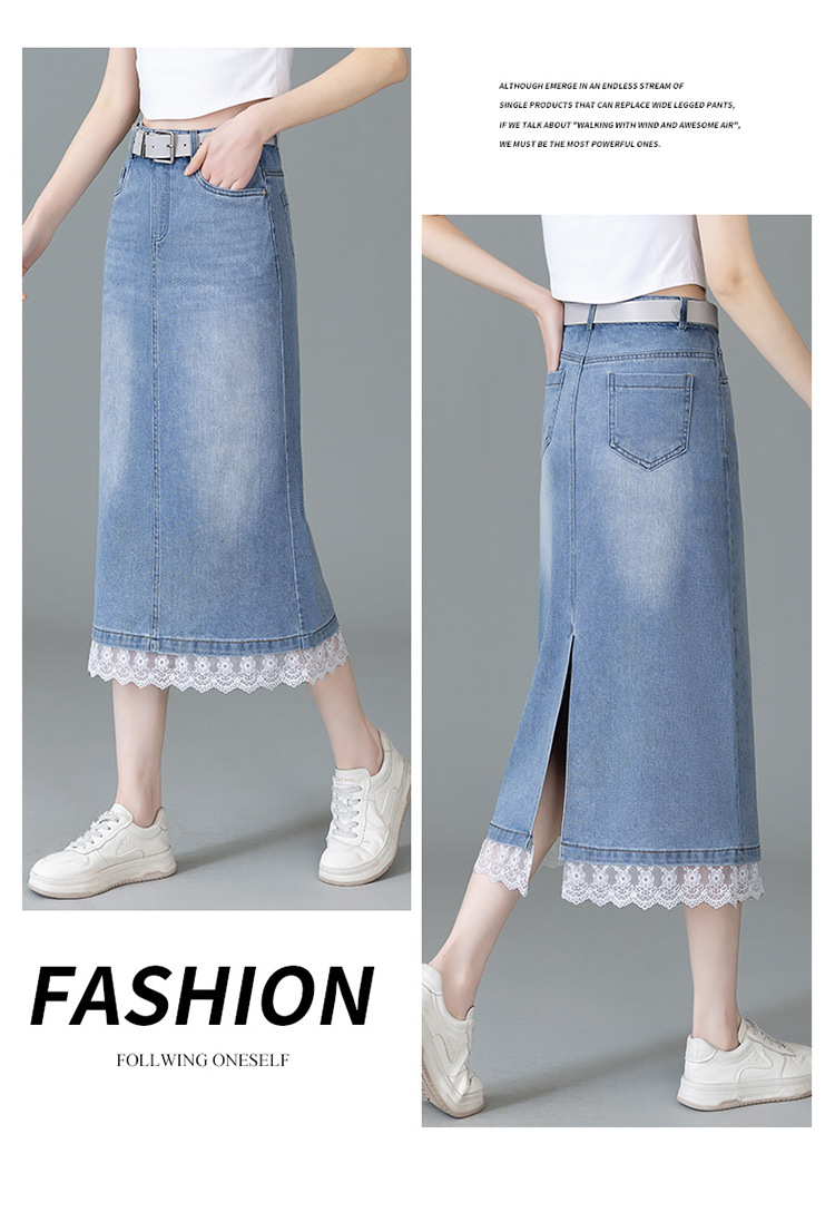 YM 5013复古蕾丝拼接牛仔半身裙开叉包臀直筒裙 商品图4